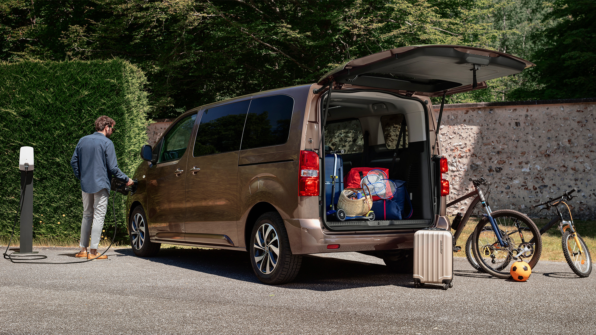 Обычный Citroen SpaceTourer превращён в электрический ë-SpaceTourer по тому же рецепту, что уже проверен на собратьях Opel Vivaro-e, Citroen e-Jumpy, Peugeot e-Expert и Peugeot e-Traveller. Мы снова видим две батареи на выбор: 50 кВт•ч, 230 км хода по стандарту WLTP и 75 кВт•ч, 330 км. Электромотор развивает 136 л.с. и 260 Н•м. Полная отдача достижима в режиме движения Power. Ради экономии энергии водитель может переключать его на Normal (109 л.с., 210 Н•м) и Eco (81 л.с., 190 Н•м). Предусмотрено два уровня рекуперации энергии на торможении (при отпускании педали акселератора): стандартный и повышенный.
