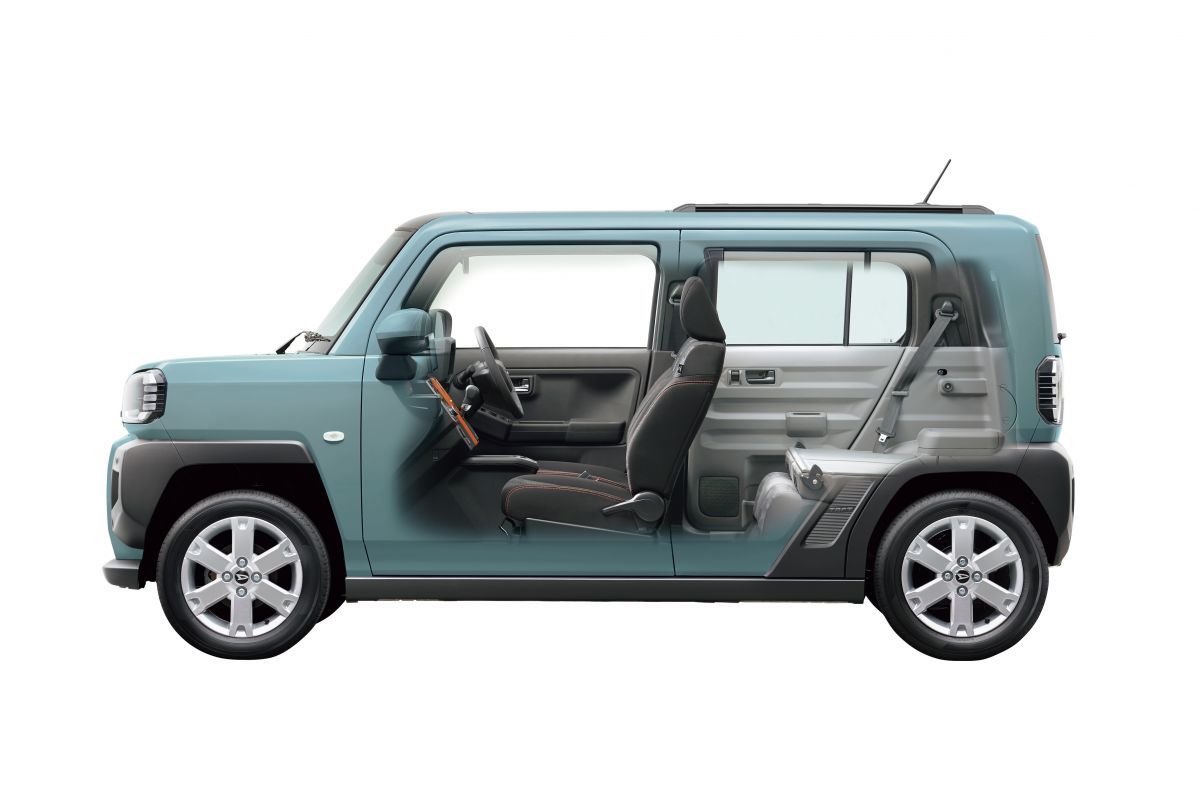 В период 1974–1984 гг. имя Daihatsu Taft носил компактный внедорожник, но производитель об этом не вспоминает. Тем не менее новый Taft считается кей-кроссовером (K-SUV), и компания явно рассчитывает заинтересовать им мужчин. Поэтому дизайн такой «квадратный», клиренс достигает 190 мм, а салон напоминает маскхалат. Начальная цена Тафта вряд ли превысит 1,3 млн иен (900 тысяч рублей), ведь Hustler просит от 1 280 400.