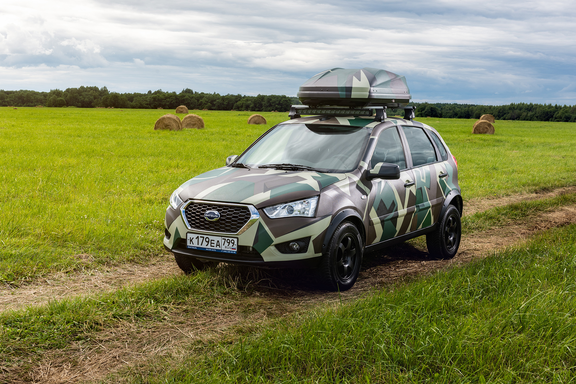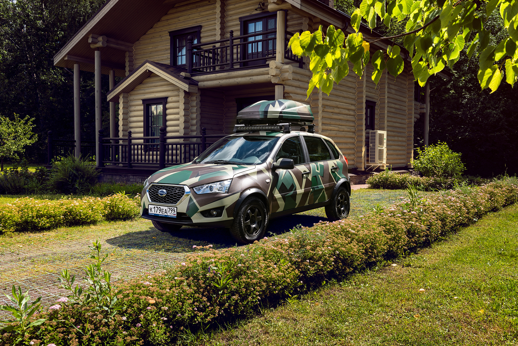 Новым российским Датсуном для активного отдыха, как и ожидалось, стал хэтчбек Datsun mi-DO во вседорожном исполнении. Однако переделки, которым подверглась машина, оказались серьёзнее, чем можно было подумать. Инженеры изменили передаточное число главной пары с 3,9 на 4,13, чтобы упростить управление тягой на малых скоростях и повысить проходимость. Клиренс увеличен до 180 мм (+6) за счёт проставок. Добавлены расширители колёсных арок. Смонтирована алюминиевая защита двигателя, топливного бака и коробки передач. Подкапотное пространство лучше изолировано от влаги и пыли. Наконец, из салона удалены задние сиденья, и их место занял «комод»!