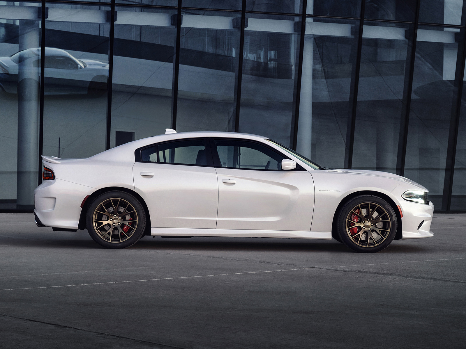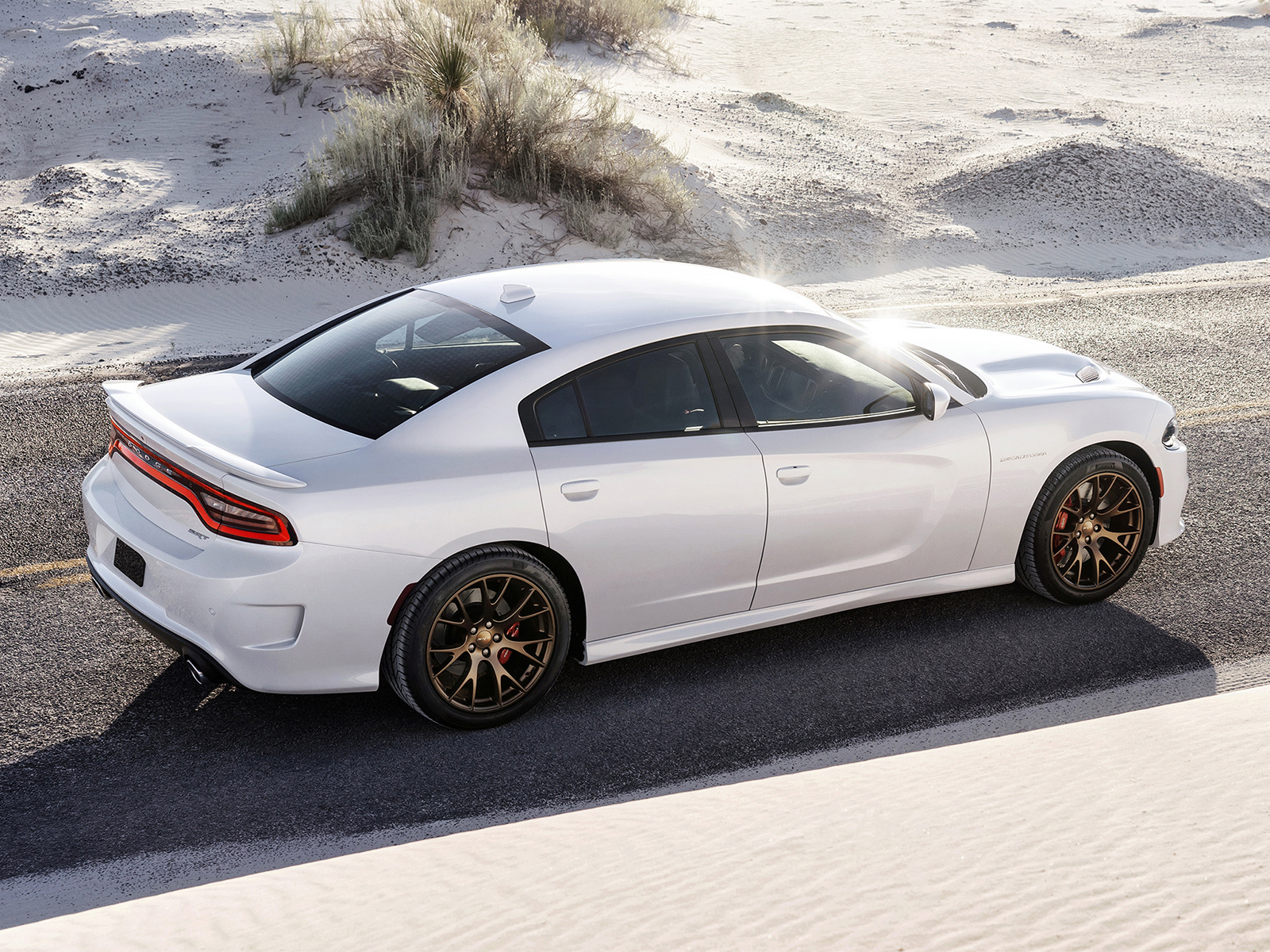 С серийной заводской версией Чарджера — Charger SRT Hellcat — могут потягаться только штучные изделия тюнинговых бюро. Как и предполагалось, он получил новый компрессорный двигатель V8 6.2 HEMI Hellcat, ранее дебютировавший на купе Challenger SRT Hellcat. Представьте себе, отдачу его менять не стали: всё те же 717 л.с. и 881 Н•м. Неудивительно, что динамика у четырёхдверки феноменальная. Четверть мили (402 метра) с места машина проходит за 11 с (на штатных шинах). Это даже лучше, чем у топового Челленджера на заводских покрышках (11,2 с). Менее 13 секунд новинке достаточно, чтобы с места разогнаться до ста миль (160,9 км/ч) и снова остановиться. Разгон 0–60 миль/ч (96 км/ч) требует 3,7 с.