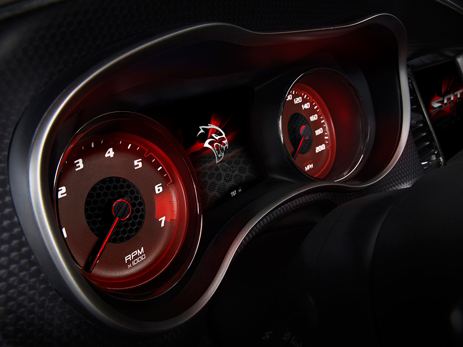 Разумеется, одной заменой мотора инженеры компании не ограничились. Здесь присутствуют адаптивная подвеска с тремя режимами, самые крупные штатные тормозные диски среди Крайслеров (спереди — 390 мм с шестипоршневыми суппортами Brembo), 20-дюймовые кованые алюминиевые диски с шинами Pirelli P Zero или P Zero Nero размерности 275/40 R20. Водителю доступны аж пять режимов работы мотора и шасси Driver Modes: Custom (персональные настройки), Sport (повышенная динамика), Track (возможности на кольце), Default (базовые настройки) и Eco (режим экономии горючего).