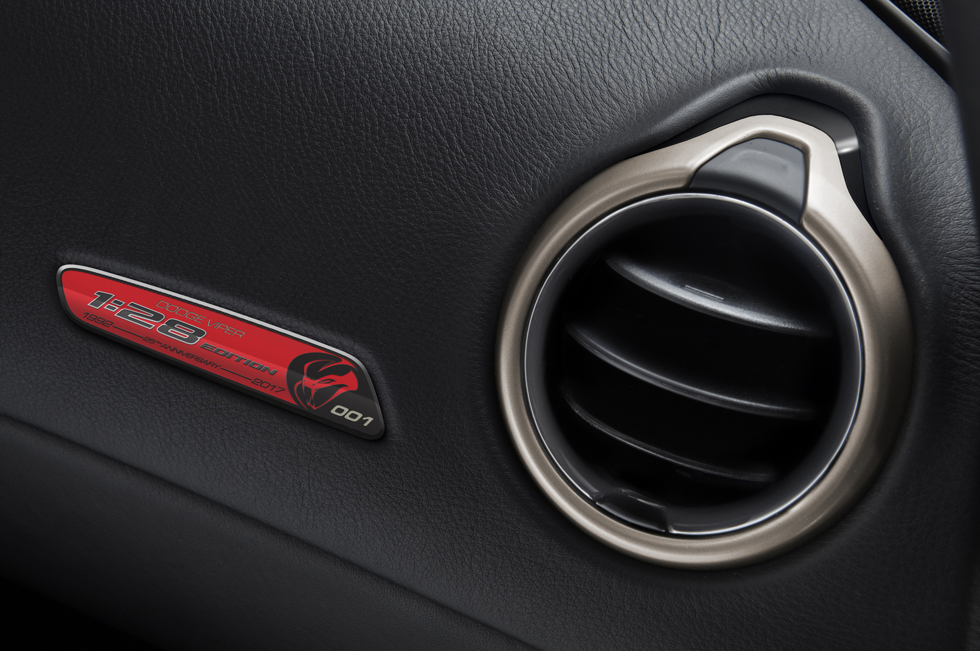 Особенности издания 1:28 — чёрно-красная окраска, надписи 1:28 на крыльях, аэродинамический пакет Extreme Aero Package, углеродокерамические тормозные диски, чёрный интерьер ACR с красной прострочкой, номерная табличка с названием серии на передней панели. На ней же надпись 1992−2017 — это модельные года или даты выхода Вайпера на рынок и ухода с него. Помимо того, все двухдверки в юбилейном пуле получили уникальный тент в раскраске, аналогичной цветам их кузовов, с именем владельца со стороны водительской двери.