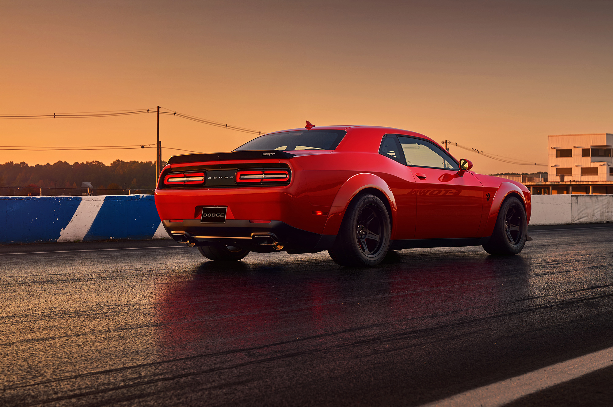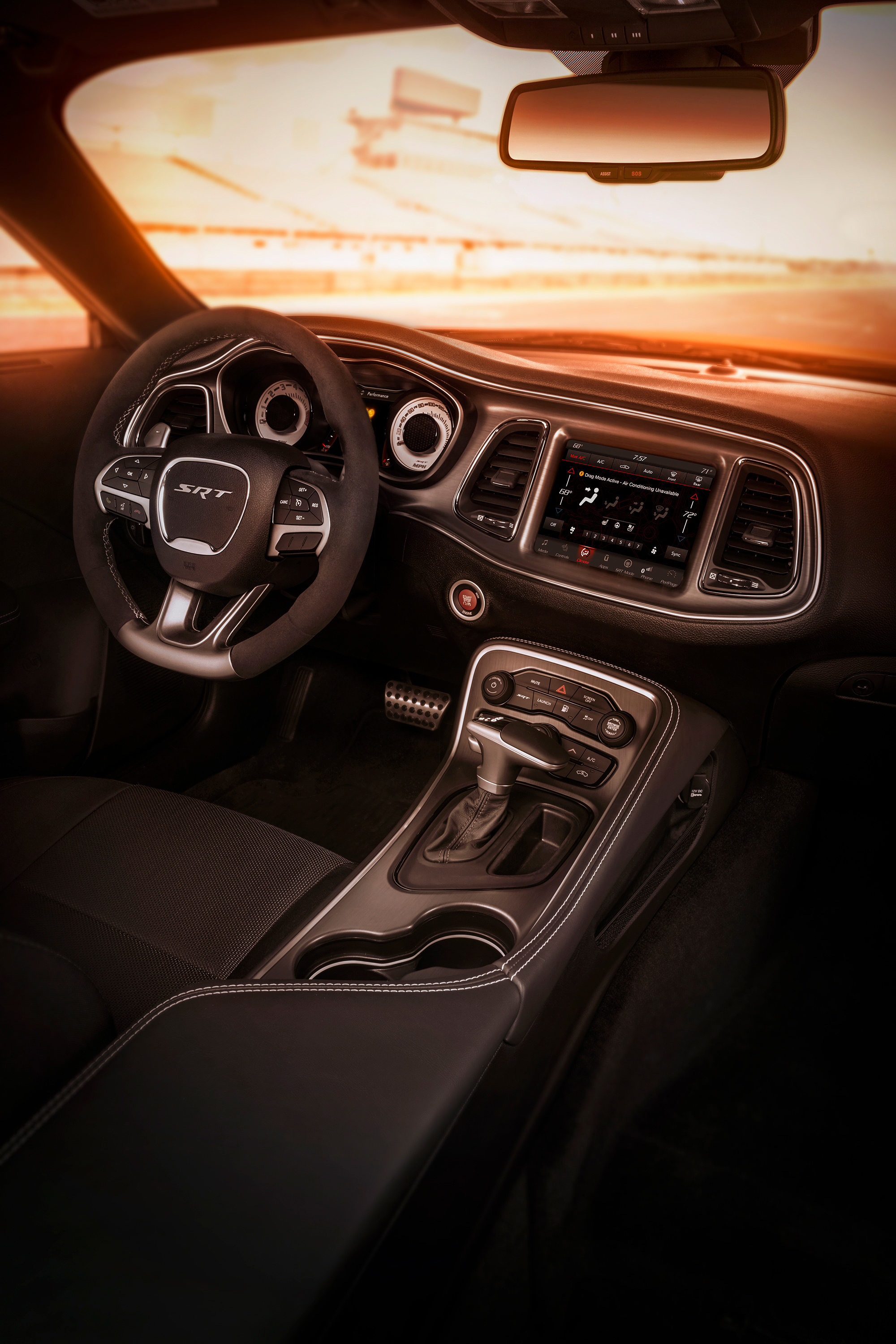 А ещё под капотом с воздухозаборником Air-Grabber (самый крупный в индустрии, площадь ― 45,2 квадратных дюйма или 0,03 м²) находится наиболее мощный V-образный восьмицилиндровый двигатель из тех, что когда-либо ставились на масл-кары. Отдача ― умопомрачительные 852 л.с. и 1044 Н•м! Компрессорный мотор 6.2 заимствован у двухдверки Challenger SRT Hellcat, но инженеры установили более производительный приводной нагнетатель с рабочим давлением один бар (было 0,8), инсталлировали два топливных насоса вместо одного и увеличили объём системы впуска. Дополнительно агрегату отрядили улучшенные газораспределительный механизм, систему впрыска и смазки, а также усиленные поршни и шатуны.