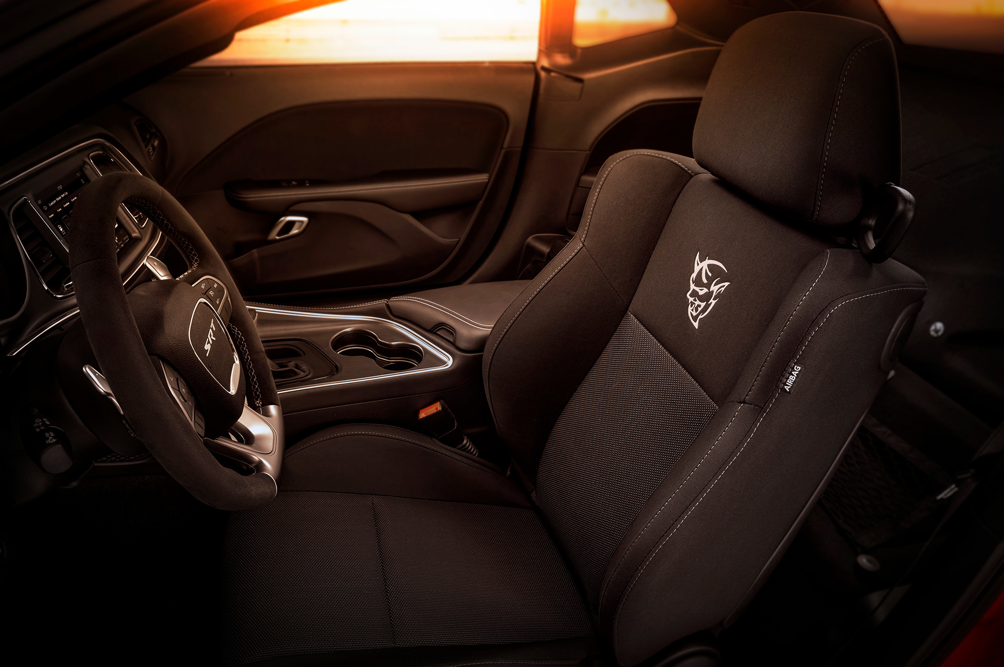 Hellcat поделился с дрэгстером адаптивными амортизаторами Bilstein, но их настроили в соответствии с предназначением автомобиля. При включении режима Drag Mode и открытии дросселя на полную передние стойки откалиброваны на упругое сжатие и смягчённый отбой, а задние становятся плотнее в обоих случаях. Когда же водитель отпускает акселератор, подвеска зажимается «по кругу». А ещё Demon получил менее податливые пружины спереди и сзади (на 35 и 28% соответственно) и менее жёсткие облегчённые стабилизаторы поперечной устойчивости (на 75 и 44%). Уменьшилась и снаряжённая масса ― на 92 кг, до 1926. В салоне оставили только водительское кресло, убрали шумоизоляцию интерьера и обшивку багажника, удалили аудиосистему и парковочные сонары.