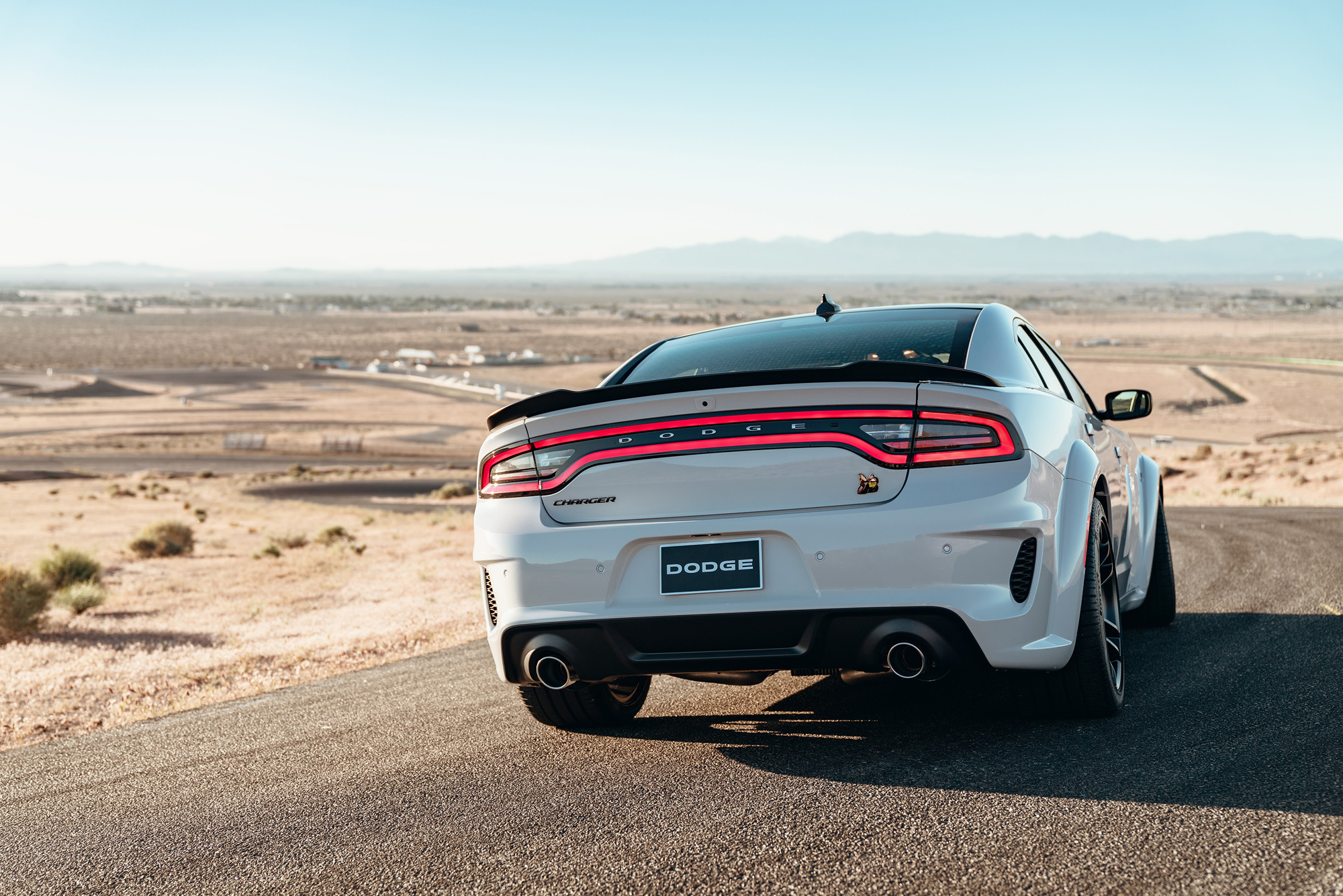 После хорошо принятых купе Challenger Hellcat Widebody и Challenger R/T Scat Pack Widebody, а также концепта Charger Widebody компания Dodge отрядила расширенный кузов серийным Чарджерам. При этом для топовой версии SRT Hellcat (компрессорный V8 6.2, 717 л.с., 881 Н•м) 2020 модельного года пакет с таким названием явился штатным оснащением, а для Чарджера Scat Pack (атмосферный V8 6.4, 492 л.с., 644 Н•м) — опцией.