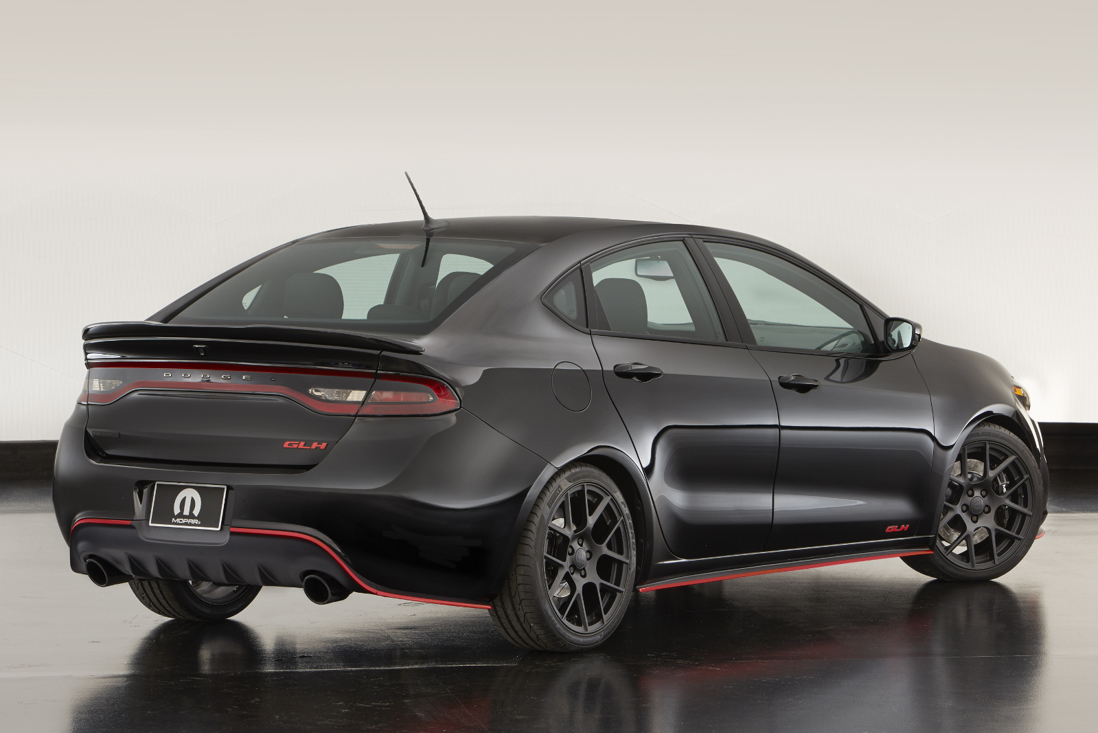 Концептом Dodge Dart GLH (что означают эти три буквы, смотрите во врезке «История») компания в первую очередь хотела показать возможности отделения Mopar. Так что тут появились новый алюминиевый капот, изменённая решётка радиатора, сплиттер и диффузор, 18-дюймовые колёсные диски, спортивная выхлопная система, усиленные тормозные механизмы, а в салоне — чёрная кожа Katzkin с красной прострочкой, накладки на пороги и педали, спортивное рулевое колесо.