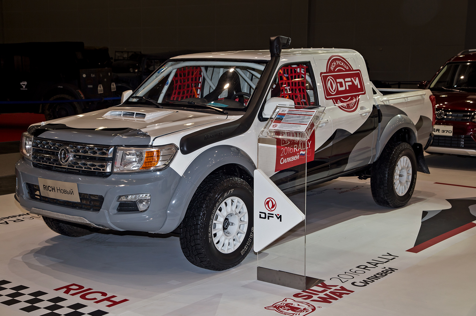 Про флагманский седан А9 Aeolus, созданный на основе Ситроена С5, известно уже практически всё. Напомним, тут установлен турбомотор 1.8 (204 л.с., 280 Н•м) и шестиступенчатый автомат. Увы, как и в случае с А60, его судьба на нашем рынке пока не решена. А ведь продукт интересный. Зато до нас точно доберётся пикап DFM Rich New. Его выход на российский рынок ожидается в 2017 году. Про машину мы рассказывали детально, напомним вкратце, что в его гамме присутствуют два мотора: дизельный 2.5 (116 л.с., 280 Н•м) и бензиновый 2.4 (139 л.с, 217 Н•м). С любым из них может сочетаться и задний, и полный привод.