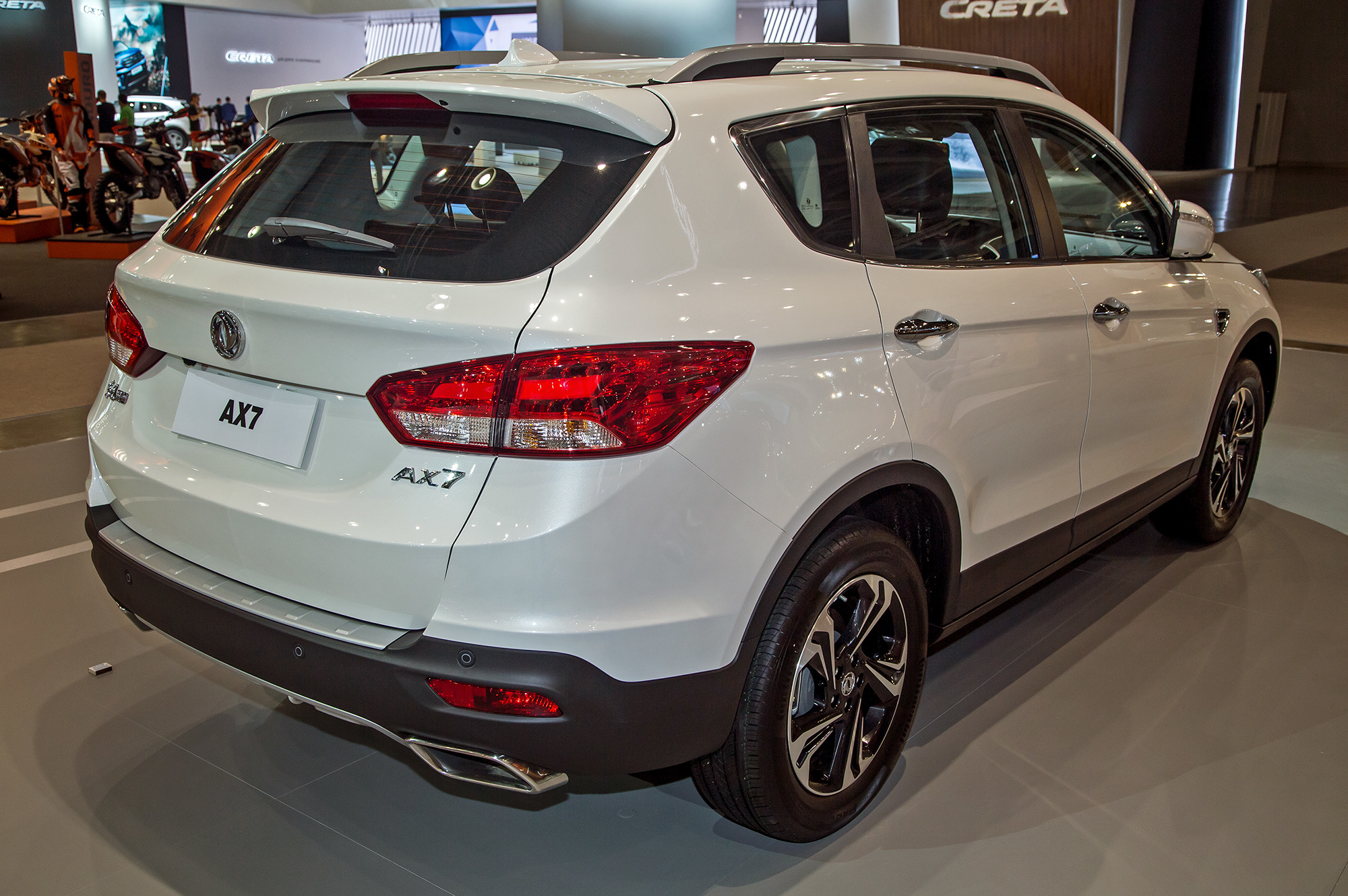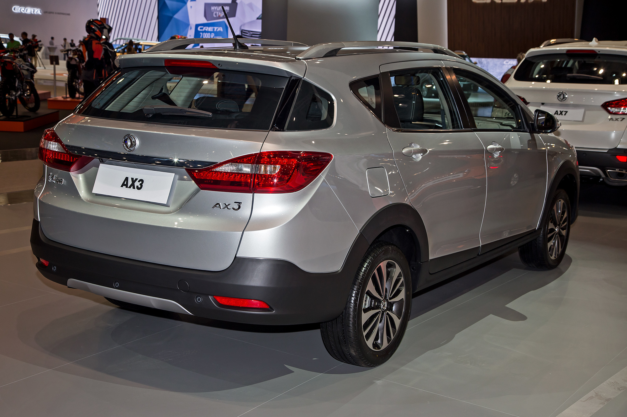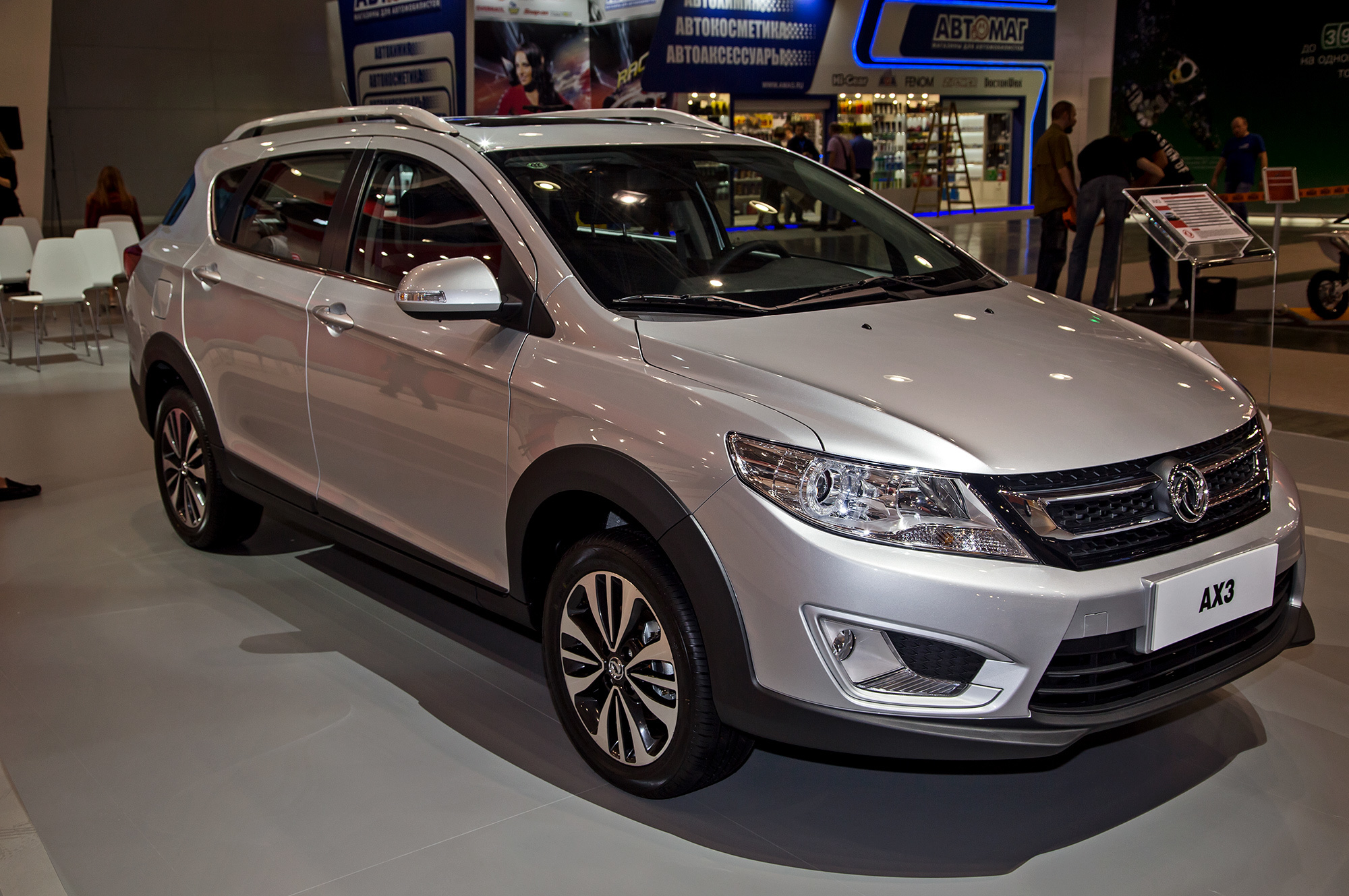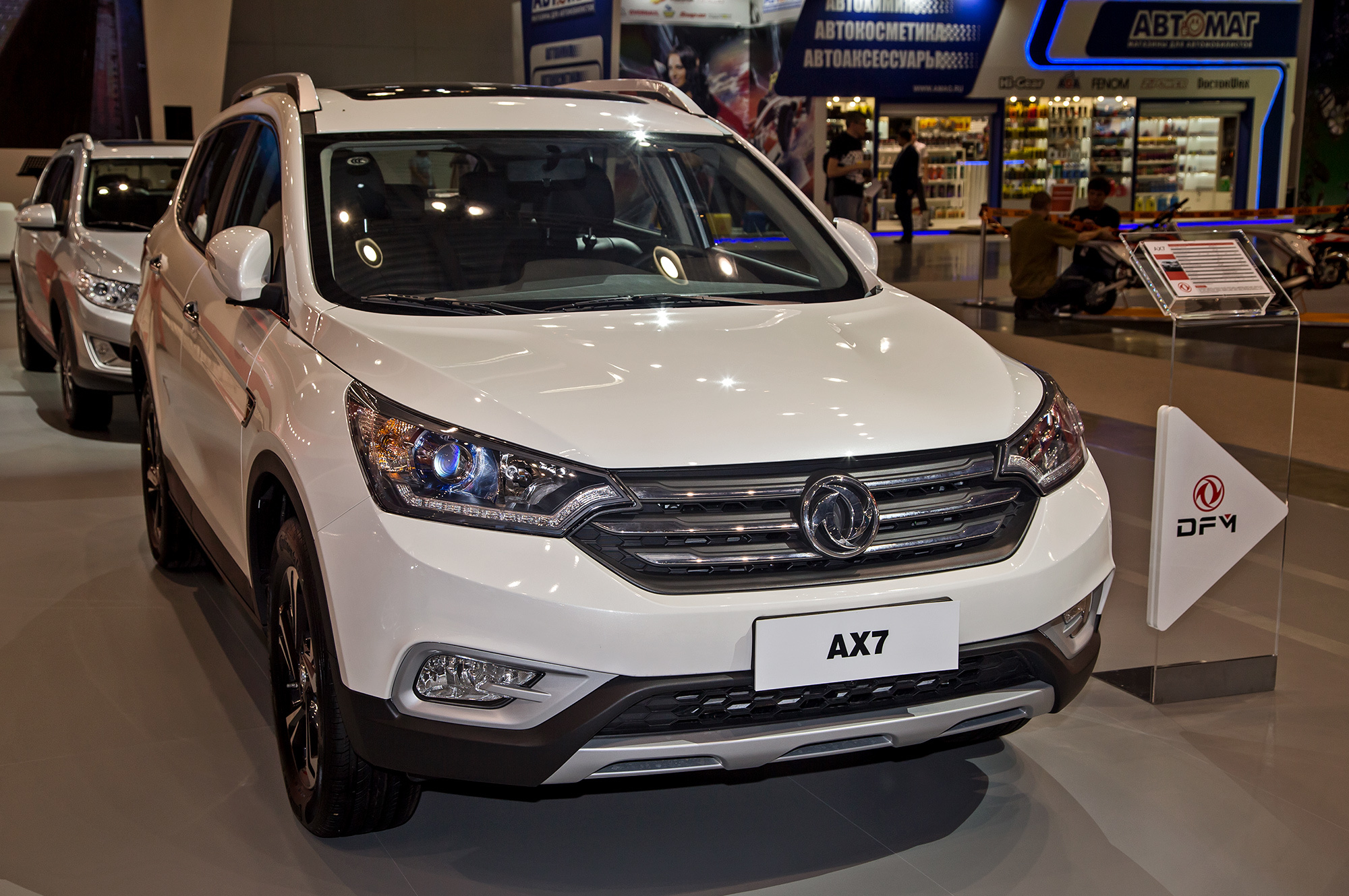 Среднеразмерный кроссовер DFM AX7 (длина 4690 мм, база 2712 мм), который приезжал на ММАС ещё в 2014-м, лишь в 2017 году попадёт на наш рынок. В его активе — пара бензиновых моторов: 2.0 (140 л.с., 200 Н•м) и 2.3 (171 л.с., 230 Н•м). Есть пятиступенчатая «механика» и шестиступенчатый «автомат». Средний расход топлива в зависимости от версии составляет 8−9,5 л/100 км.