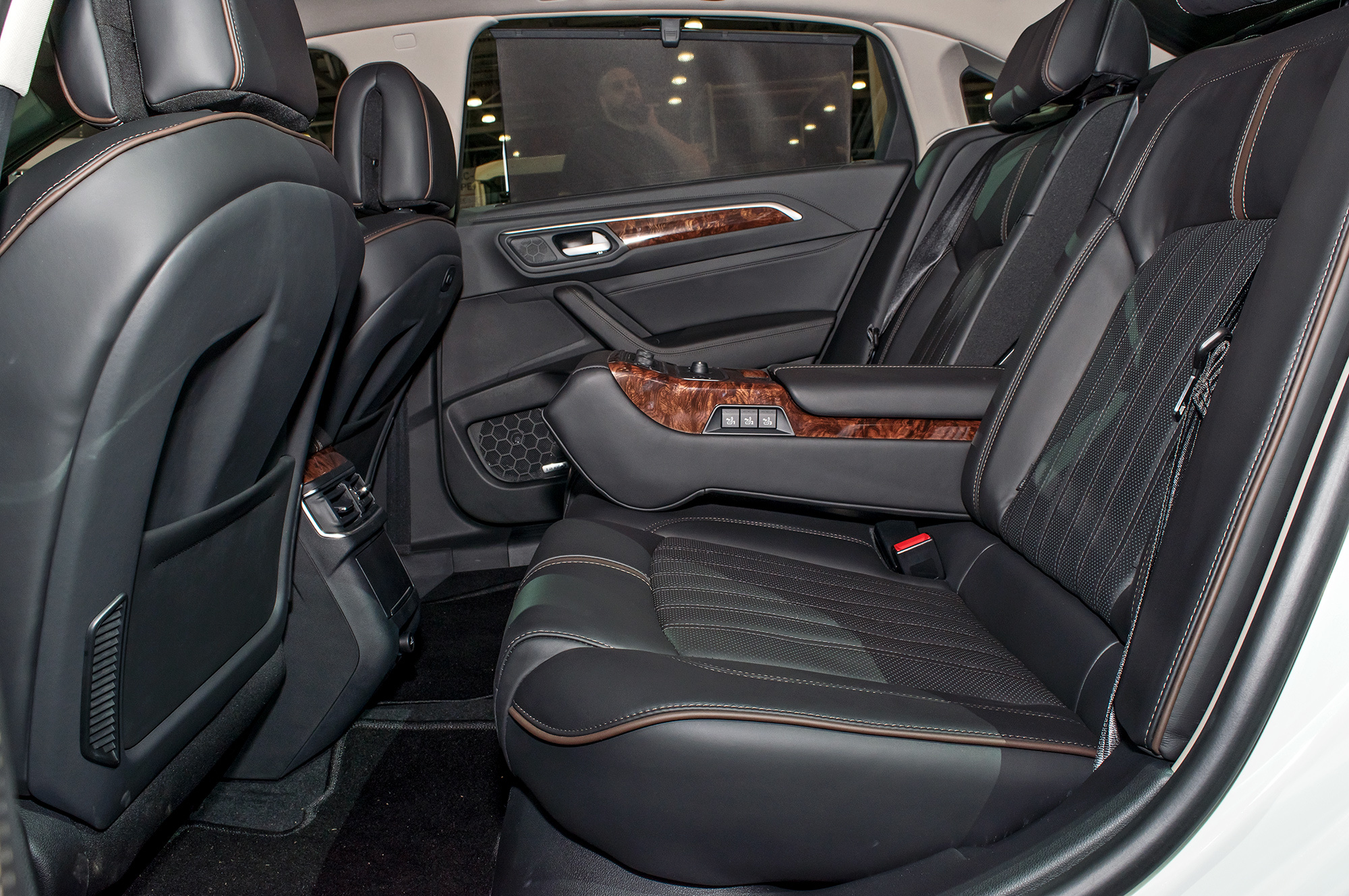 Дизайн интерьера во многом напоминает творения Фольксвагена, правда, пластик везде жёсткий. Зато визуальное ощущение качества тут на высоте — всё собрано аккуратно. Впрочем, простор важнее. Машина семиместная, при этом пара пассажиров на третьем ряду не чувствуют себя скованно. Да, сидеть приходится с высоко поднятыми коленями, но они по крайней мере не упираются в спинки кресел второго ряда, под которыми, кстати, полно места для ступней. Потолок на голову не давит даже на галёрке (проверено на себе). О точной цене говорить рано, но компания обещает не задирать её.