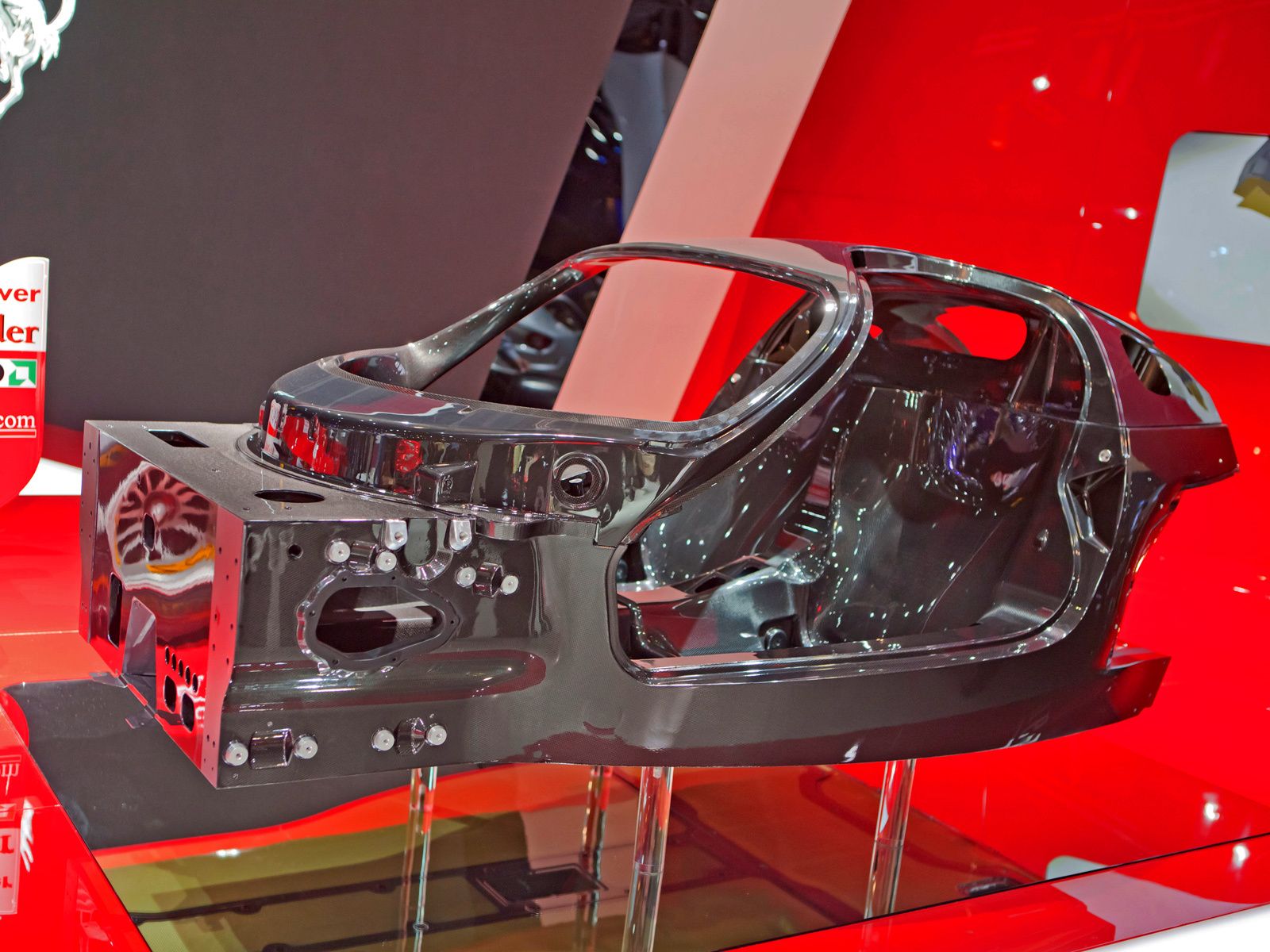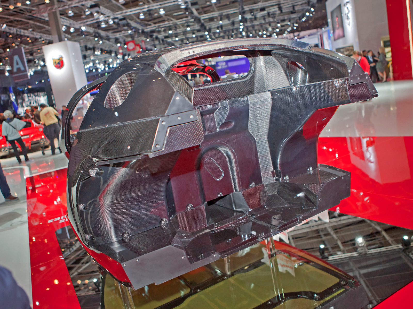 Итальянцы привезли в Париж углеволоконное шасси наследника легендарного суперкара Enzo. В новом Энцо (известном также под кодовым обозначением F70) использованы самые передовые технологии изготовления углеволоконных кузовов. В результате монокок вышел на 20% легче, чем у предшественника (всего около 60 кг), при выросшей на 27% жёсткости на кручение. Для оптимизации кузова авторы машины использовали несколько любопытных приёмов: прямо в монокок были интегрированы точки крепления передней подвески, основы сидений, защитные структуры для бака и отсек для батарей.