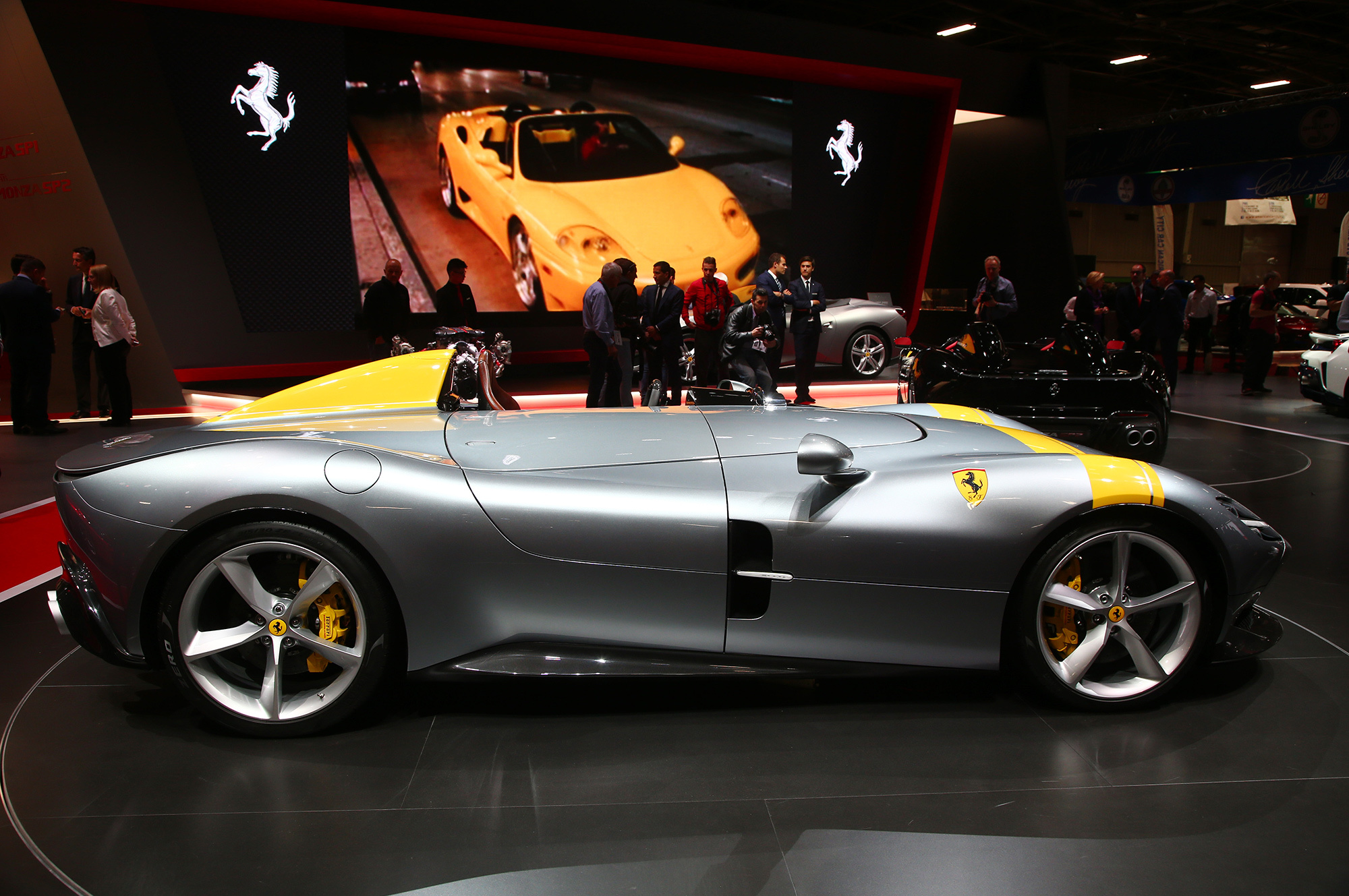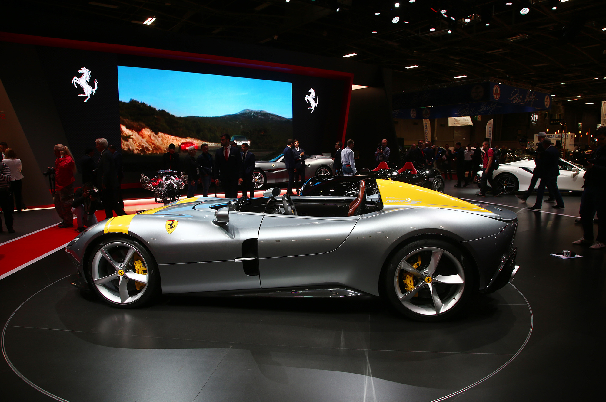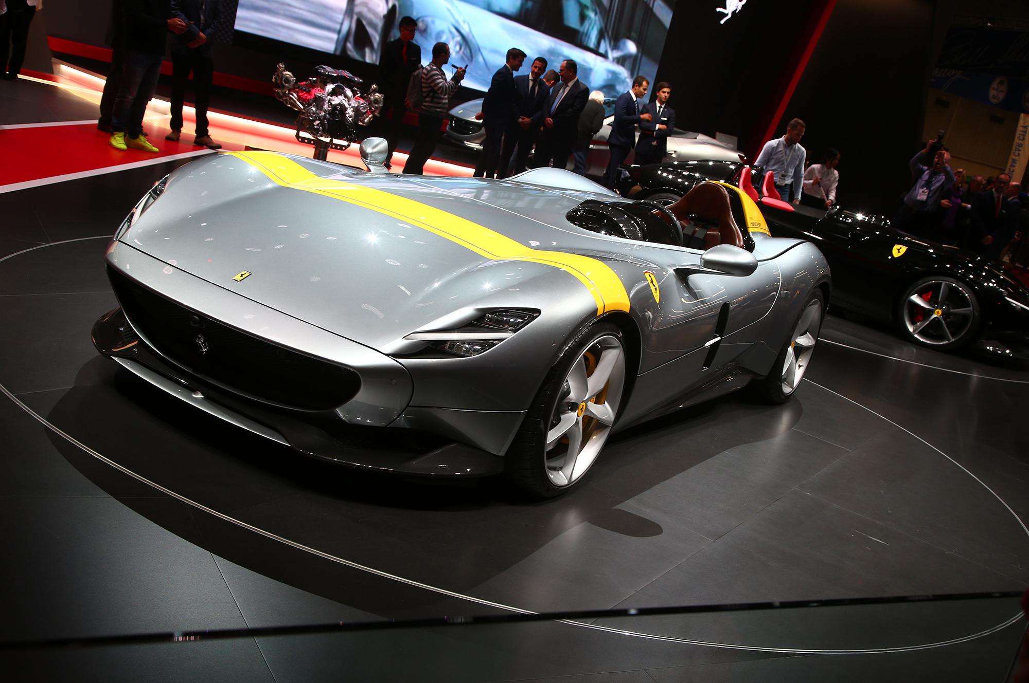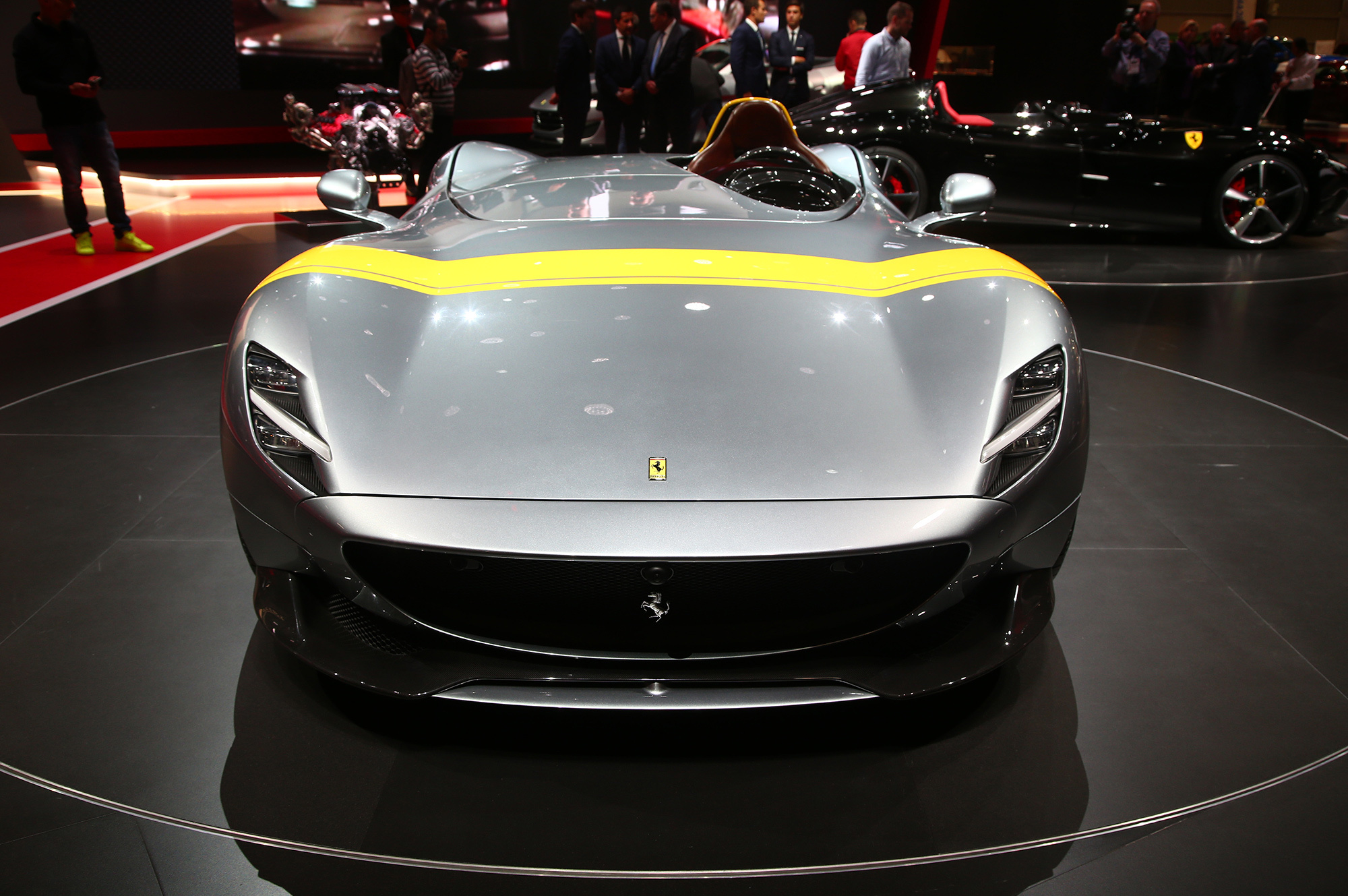Удивительно, но большой экономии массы удаление крыши не принесло, что косвенно говорит о мерах по усилению жёсткости открытого кузова. Если сухая масса 812-й с «лёгкими» опциями равна 1525 кг, то у Монцы SP1 она составляет 1500 кг, а у SP2 — 1520 кг. Однако Монцы ещё и немного мощнее прародителя. Их «атмосферник» V12 6.5 развивает 810 л.с. и 719 Н•м против 800 л.с. и 718 Н•м у исходника. Весь кузов, к слову, выполнен из углепластика, он же использован в отделке интерьера, в котором оказалось лишь немного элементов от 812-й (скажем, комбинация приборов и дефлекторы вентиляции).