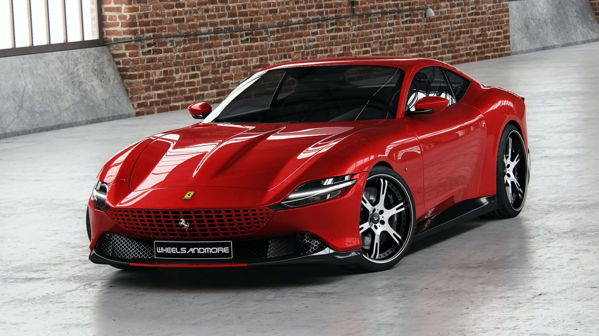 Дизайнеры ателье Wheelsandmore редко вмешиваются во внешность моделей Ferrari при их доработках. Исключением, разумеется, являются заводские колёса, которые всегда заменяют фирменными аналогами. По этой же схеме подверглось модернизации купе Ferrari Roma. Дизайн Флавио Манцони не тронули, но клиентам тюнеры предлагают три варианта кованых дисков диаметром 21 или 22 дюйма. Можно выбрать цвет составных колёс или отдельных деталей и определиться с тем, каким будет их покрытие: глянцевым или матовым. И это ещё не всё.