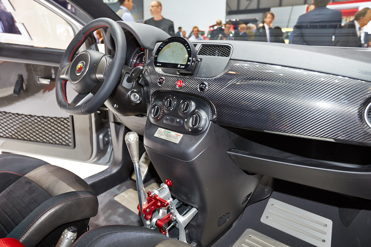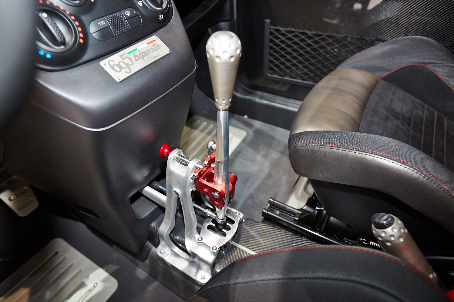 Своего рода венец всех усилий — предложенная вместо обычной спортивная кулачковая коробка передач от Bacci Romano (такую обычно ставят на кольцевых и раллийных автомобилях). Эту коробку можно намного быстрее переключать вверх, не выжимая сцепление (лишь немного сбрасывая газ). При сбросе ступеней опытный водитель, подгадывая моменты переключения, тоже сумеет обойтись без выжима. Итальянцы говорят, что в своём сегменте это первый дорожный автомобиль, предлагаемый с такой трансмиссией. В сумме получается хот-хэтч, который компания считает «самым-самым» Абартом и в то же время прекрасно воплощающим философию основателя ателье: «В воскресенье на трассе, в понедельник — в офисе».