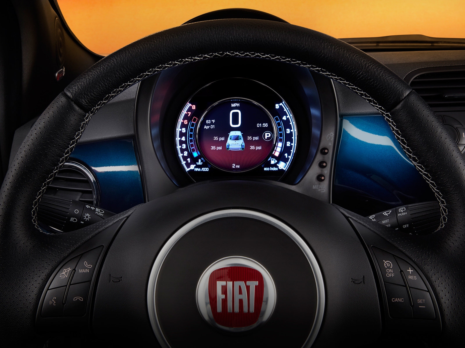 Сразу обращает внимание электронная приборная панель. На семидюймовом экране отображаются не только информация о скорости, оборотах и запасе топлива, но и данные о давлении в шинах, работе аудиосистемы и датчиков парковки. При активации режима «Спорт» меняется подсветка. Слегка видоизменится и центральный тоннель. Кроме нового салона «заряженная» версия Abarth получит в качестве опции шестидиапазонный «автомат».