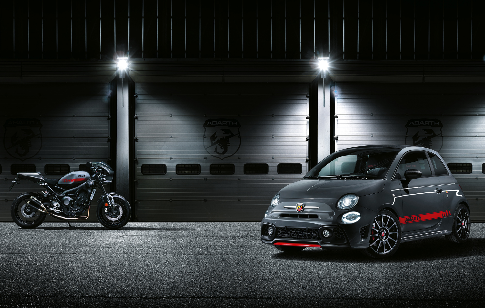 Так как Abarth является партнёром и спонсором гоночной команды Yamaha в чемпионате FIM MotoGP, компании решили выставить в Женеве парный комплект: это хэтчбек Abarth 695 XSR Yamaha Limited Edition и не менее лимитированный спортбайк Yamaha XSR900 Abarth. Автомобиль получил облегчённую выпускную систему Akrapovic с углепластиковыми патрубками (глушитель той же марки стоит на мотоцикле), несколько элементов внешнего обвеса из углеволокна.