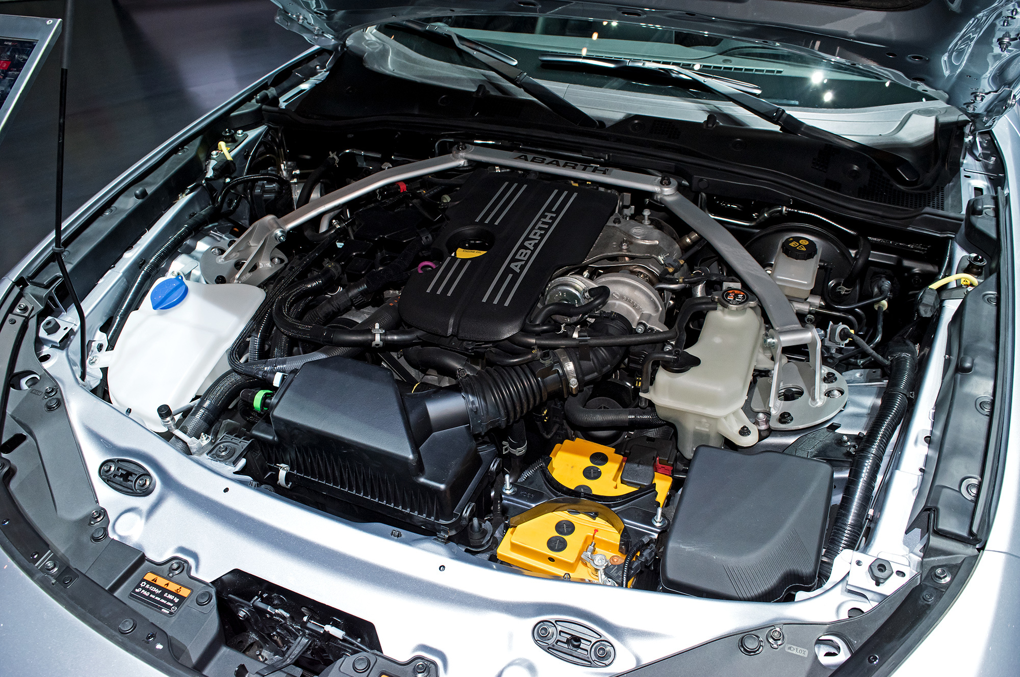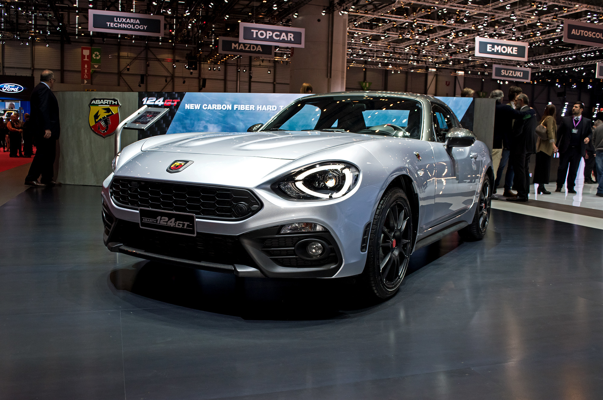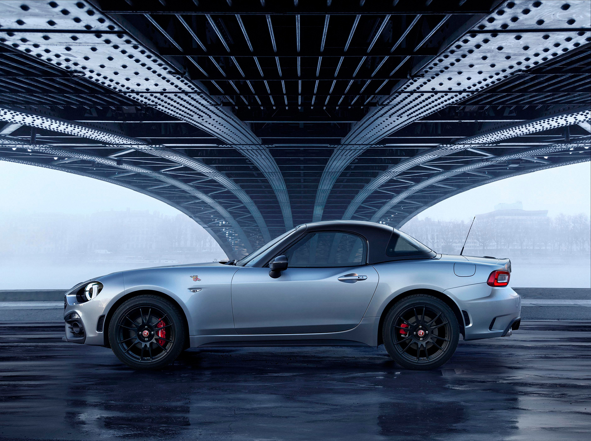 Изначально «джи-тишка» комплектуется стандартной мягкой крышей, а жёсткий верх доступен опционально. Но зато какой это верх! Он полностью сделан из углепластика, а его масса не превышает 16 кг. По словам фиатовцев, композитная крыша увеличивает жёсткость кузова на кручение, хотя на заметный скачок в этом плане рассчитывать не стоит. Зато крыша легко снимается за считанные минуты. Также из углеволокна у Абарта 124 GT сделаны корпуса боковых зеркал и спойлер на крышке багажника. А ещё у GT установлены облегчённые колёса OZ Racing, каждое из которых весит на три килограмма меньше стандартного.