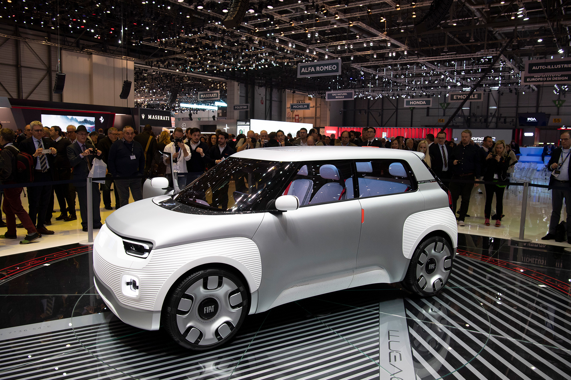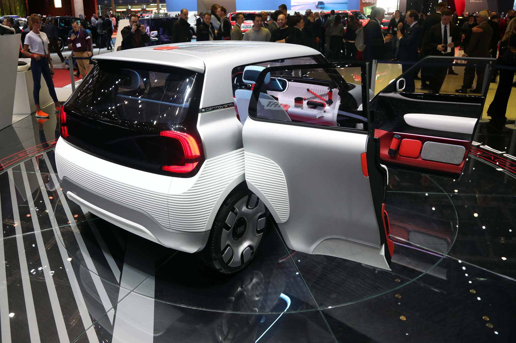 Centoventi — это «сто двадцать» по-итальянски. Ровно столько лет исполнилось бренду FIAT. На юбилее компания вспомнила славные времена, когда выпускала дешёвые «народные» автомобильчики и видела в этом социальную миссию. С наступлением эпохи электромобилей фирма хочет снова этим заняться и придумала модульную концепцию машины-конструктора. По идее, с конвейера завода сходит «чистый холст» наподобие новогодней ёлки без игрушек. У голой заготовки нет даже крыши, не говоря уже о цвете кузова, но есть батарея с запасом хода в 100 км. Всё дальнейшее оснащение зависит от покупателя, его целей, задач и уровня доходов. Так, пробег за доплату вырастет до 500 км.