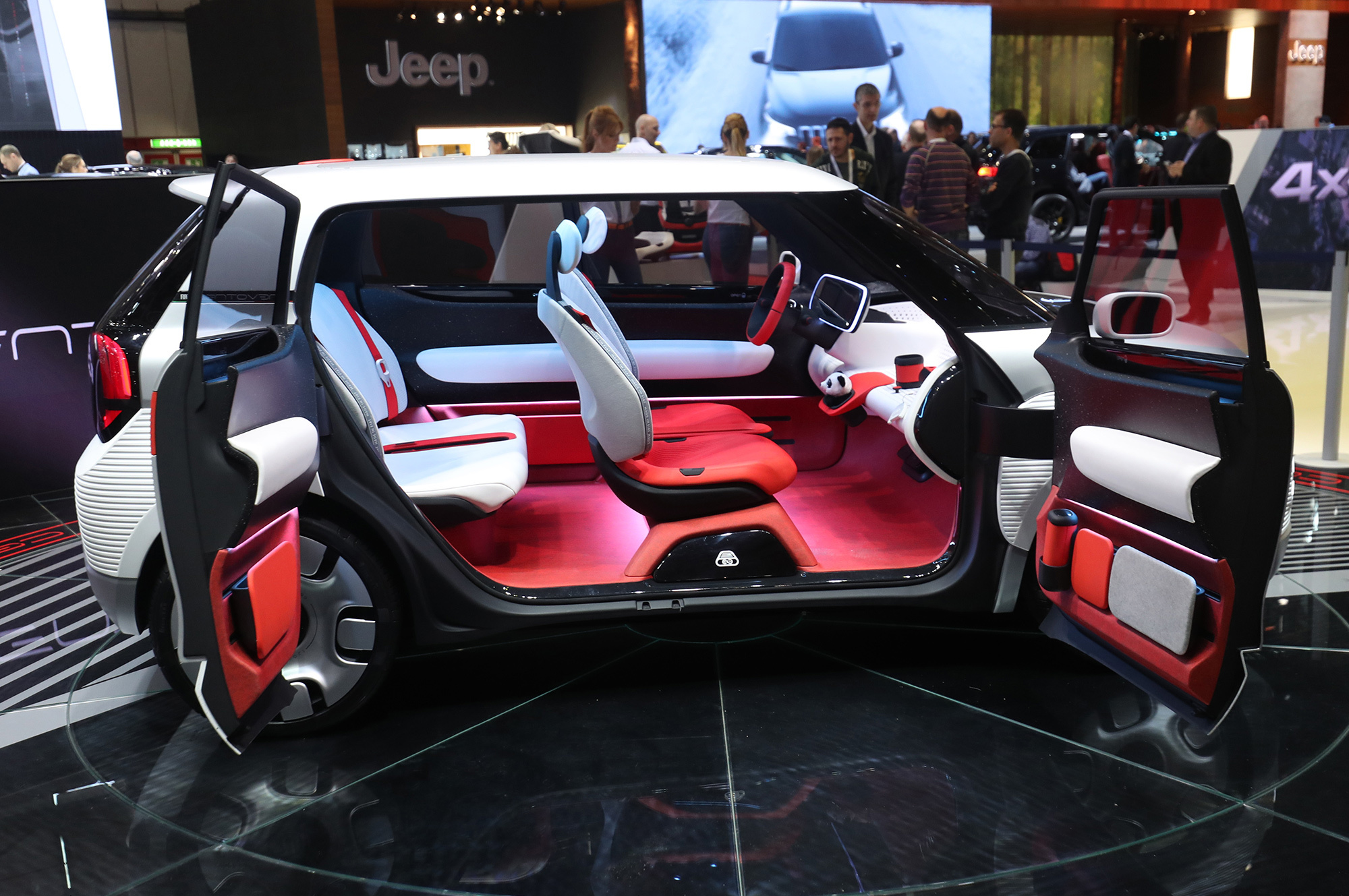 Программа 4U позволит клиентам выбирать из четырёх вариантов: крыши (жёсткий или мягкий верх, солнечная батарея), бамперов, колёсных дисков и плёнок для оклейки кузова. Также свой каталог аксессуаров развернёт ателье Mopar, в котором будет 120 (ну конечно) позиций. Шесть из них устанавливаются только в дилерских центрах, остальные можно самостоятельно прикрутить дома и даже напечатать на 3D-принтере (к примеру, подстаканник). Причём бизнес-модель поощряет перепродажу аксессуаров в Интернете, мол, так «воспитается реальное сообщество поклонников бренда».
