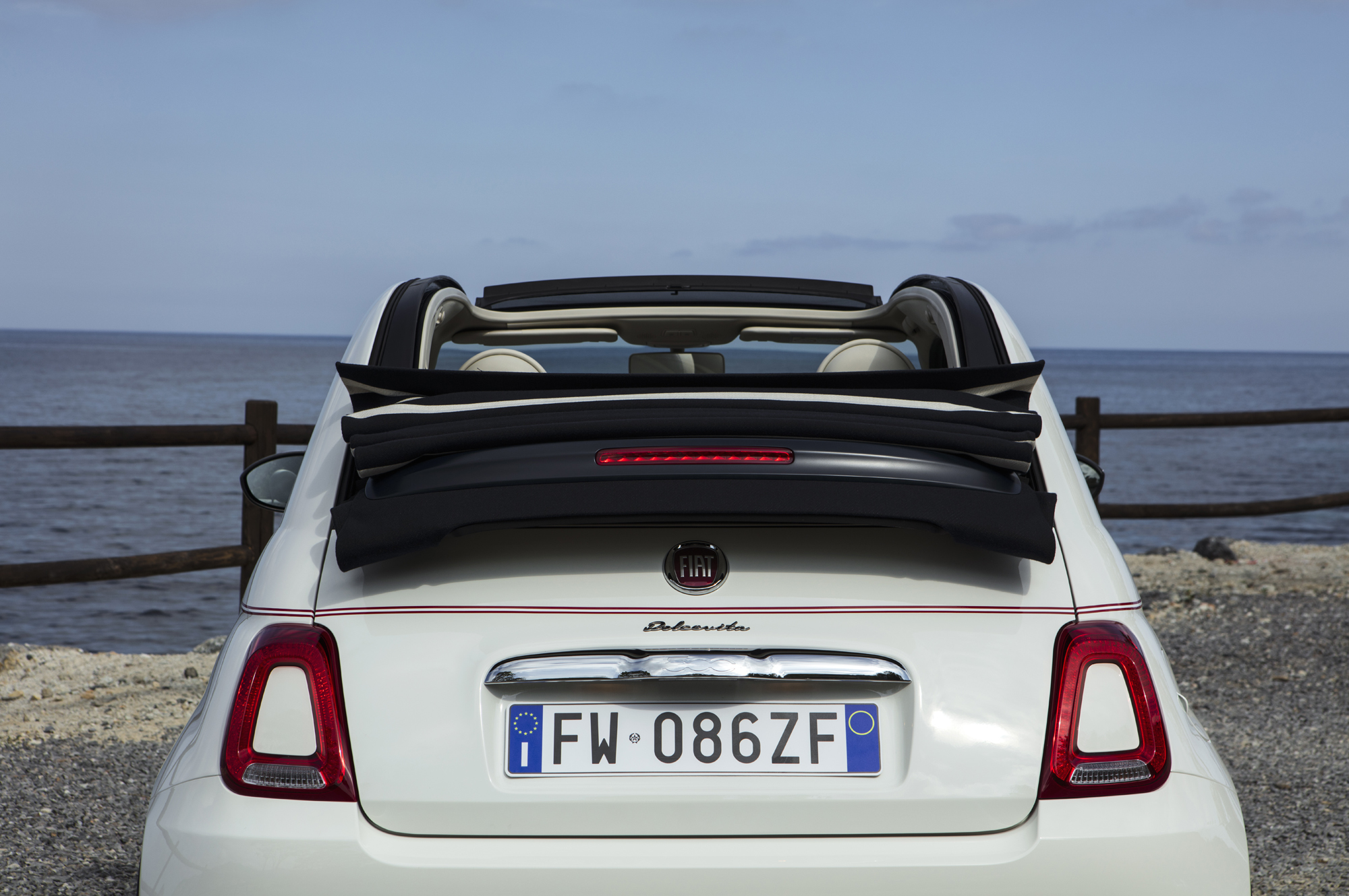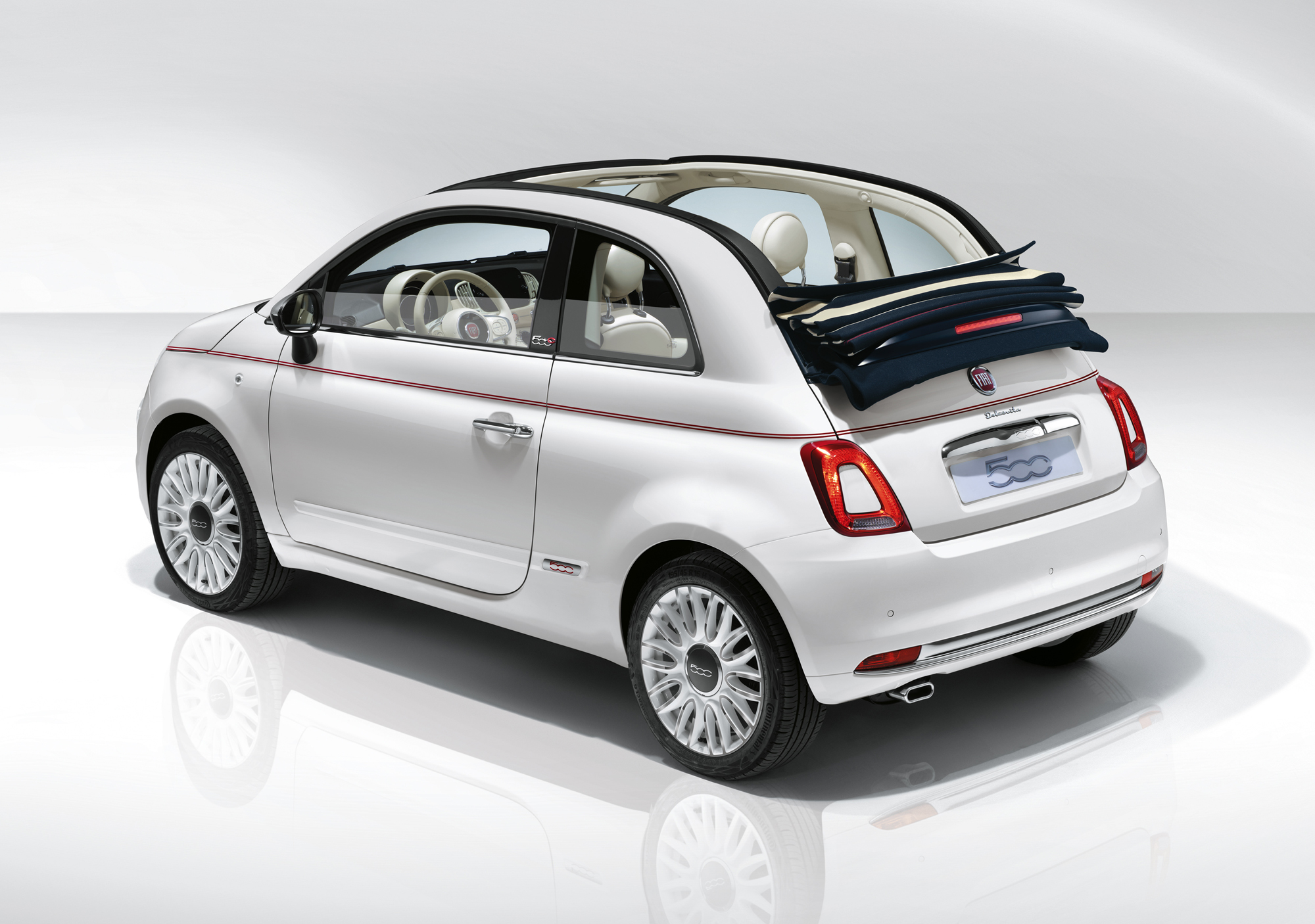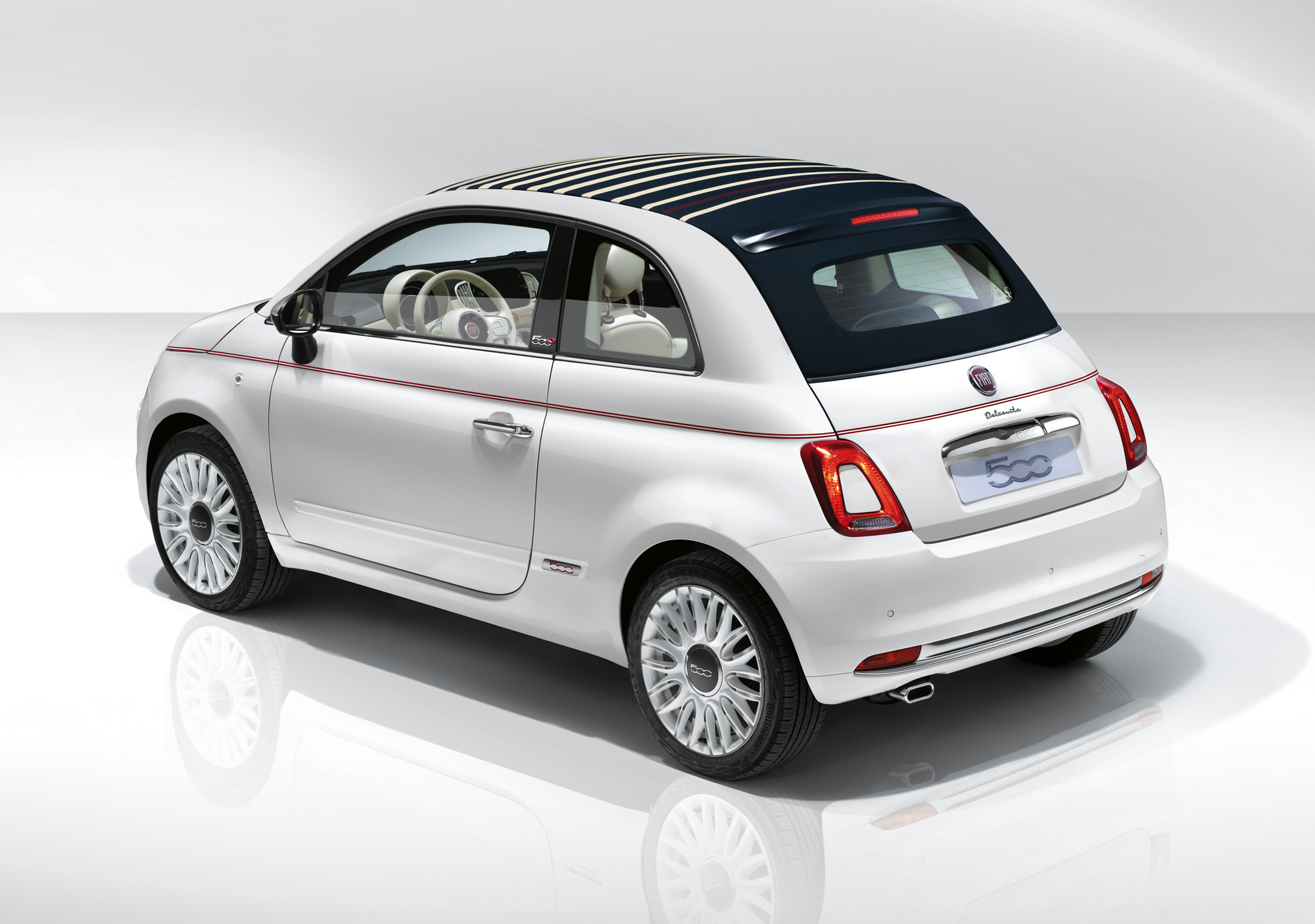 Версия кабриолет Dolcevita внешне выделяется ещё больше, чем закрытый хэтчбек. В дополнение ко всем дизайнерским изыскам впервые в истории эта модель получила мягкий верх с горизонтальными бело-синими полосами с вышитым красным логотипом «500», вдохновлённым шезлонгами и пляжными зонтиками Итальянской Ривьеры шестидесятых годов.
