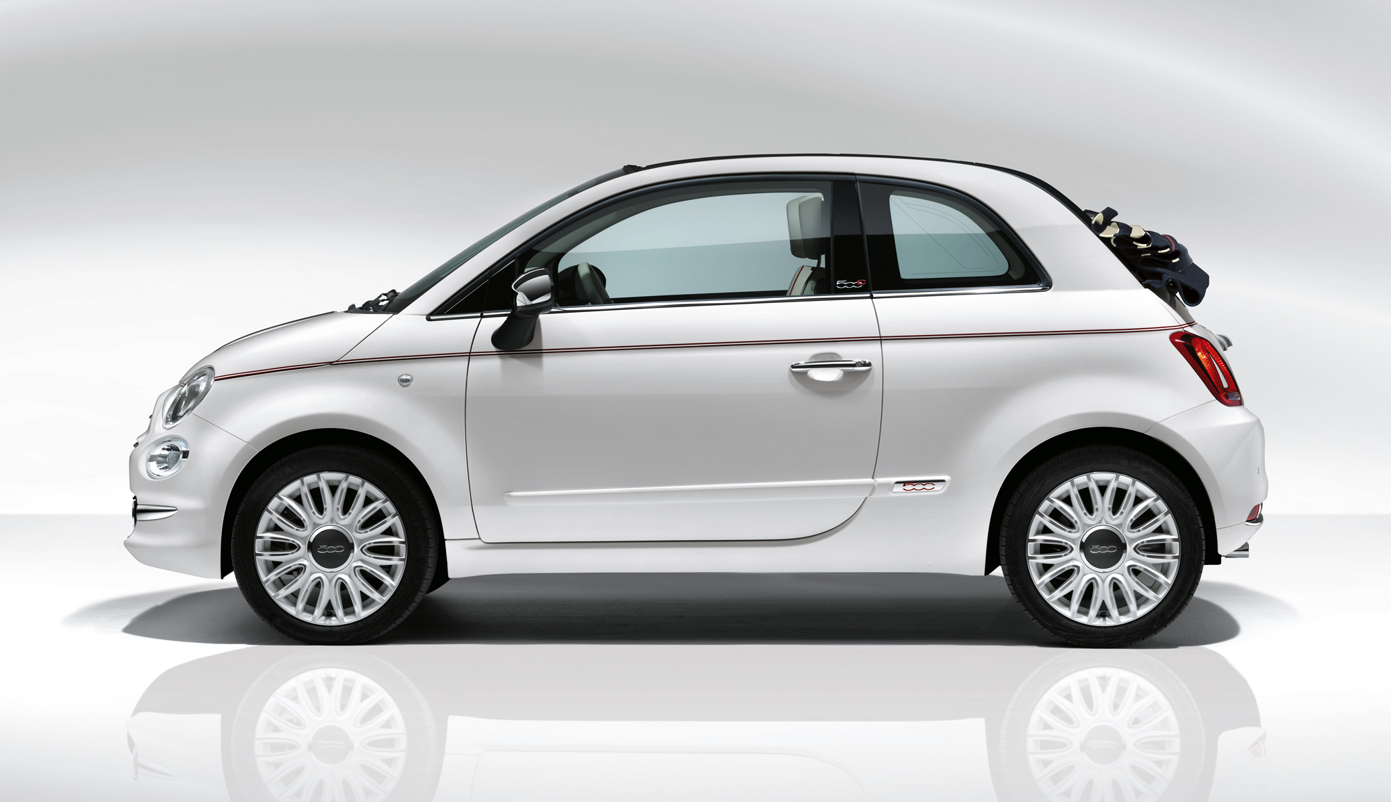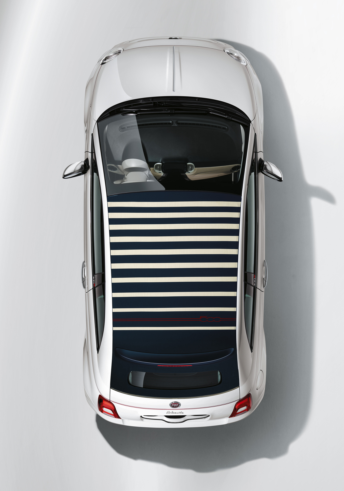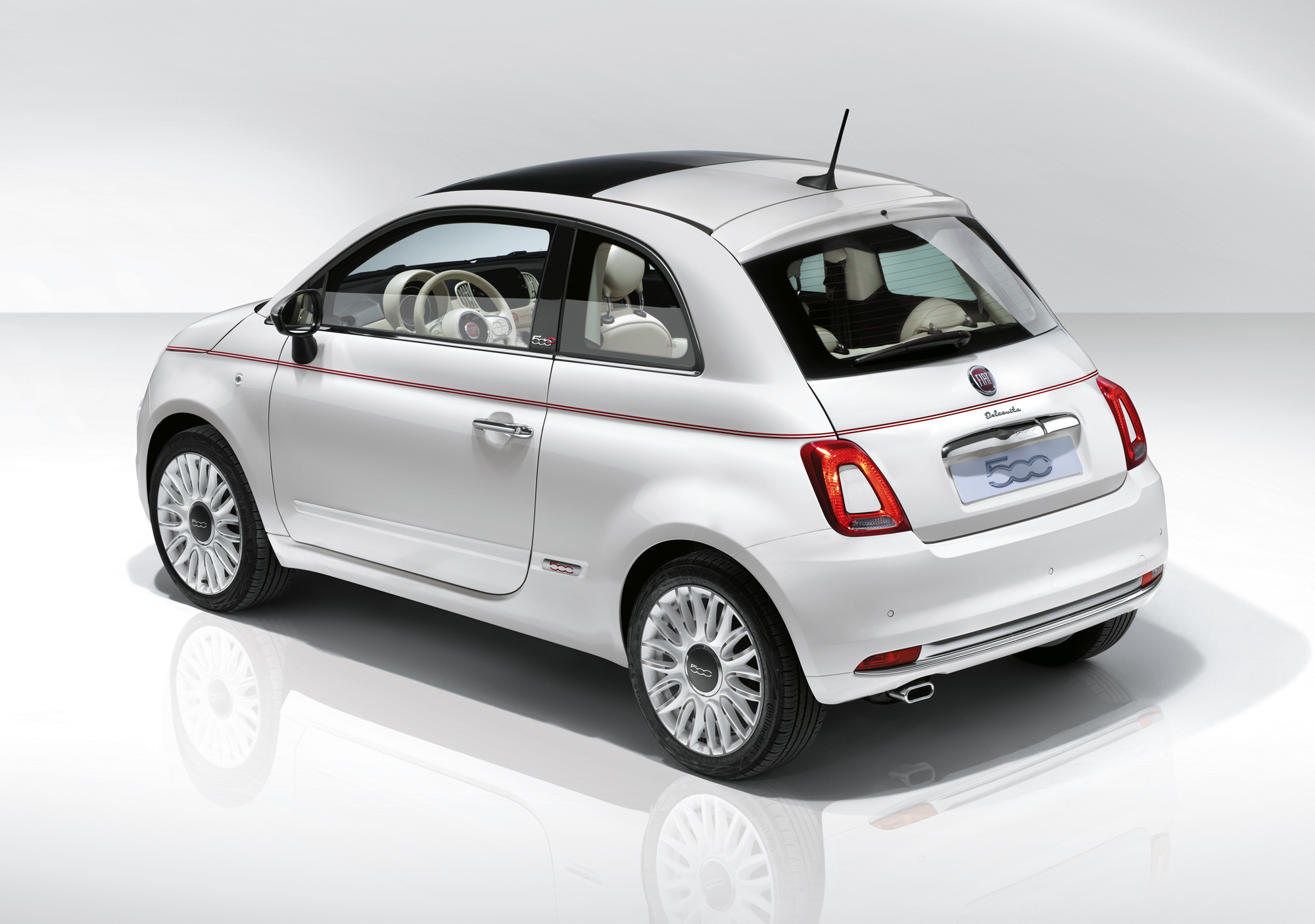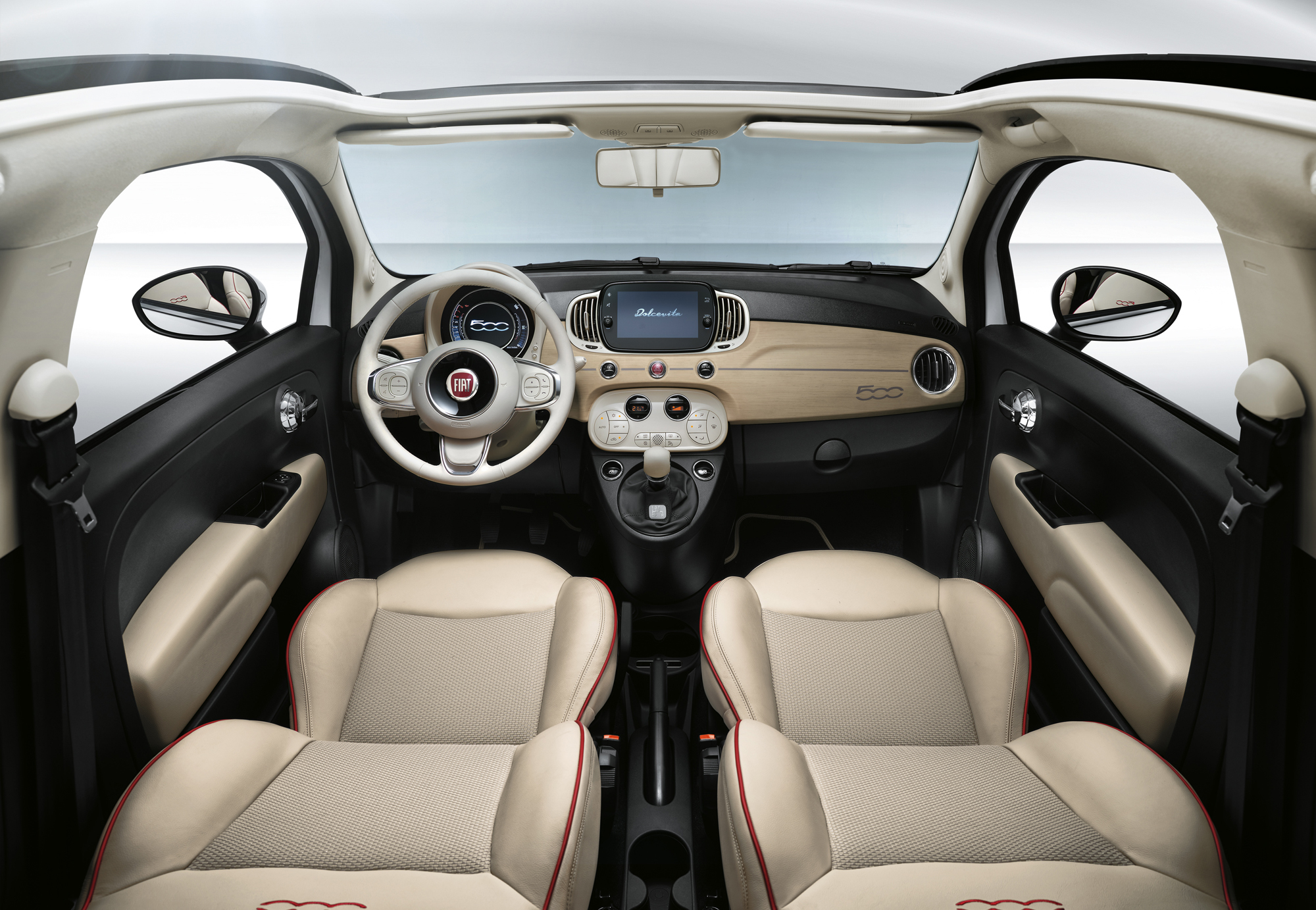 Версия кабриолет Dolcevita внешне выделяется ещё больше, чем закрытый хэтчбек. В дополнение ко всем дизайнерским изыскам впервые в истории эта модель получила мягкий верх с горизонтальными бело-синими полосами с вышитым красным логотипом «500», вдохновлённым шезлонгами и пляжными зонтиками Итальянской Ривьеры шестидесятых годов.