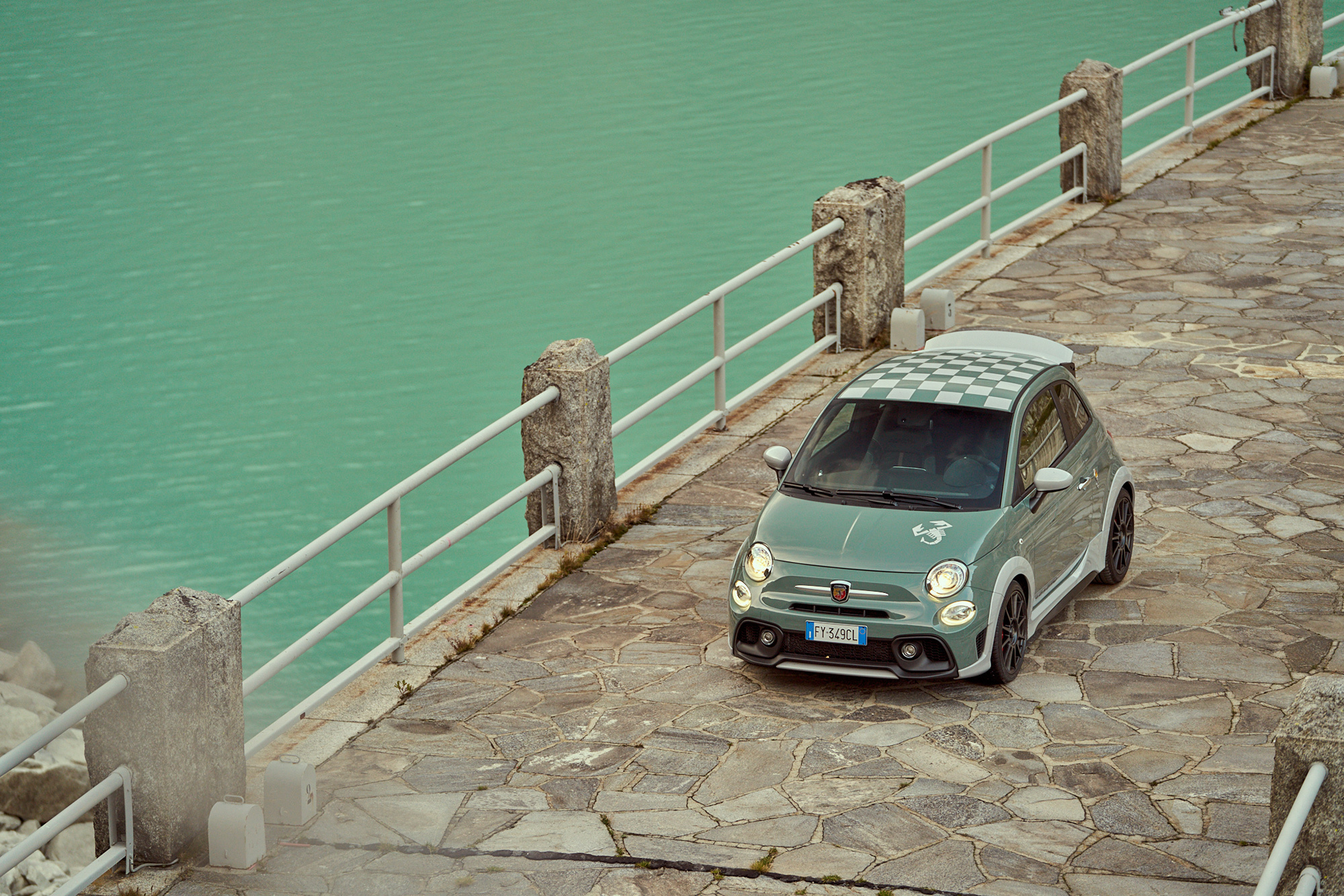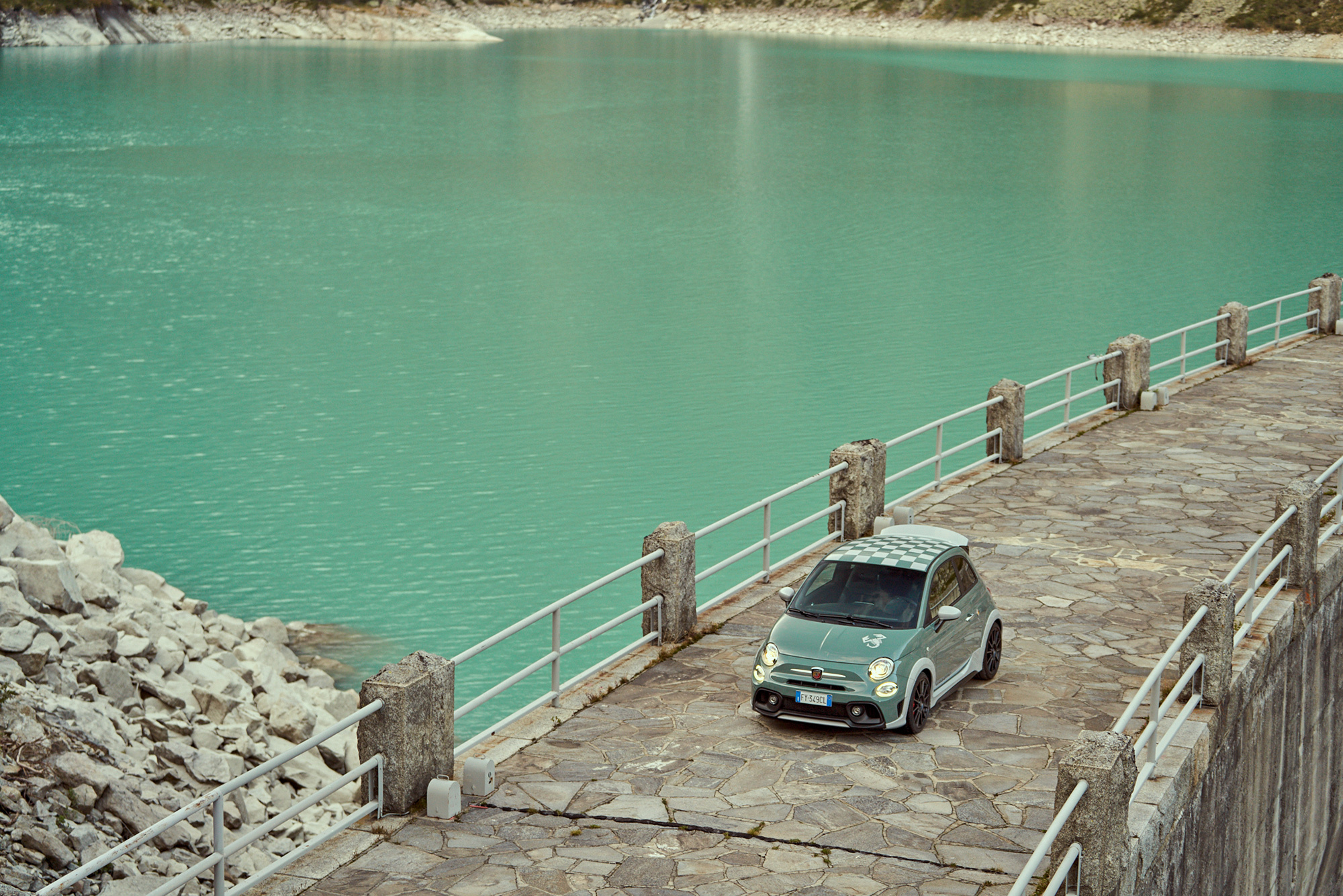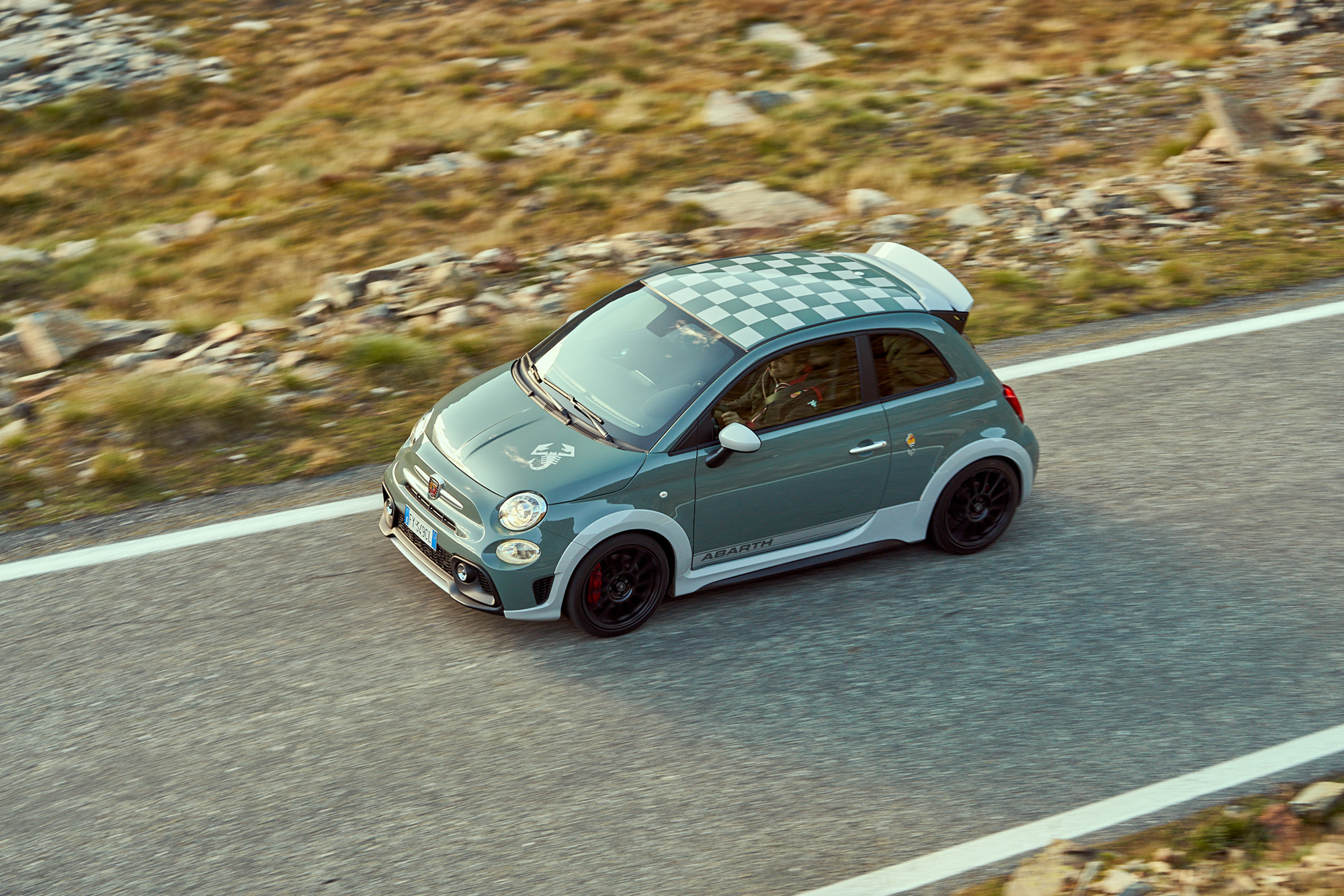 Юбилейной машине дизайнеры подарили новую зелёную ливрею Monza 1958, в память о первых моделях 500 Abarth, установивших в том году несколько рекордов. На фоне зелёного выделяются светло-серые акценты, в частности сплиттер, спойлер, пороги и арки, клетчатый флаг на крыше и абартовский скорпион на капоте. Довершают образ 17-дюймовые чёрные колёсные диски SuperSport, красные суппорты Brembo с тормозными дисками диаметром 305/240 мм (спереди/сзади).