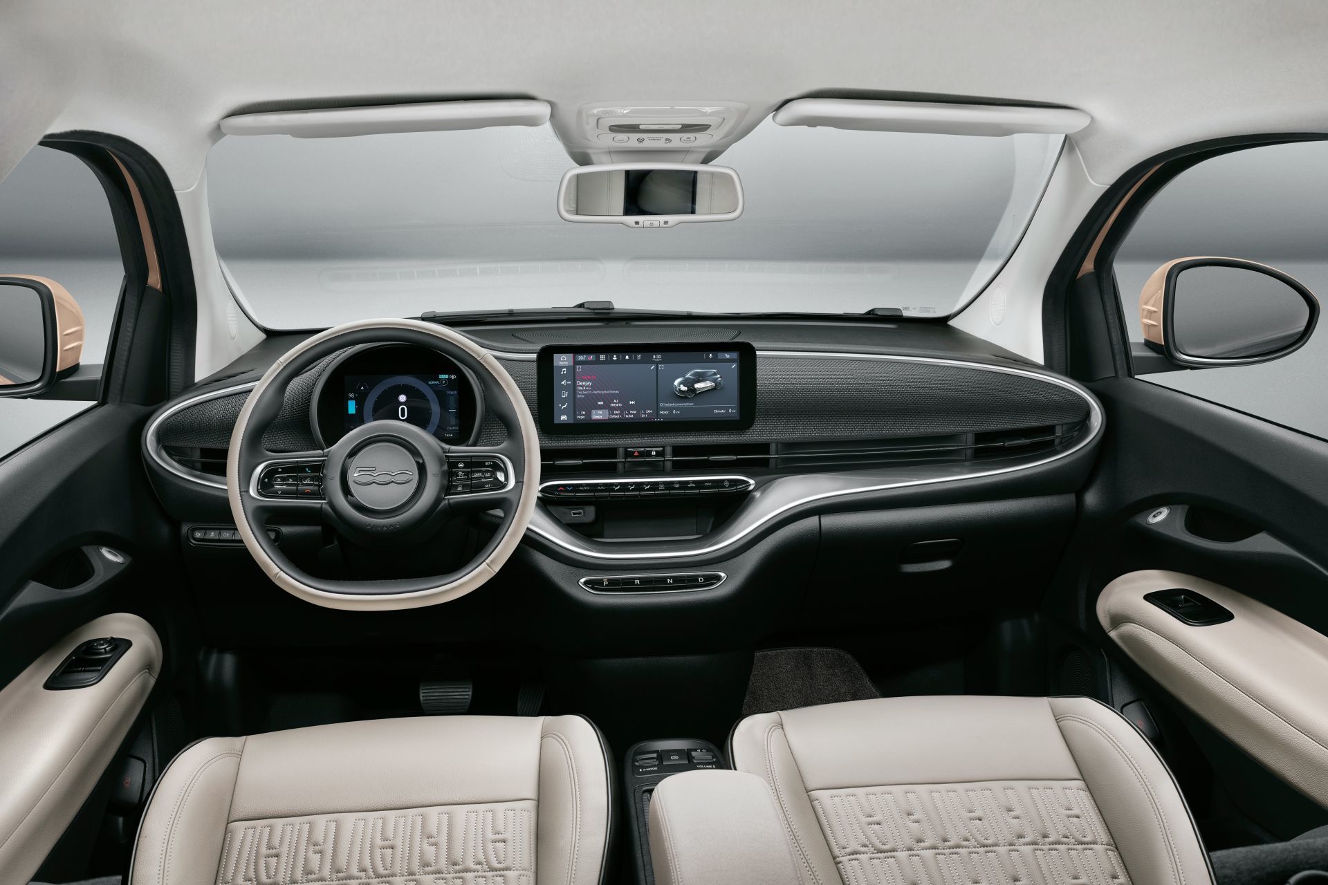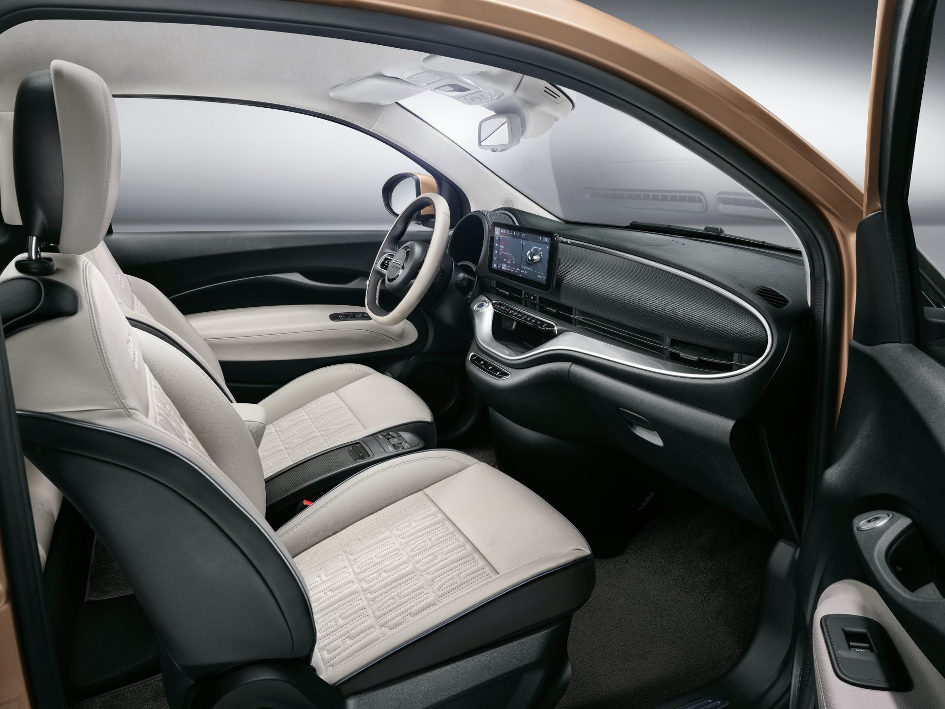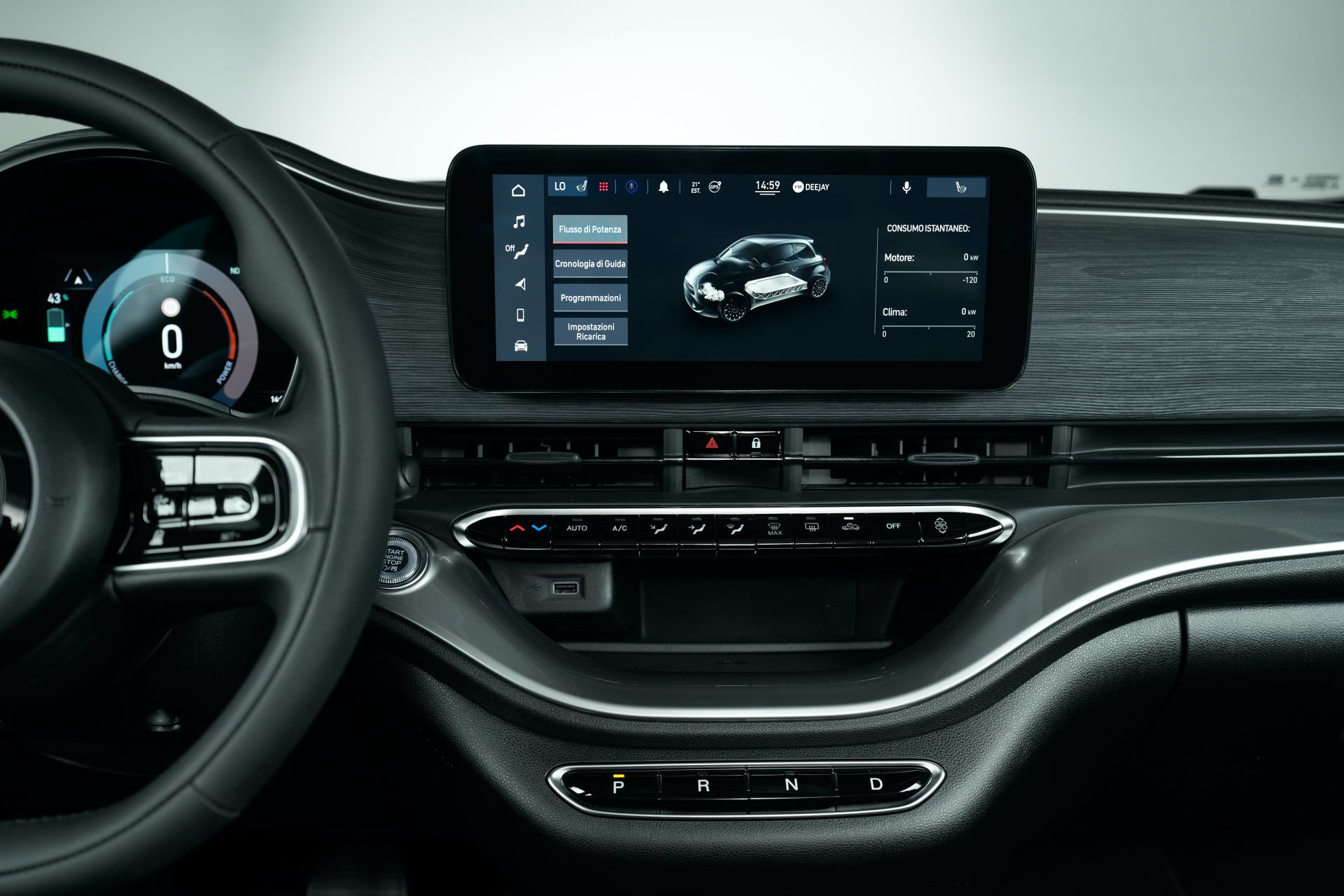 Разумеется, 500 3+1, уподобившись родственникам, поступит на рынок в хорошо оснащённой модификации La Prima. Однако позже выбор комплектаций для всей линейки заметно расширится. Стартовым исполнением станет Action. Такой машине положен электромотор мощностью 95 сил в сочетании с уменьшенным до 23,8 кВт•ч аккумулятором. На разгон с места до 100 км/ч автомобиль потратит 9,5 с (+0,5 с), максимальная скорость будет ограничена 135 (–15) км/ч, а запас хода снизится до 180 км. В оснащение войдут галогеновые фары, тканевый салон и простые 15-дюймовые колёса. Мультимедийной системы как таковой тут нет.