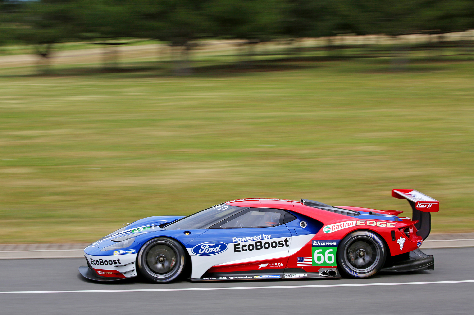 Фордовцы решили приурочить своё возвращение на марафон Ле-Мана к 50-летнему юбилею триумфа модели GT40 в 1966-м, продолжившемуся чередой побед в 1967, 1968 и 1969 годах. Биться предстоит в классе LM GTE Pro. «Мы считаем, что Ford GT благодаря выверенной аэродинамике, облегчённой посредством углеволокна конструкции и двигателю EcoBoost может снова конкурировать на мировой арене», — заявил Радж Наир, главный технарь Форда. О намерении победить ни он, ни исполнительный директор Билл Форд, ни президент Марк Филдс не сказали ничего.