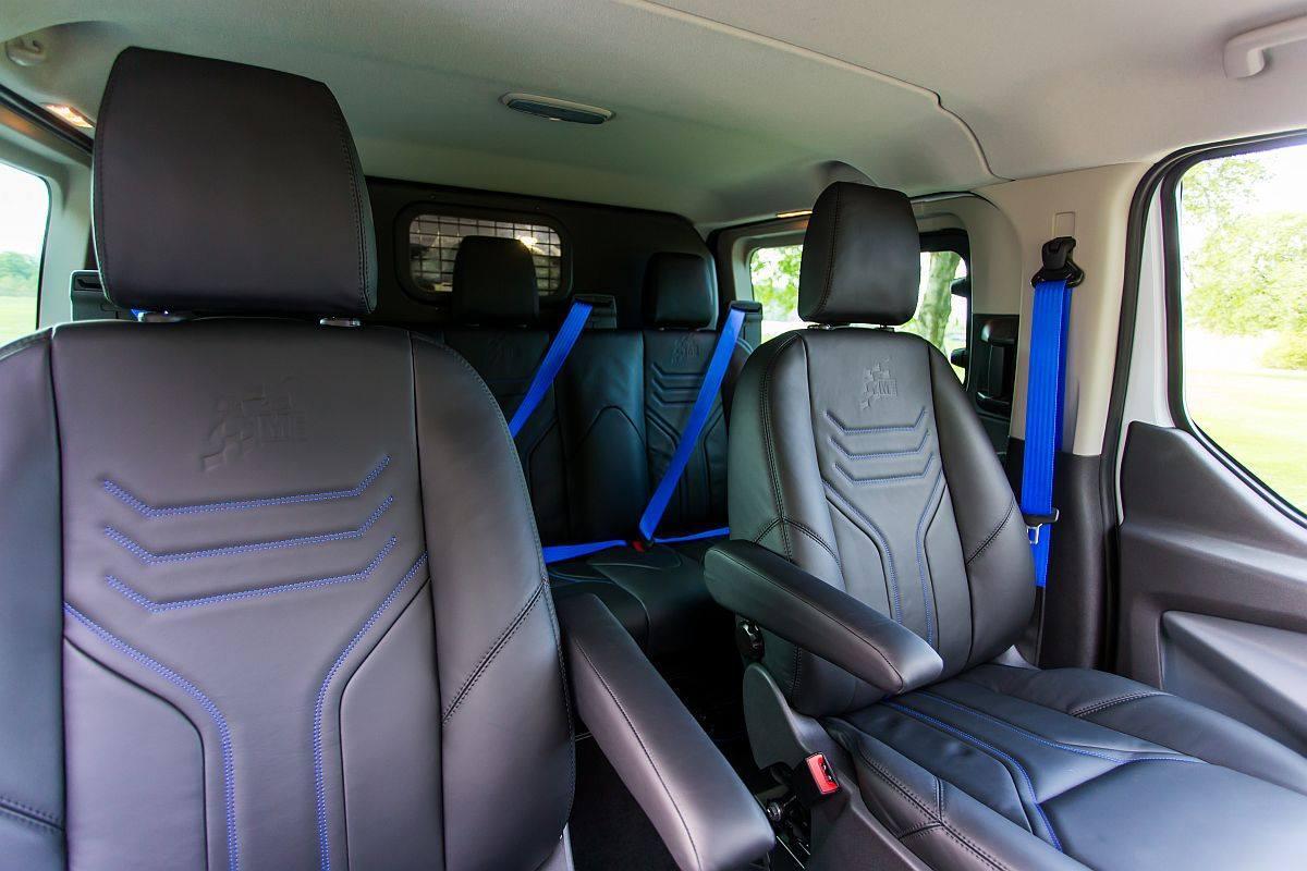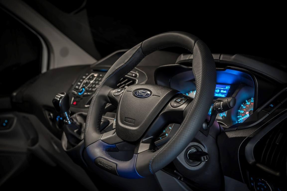 В салоне — новый руль и сиденья с синей прострочкой. Фургон оснастили «спортивной» выхлопной системой. Подробностей о моторе нет. Известно, что в движение Ford Transit приводится турбодизелем, но отдачу производитель не называет. Автомобиль выпущен в единственном экземпляре.