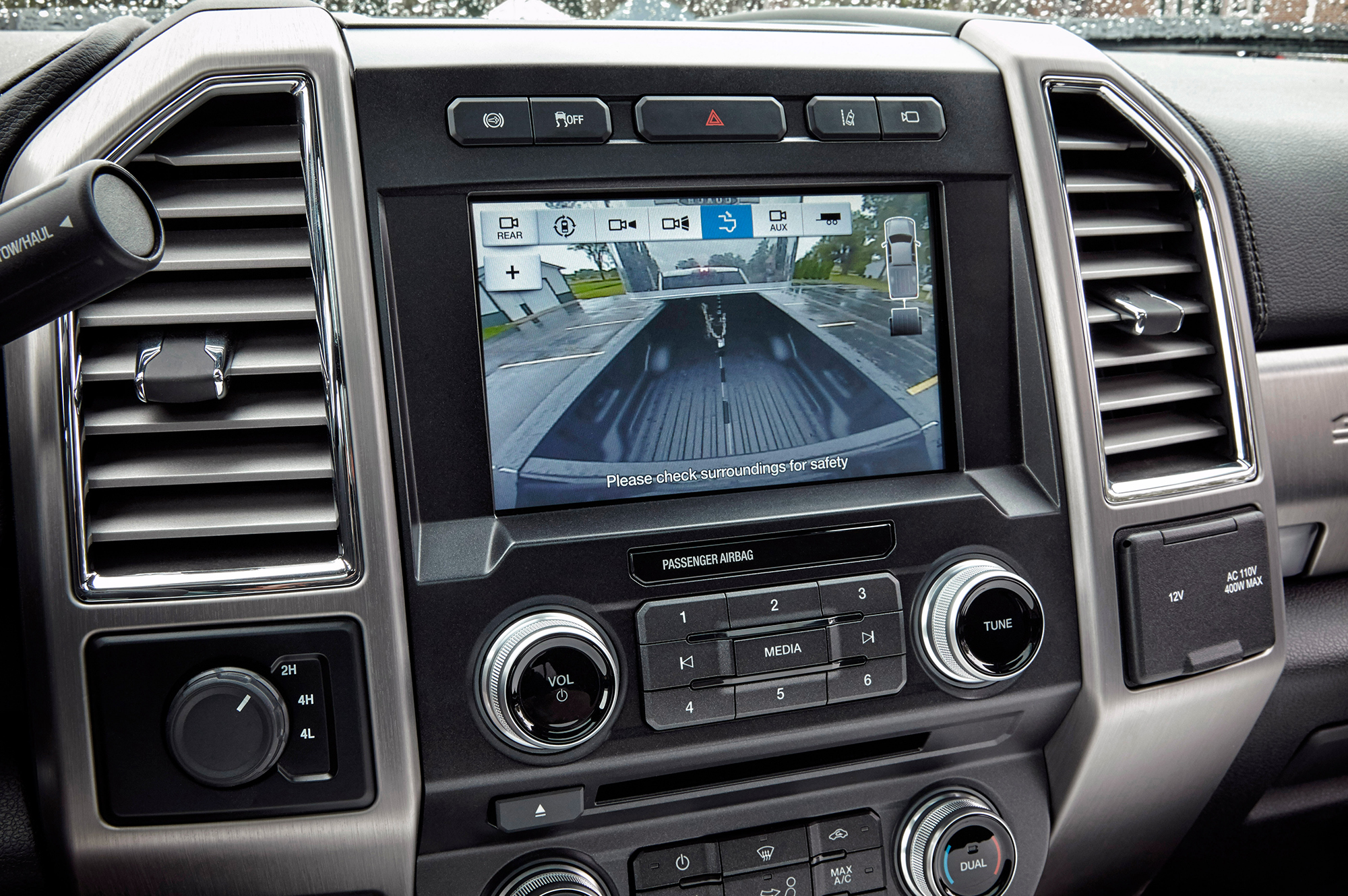 Одна из самых интересных особенностей — система обзора, которая может включать до семи «глаз». Это обычные камеры кругового обзора, какие можно встретить на многих машинах, дополнительная на кабине около верхнего стоп-сигнала (она показывает грузовой отсек), и ещё — впервые в отрасли! — компания предложила заводскую камеру на прицеп, для дополнительного обзора назад (над похожей системой работает и Jaguar Land Rover).