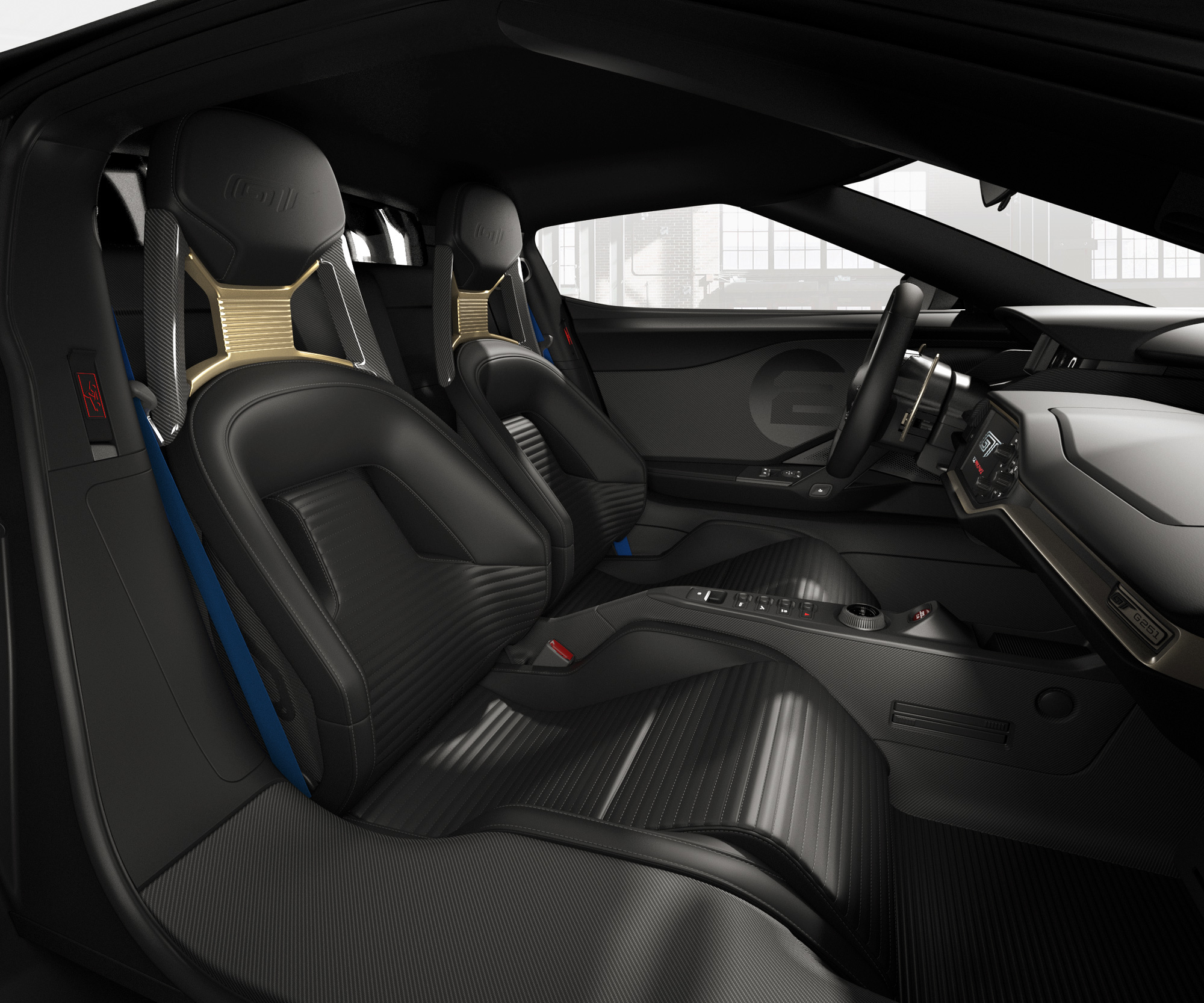 Суперкар щеголяет оригинальной раскраской, главное в ней — крупные цифры 2, вырезанные в кружках цвета Frozen White. Это подражание внешности Форда полувековой давности, который победил в Ле-Мане. Дополнительный штрих — глянцево-золотистые 20-дюймовые кованые колёсные диски с чёрными болтами.