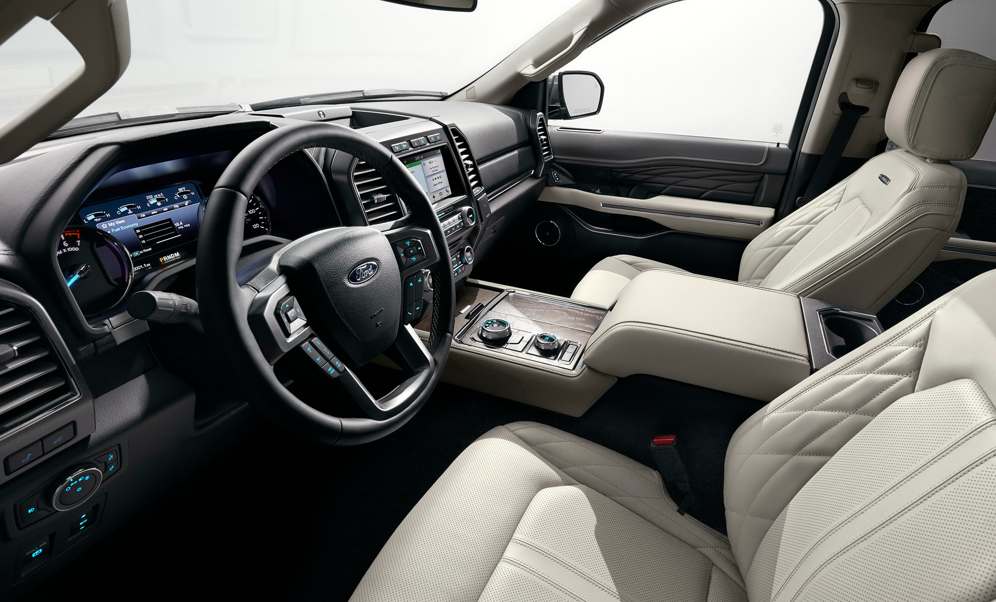 «Самый умный, самый способный и наиболее адаптируемый Expedition», — так характеризует компания своё творение, предпочитая значительную часть описания посвятить электронной начинке. Перечень и правда солидный. Впервые на Фордах — беспроводная зарядка смартфонов, точка доступа Wi-Fi раздаёт сигнал на 10 устройств на расстоянии до 15 м от автомобиля. В виде опции — полностью светодиодные фары, а максимальный размер колёсных дисков вырос с 20 до 22 дюймов (начальный — 17).
