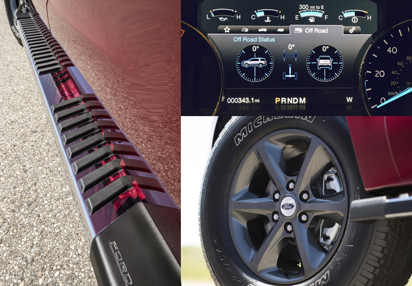 Набор FX4 включает в себя перенастроенные под бездорожье амортизаторы, увеличенное передаточное число главной передачи (3,73:1), задний дифференциал с электронной блокировкой, оригинальные 18-дюймовые колёсные диски с окраской Magnetic Metallic и вседорожные шины с более толстыми боковинами, хромированные подножки с рельефными резиновыми накладками, уменьшенный сплиттер для увеличенного угла въезда, резиновые коврики с высокими бортиками, а ещё семь пластин под днищем для защиты радиатора интеркулера, двигателя, трансмиссии, рулевого механизма и топливного бака. Комплектуется Expedition FX4 380-сильной «шестёркой» и способен буксировать прицеп массой до 4218 кг, что фирма характеризует как рекорд в классе.