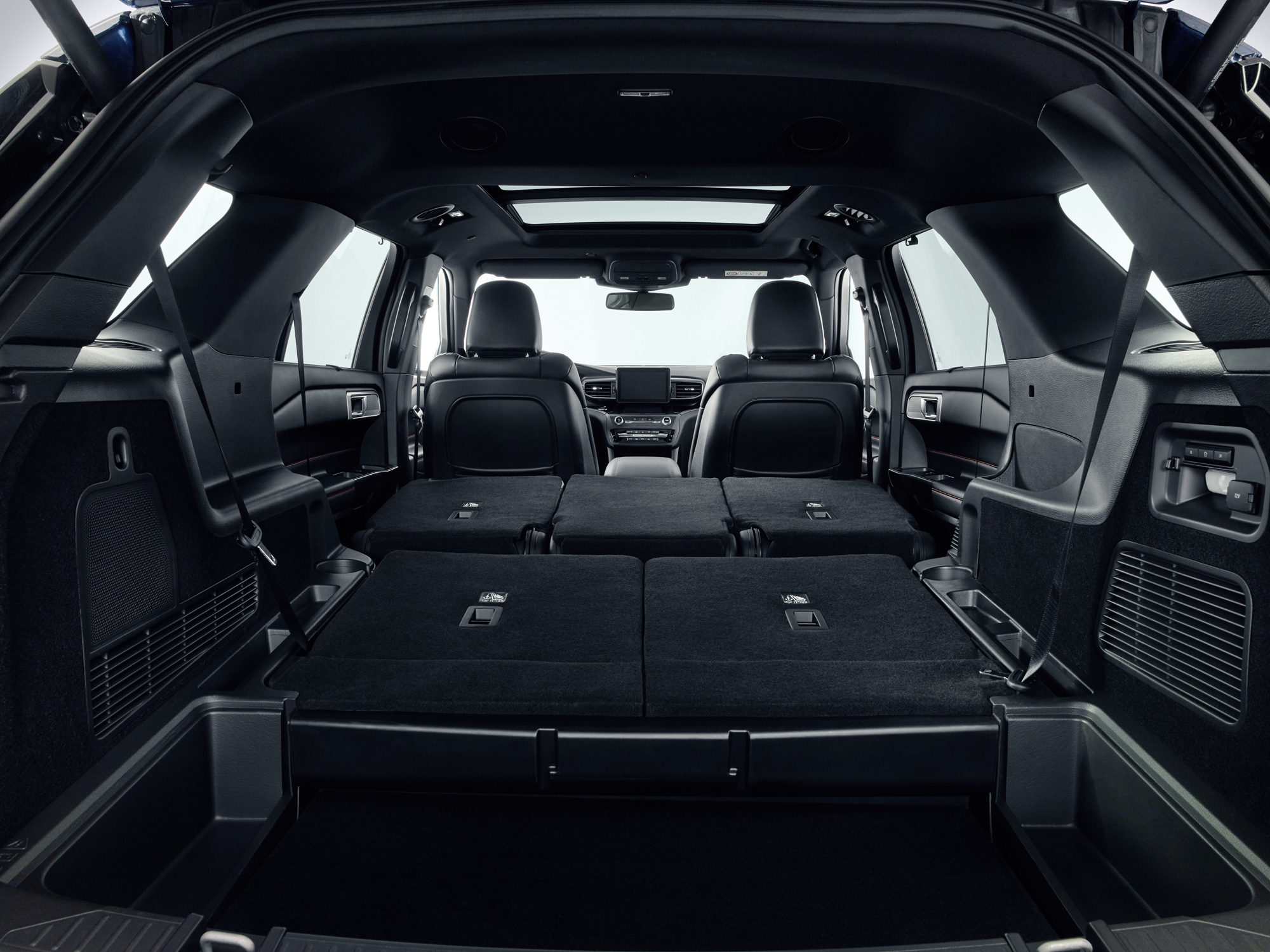 Как и его собратья с обычными ДВС, параллельный заряжаемый гибрид Explorer оснащён селектором внедорожных режимов Terrain Management с семью программами (от нормальной дороги до глубокого снега), а также внушительным перечнем систем помощи водителю и безопасности. В штатное оснащение входит мультимедийная система с горизонтальным экраном на восемь дюймов (ST-Line) или вертикально-ориентированным на 10,1 (Platinum). Приборка же тут с дисплеем 12,3 дюйма. Обеим версиям положена аудиосистема B&O: на ST-Line — 12 динамиков, 800 Вт, а на Platinum — 14 динамиков, 1000 Вт.