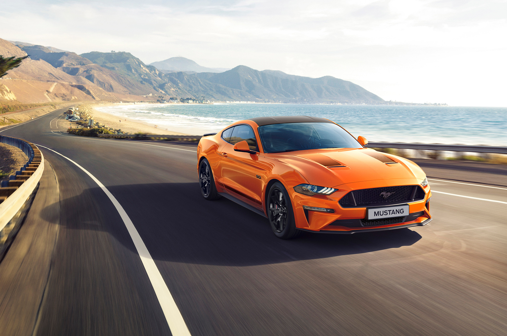 Mustang с Экобустом 2.3 (290 л.с.) в спецсерию не попал, но получил элементы экстерьера «в духе Shelby» (см. фото красного кабриолета в «крупном плане») и систему Ford Active Valve Performance, которая позволяет водителю регулировать интенсивность выпуска на свой вкус. Всё это можно расценивать как знак признательности европейцам, которые в первом полугодии 2019-го приобрели 5500 Мустангов (+5%).