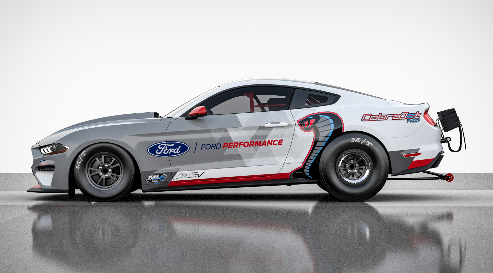 Если купе Mustang Cobra Jet 1400 начнут выпускать и продавать, оно может потягаться с некоторыми электрическими дрэгстерами, построенными мелкими фирмами фактически с нуля, вроде 1600-сильного True Cousins TC-X. Добавим, что в концерне GM тоже думают над возможностью развития дрэгстеров в сторону чистого электропривода. Опытный образец такого купе, 710-сильный Chevrolet eCOPO Camaro, был построен ещё в 2018 году.
