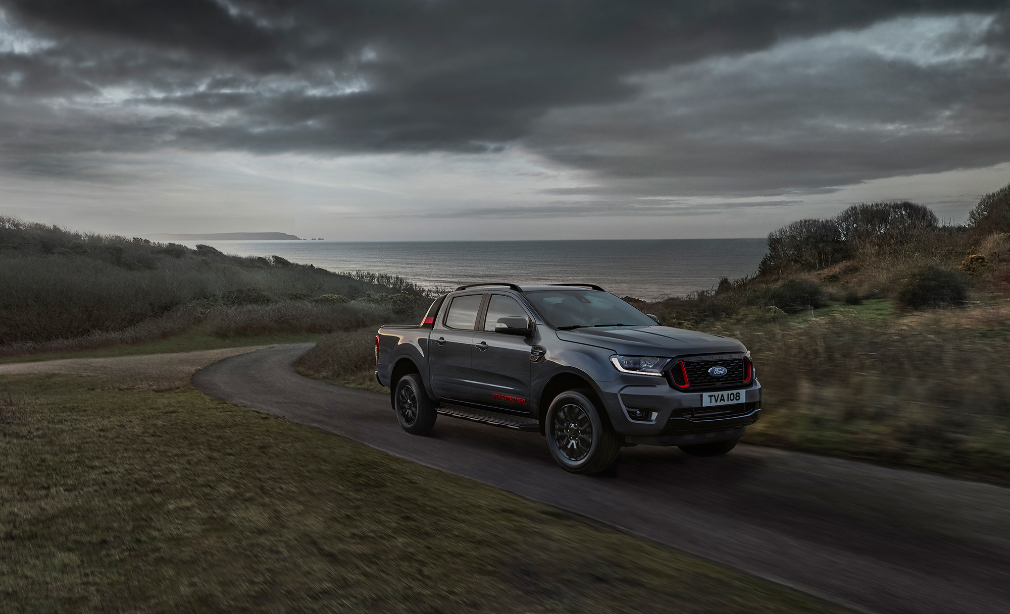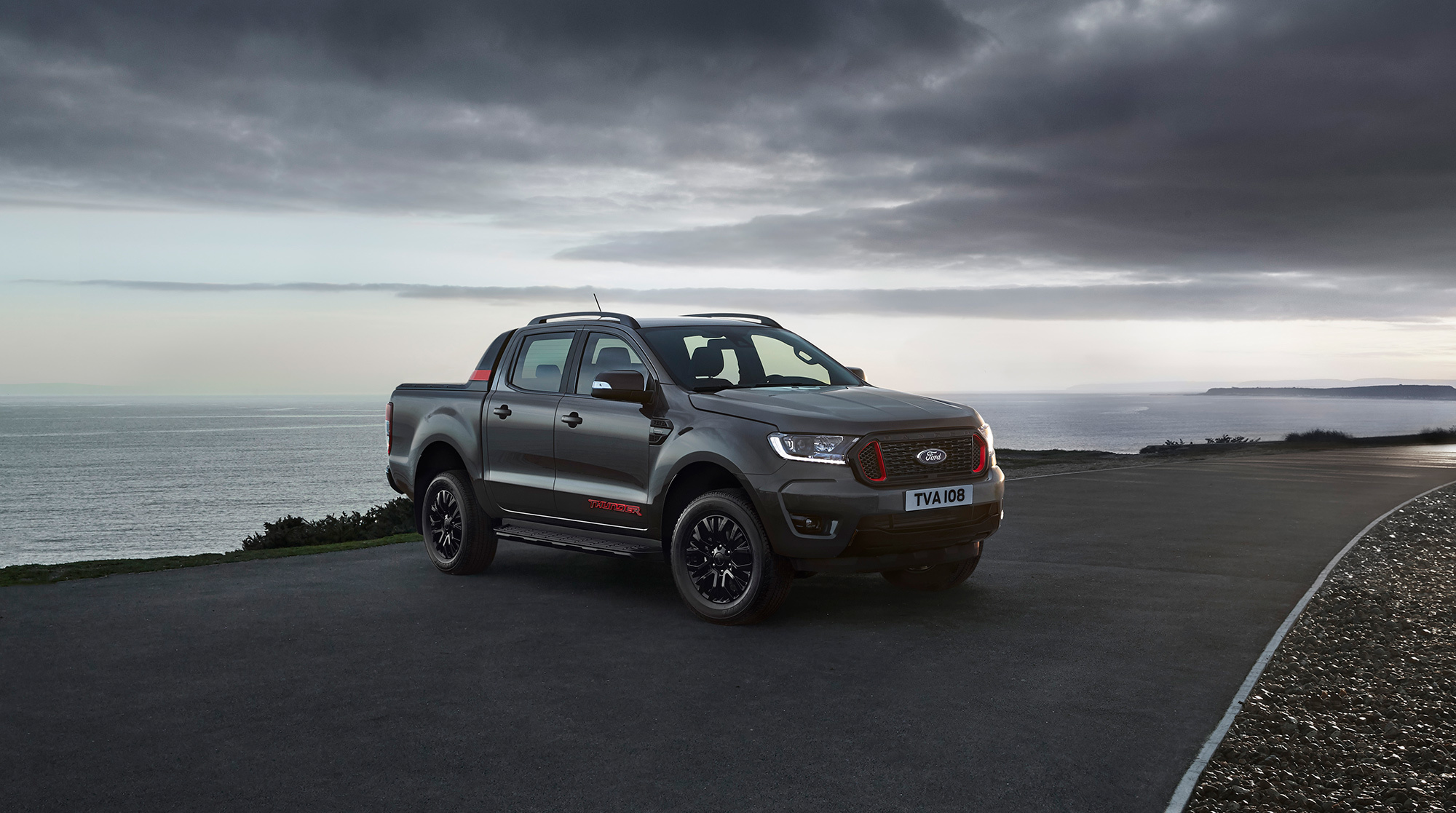 Чёрная решётка радиатора — часть пакета Ebony Black. К нему же относится чёрное исполнение заднего бампера, противоскользящих накладок, противотуманных фар, дуги позади двухрядной кабины и дверных ручек. В базовом оснащении «Грома» также числятся затемнённые светодиодные фары и фонари. Цены первым делом презентованы для британского рынка — из 52,4 тысячи проданных в прошлом году пикапов 16 тысяч приходятся именно на Туманный Альбион. Там за тёмную версию Thunder просят от £32 965 (2,93 млн рублей). Для сравнения, Wildtrak доступен от £30 620. Поставки запланированы на конец лета, но оформить заказ уже можно.