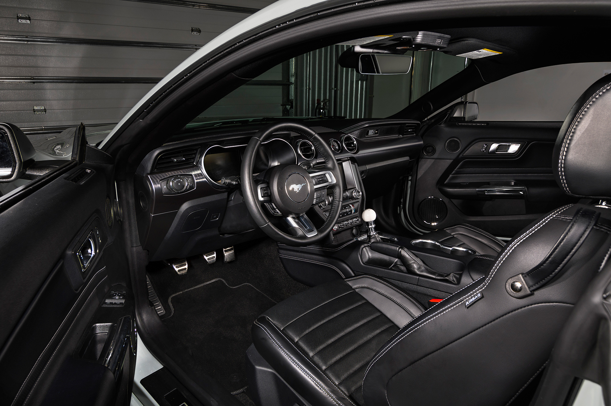 Mustang Mach 1 заточен под трек. Об этом говорит продвинутая аэродинамика: оригинальный сплиттер, диффузор от GT500 и проработанное днище позволили увеличить прижимную силу на 22%, а если заказать пакет Handling с более крупным передним сплиттером, накладками на передние колёсные арки и спойлером с щитком Gurney Flap (как у Shelby GT350), то прижимной силы станет больше сразу на 150%. У Мака перенастроены рулевое управление и амортизаторы MagneRide, ужесточены передние пружины и стабилизаторы спереди и сзади, а также установлены задний подрамник с менее податливыми втулками и задние тяги от Shelby GT500. Правда, ждать новое купе придётся до весны 2021 года, когда машины появятся у дилеров в США и Канаде.