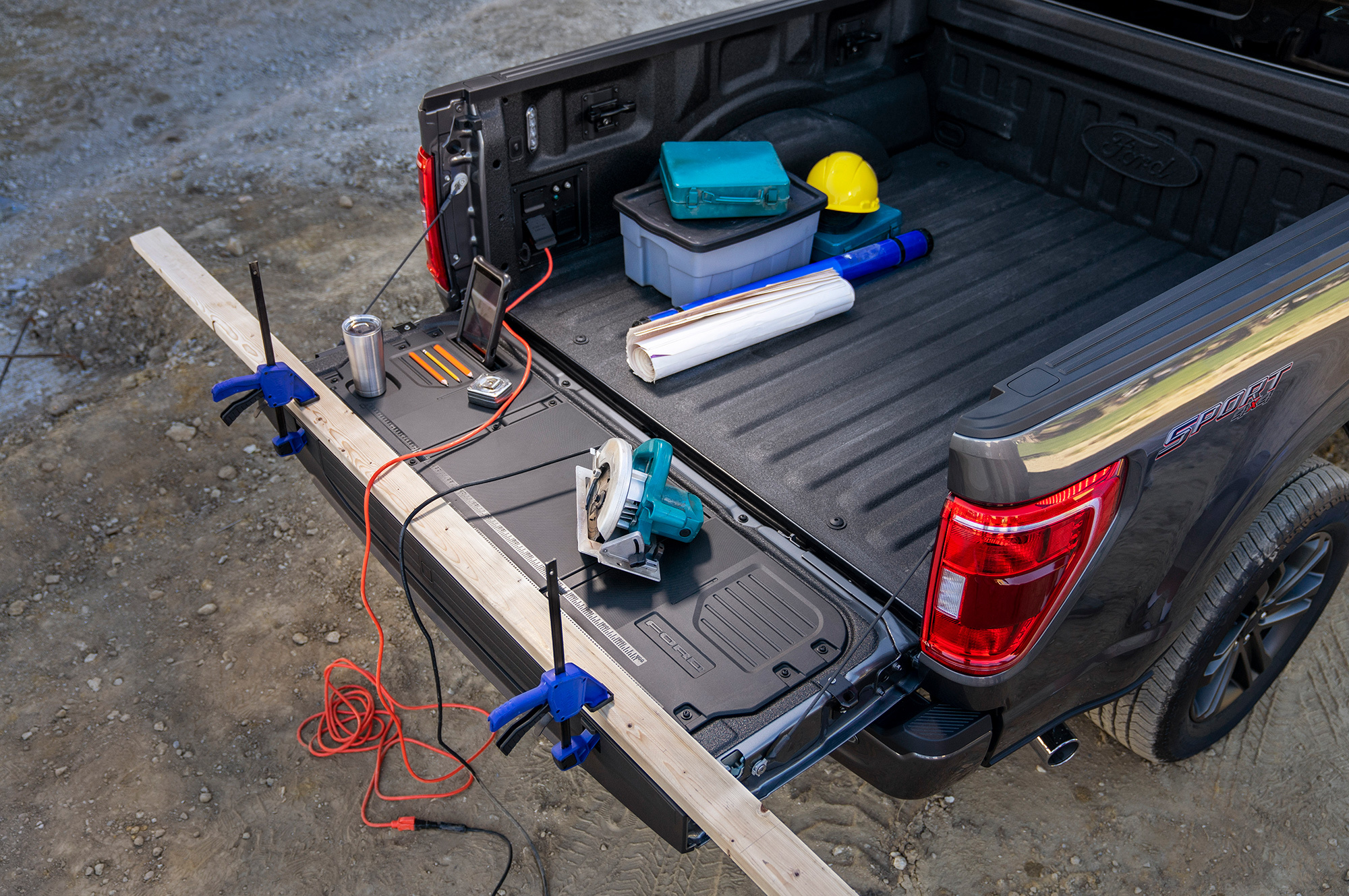 Поскольку сотни тысяч американцев выбирают F-150 для работы, создатели нового поколения немало внимания уделили полезным приспособлениям и системам. Так, в виде опции пикапу доступно питание внешнего оборудования Pro Power Onboard. Это набор розеток переменного тока внутри и на грузовой платформе. Для не гибридных модификаций нагрузка на них ограничена уровнем в два киловатта.