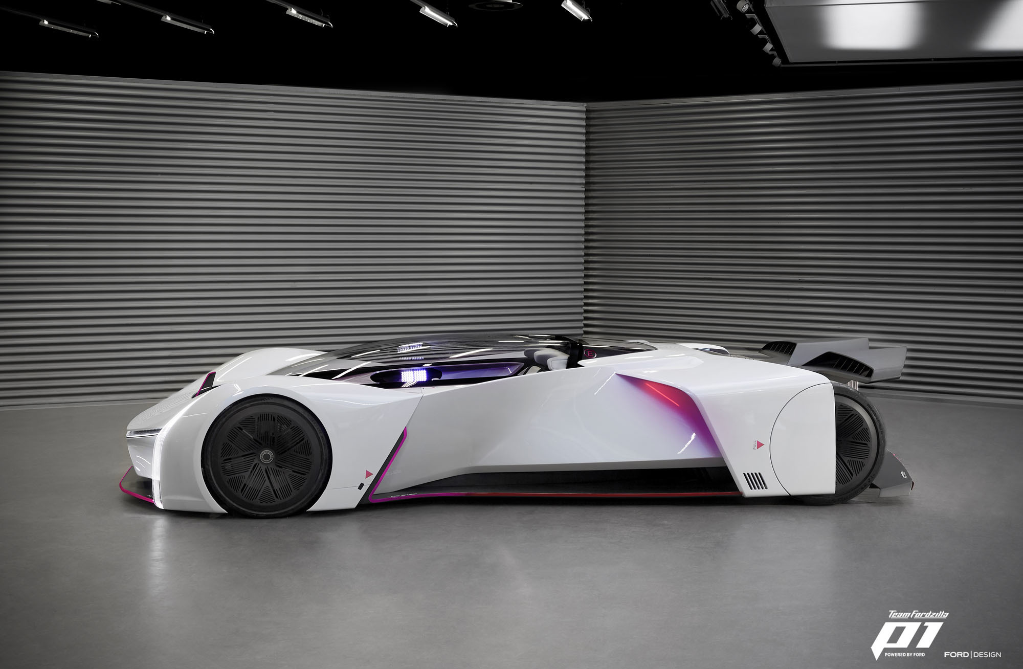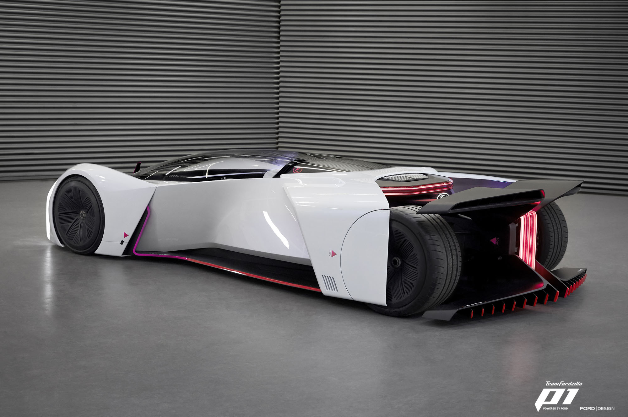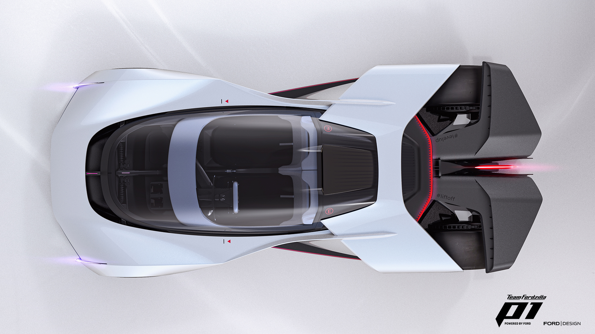 Этот суперкар с учётом пожеланий фордовской киберспортивной команды Team Fordzilla и сотен тысяч фанатов разработали (в первую очередь) дизайнеры компании: Артуро Ариньо (экстерьер) и Роберт Энгельманн (интерьер). Кстати, в сентябре, когда задумку демонстрировали лишь в компьютерном виде, салон фордовцы не показывали, его просто не было. А получилось всё эффектно. Приземистая машина прежде всего делает ставку на аэродинамику. Воздуховоды в задней части кузова и контрфорсы, идущие дугами от прозрачного колпака к задним крыльям, — явная отсылка к суперкару Ford GT.