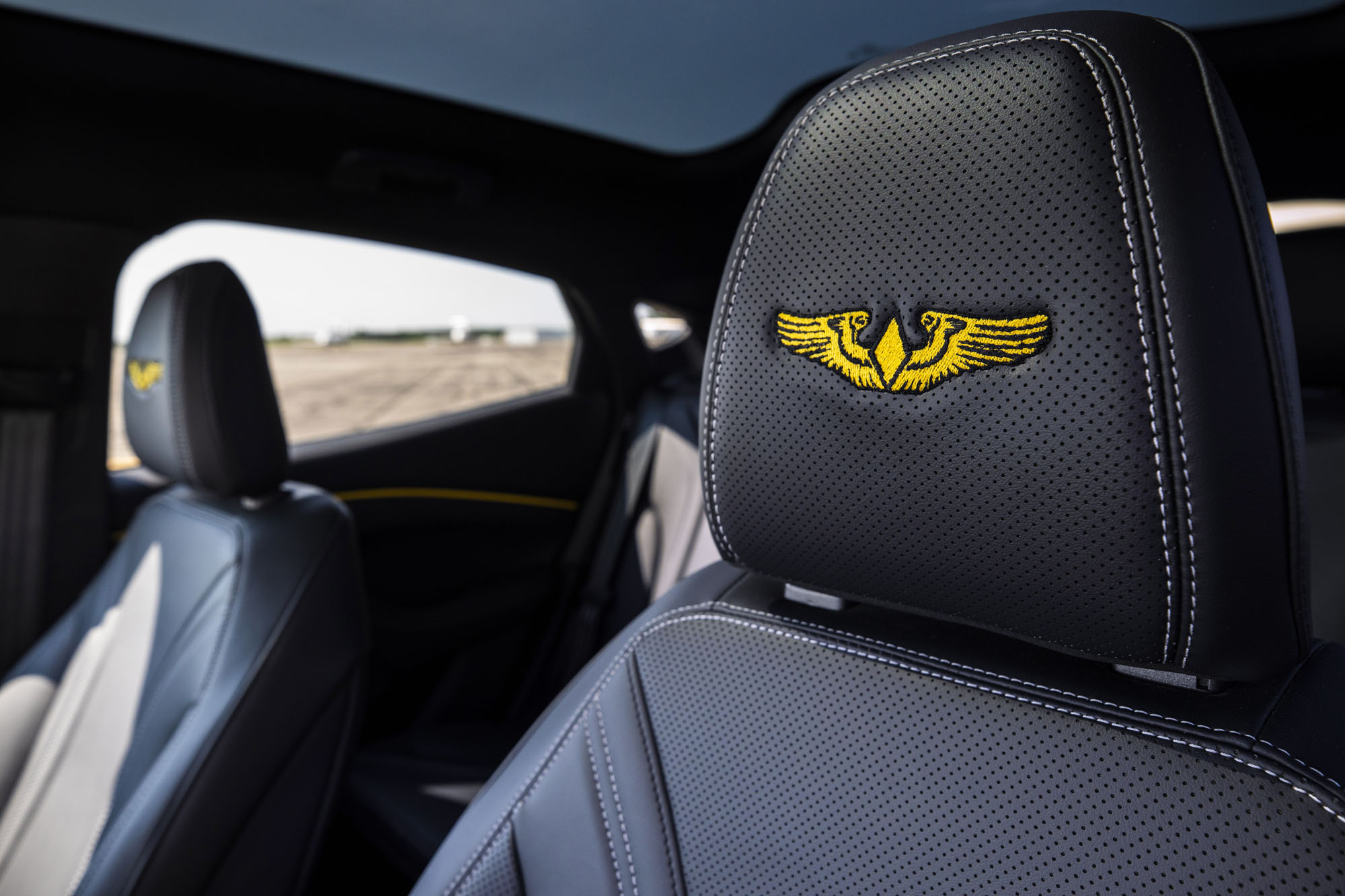 Особые штрихи электрокару придала дизайнер Форда Кристен Кинан, добавившая эмблемы с крыльями, звёзды ВВС, особые окраску и декор в салоне. Доходы от продажи этого особого Мустанга Mach-E пойдут на образовательные программы ассоциации EAA и помощь малообеспеченной молодёжи и молодым женщинам в получении работы в авиационной отрасли.