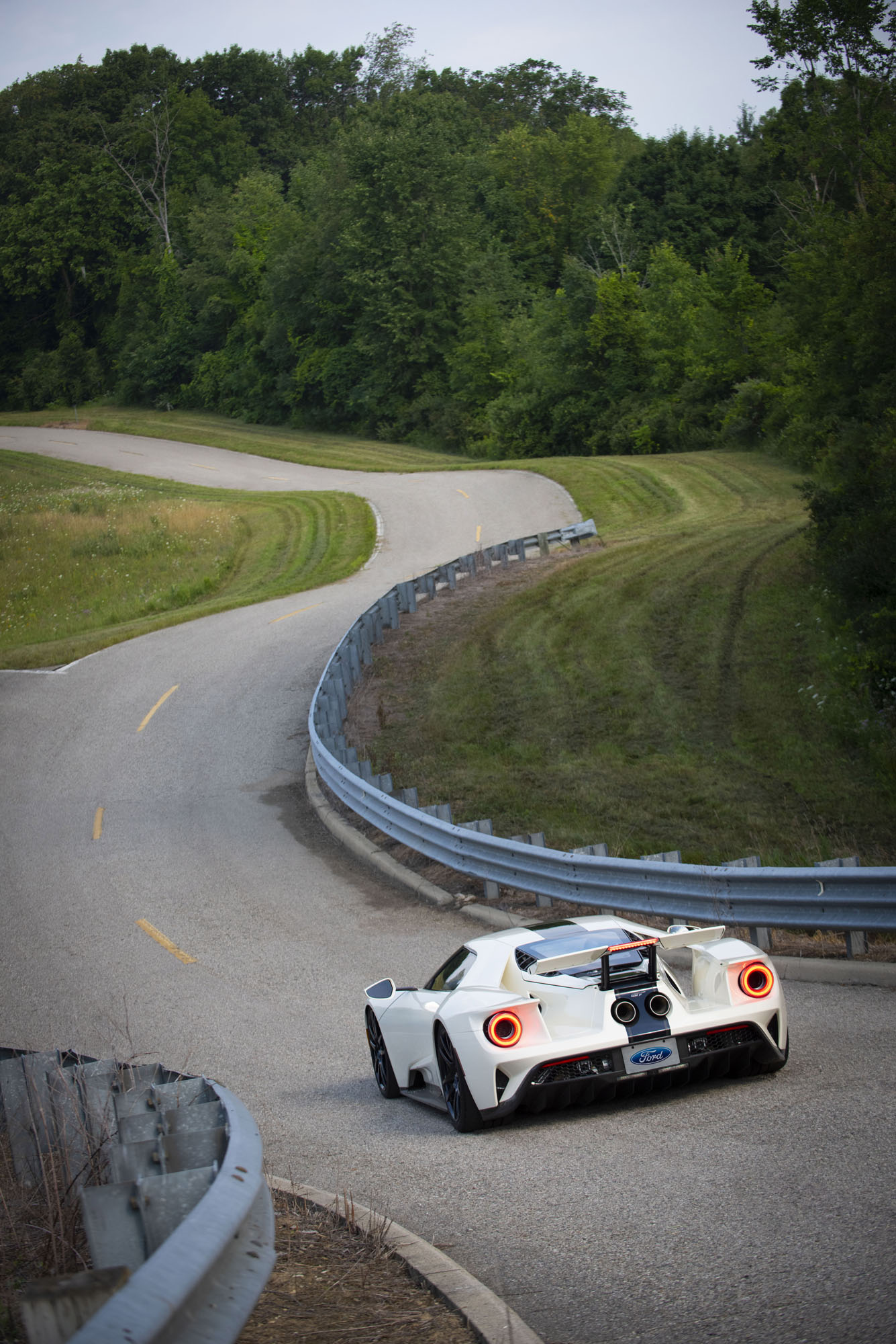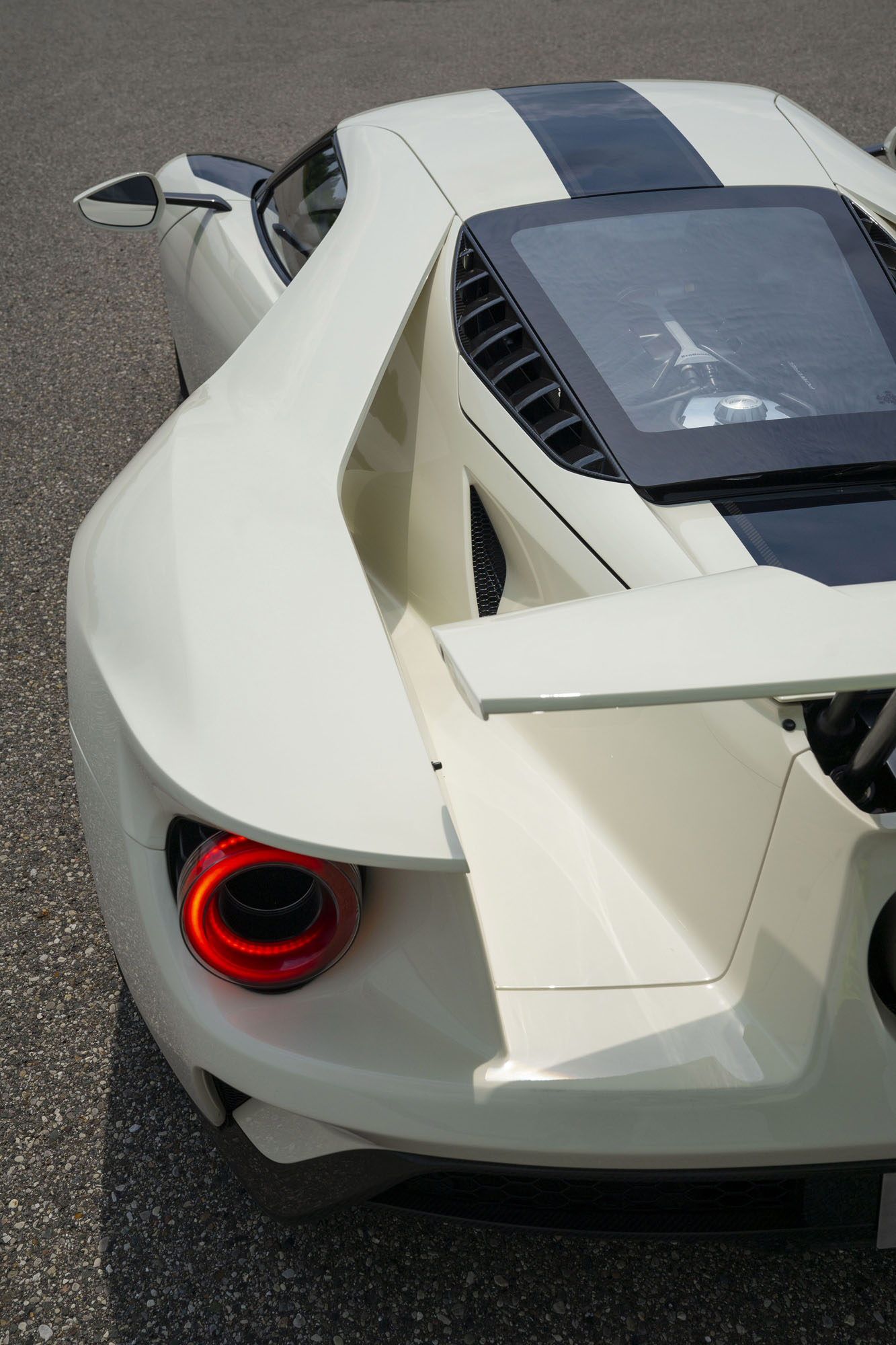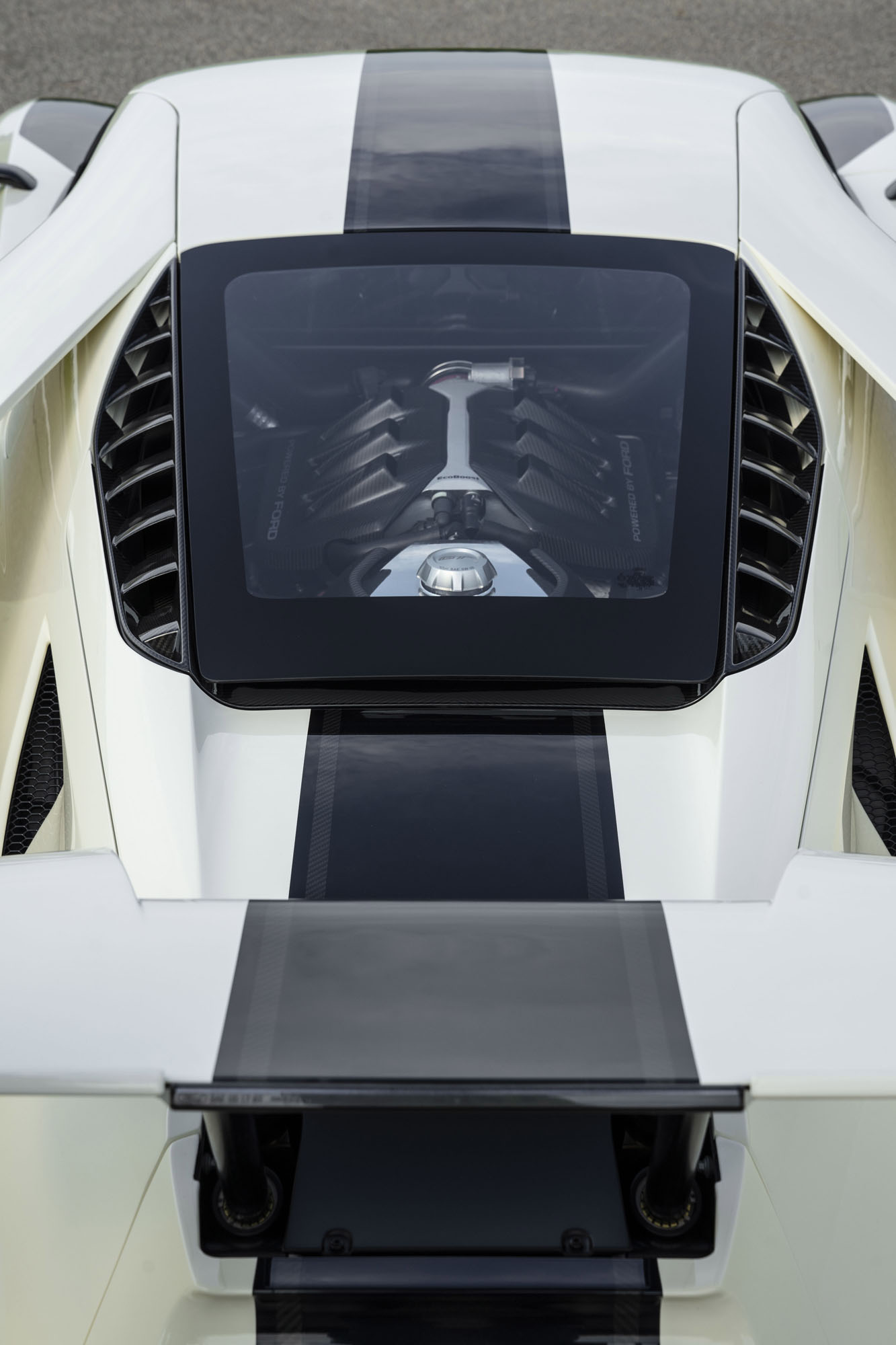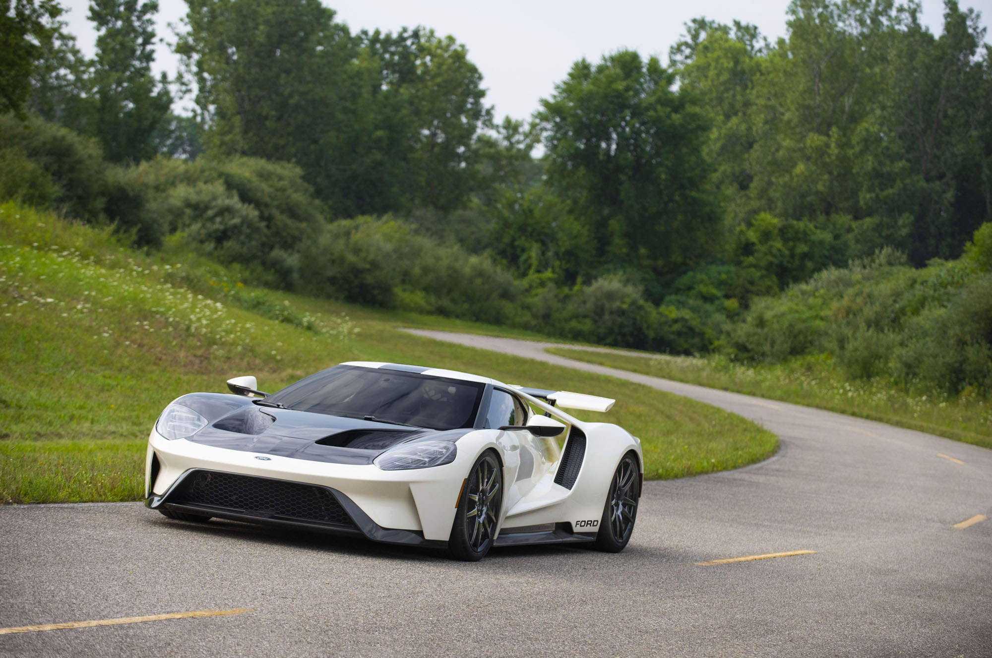 О силовой установке специальной серии компания ничего не сказала, значит, предполагаем обычный для GT набор: наддувный агрегат V6 3.5 EcoBoost (669 л.с., 746 Н•м), совмещённый с семиступенчатым «роботом» (привод задний). Зато над внешностью фордовцы поработали. Начинается всё с белой краски кузова Wimbledon White, а также тёмно-синей, почти чёрной графики Antimatter Blue. Они дополнены углепластиковыми колёсными дисками (20 дюймов) в таком же цвете и элементами в видимом углепластике под глянцевым лаком (крепления зеркал, сплиттер, пороги, жалюзи двигателя и диффузор). Тормозные суппорты Brembo окрашены серебристым лаком с чёрным рисунком.