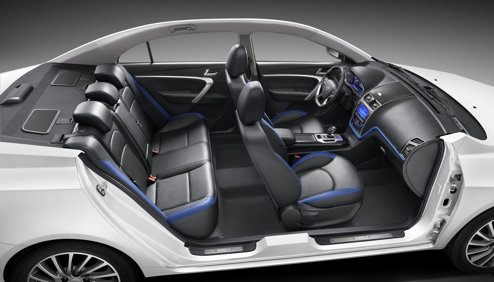 Синие акценты в экстерьере и салоне напоминают о стратегии Blue Geely, к которой стоит вернуться. К 2020 году 65% гибридов компании будут подключаемыми (PHEV), оставшиеся 35% — параллельными (HEV). Двоякодвижимым легковушкам отведена платформа PE, электрокарам — FE. Также будет применяться вольвовская «тележка» CMA, на которой Geely собирается разработать множество новых продуктов. Трудиться над ними будут 2500 инженеров в Ханчжоу, Ковентри и Китайско-европейском научно-техническом центре (CEVT) в Гётеборге. Гибриды CMA оснастят турбомотором 1.5 и семиступенчатым «роботом» DCT, чтобы к концу десятилетия добиться расхода топлива 1,5 л/100 км. Электромобили в конечном счёте будут потреблять 8 кВт•ч на сотню и пробегать по 500 км. Китайцы подсчитали, что инициатива Blue Geely сохранит 4,2 млн тонн нефти и сократит выбросы CO2 на 3 млн тонн (в сравнении с выпуском обычных автомобилей за тот же период). Фирма Geely заявила, что будет первым автопроизводителем Китая, который выполнит правительственную директиву.