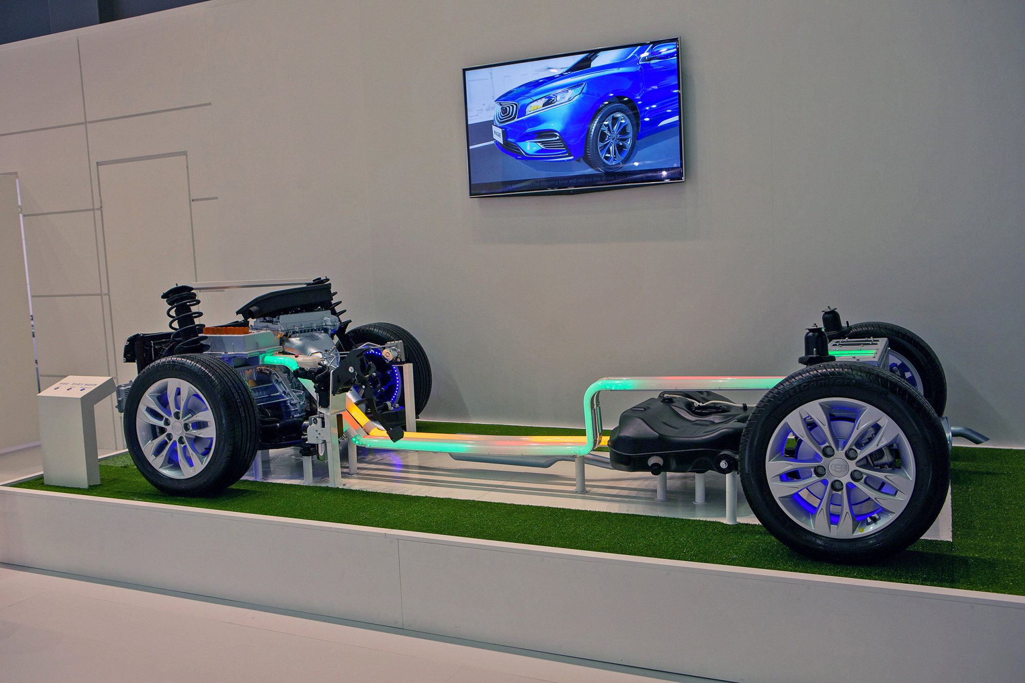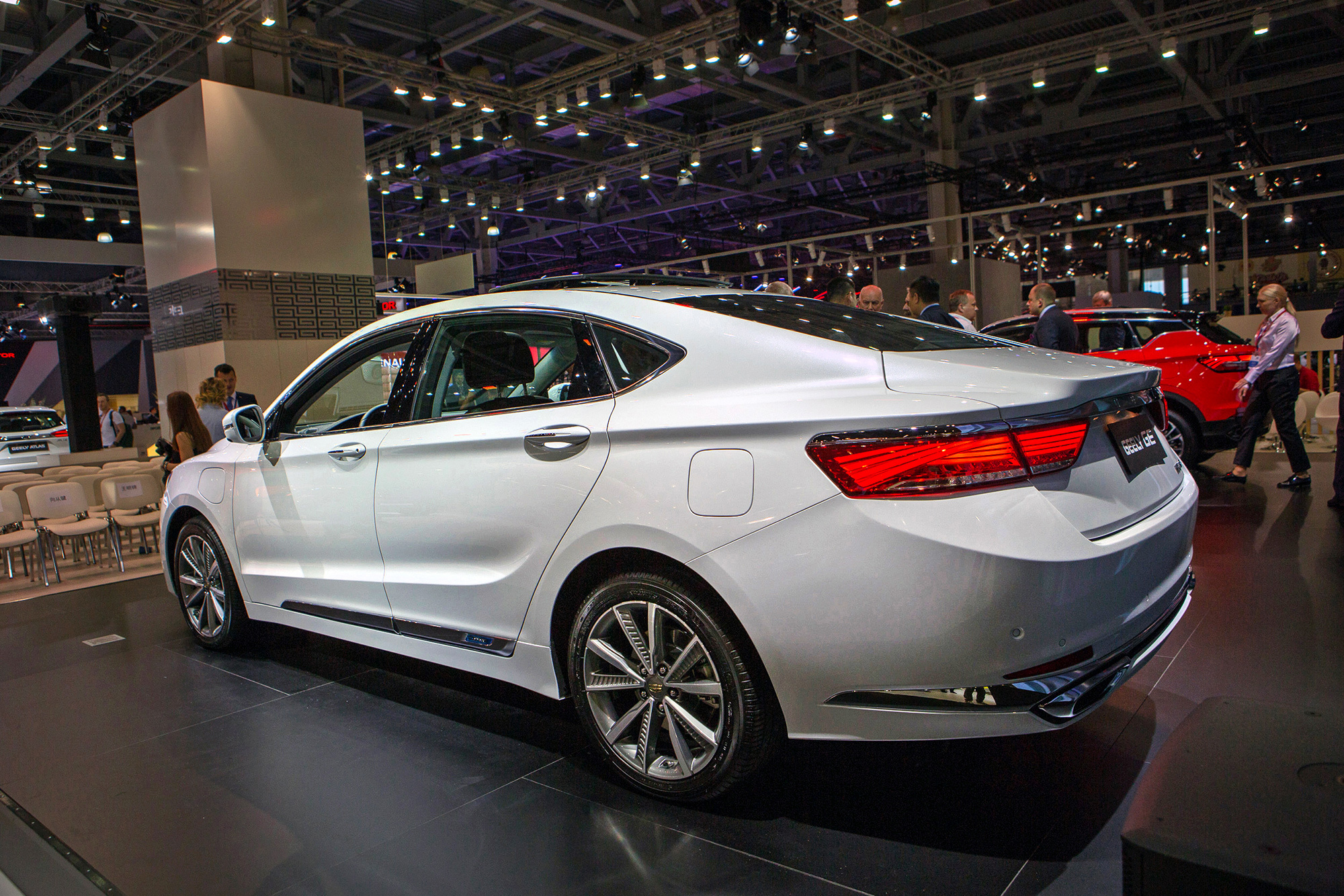 Гибридный седан Geely GE в Москву прибыл в заряжаемой от розетки версии PHEV. Общая отдача силовой установки тут достигает 261 л.с. и 425 Н•м, хотя в её основе лежит всего лишь полуторалитровый турбомотор. Такому седану нужно 7,4 с, чтобы набрать сотню с места, а без запуска ДВС он способен пробежать до 60 км номинально (представители фирмы говорят «до ста») . Интересное сочетание свойств, да и «беспокойства запаса хода на зарядке» двоякодвижимый аппарат, в отличие от чистых электрокаров, вызывать не должен. Драйв заверили, что в третьем квартале следующего года GE поступит в продажу в России.