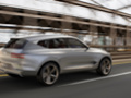 Это будет первый кроссовер премиум-сегмента в истории корейского автопрома. А ещё перед нами дебютная работа Люка Донкервольке на посту шеф-дизайнера бренда. Атлетичный силуэт хорош без оговорок, а «двухэтажные» фары и фонари похожи на элементы инопланетного происхождения. Как признался в интервью американским журналистам глава Дженезиса Манфред Фитцджеральд, такая оптика вместе с подобной трапециевидной решёткой радиатора станут визитной карточкой серийных автомобилей Genesis. Хотя 23-дюймовые колёса с перфорированными спицами, полупрозрачные боковые стойки и мизерные зеркала заднего вида до конвейера не доживут.