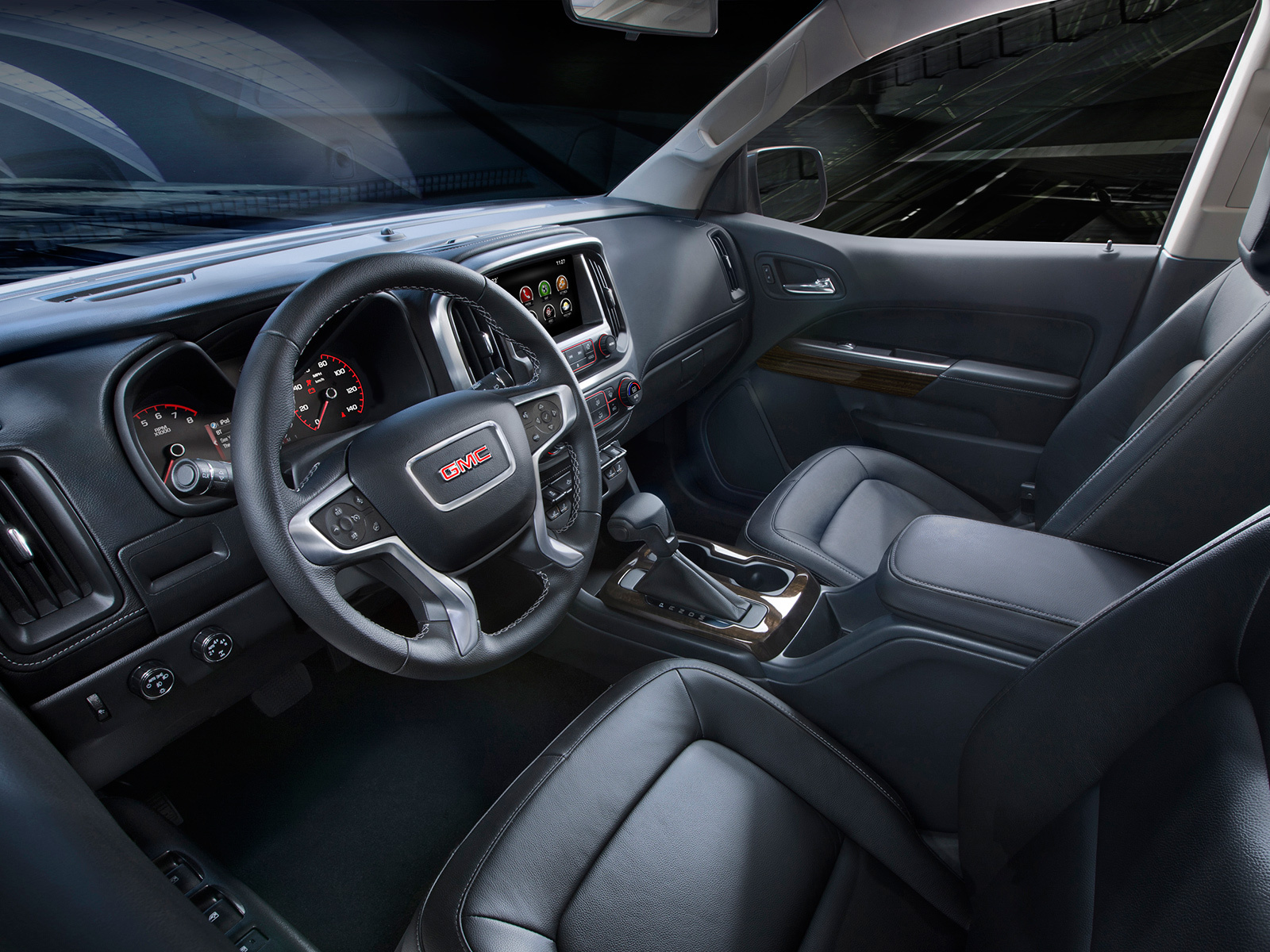 Покупателям предложен задний или полный привод. Полноприводные версии, к слову, оснащены раздаткой с электронным управлением (система AutoTrac) и возможностью выбора режимов 2WD, Auto (с подключением передней оси при проскальзывании задней), 4WD HI или 4WD Lo. Ещё есть полуторная или двойная кабина, разные по длине варианты грузовой платформы, две колёсные базы — в целом всё как у нового Colorado. И моторы предложены те же: четырёхцилиндровый 2.5 (193 л.с. и 253 Н•м) и V6 3.6 V6 VVT DI (302 л.с., 366 Н•м). В 2016 году в гамму Каньона добавится турбодизель Duramax 2.8 (180 л.с., 470 Н•м, такой же предложат на Colorado в 2015-м).