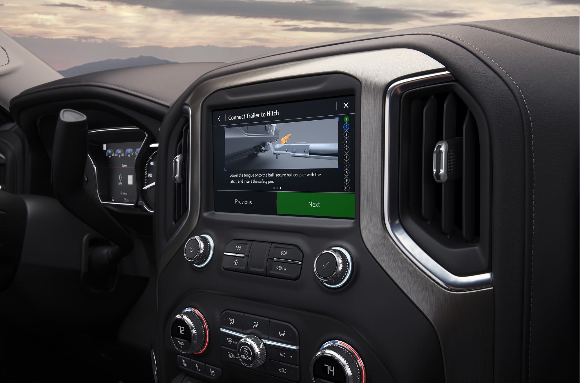 Помимо того, на Сиерре появилась новая система помощи для буксировки прицепа ProGrade Trailering System (стандарт в комплектациях Denali и SLT). Она включает в себя чек-лист действий перед поездкой, «напоминалку» об обслуживании прицепа, тест световых приборов, систему диагностики электрических цепей, контроль давления и температуры в шинах прицепа. Многие эти функции можно задействовать и дистанционно, через новое приложение Trailering App для Android и iOS.