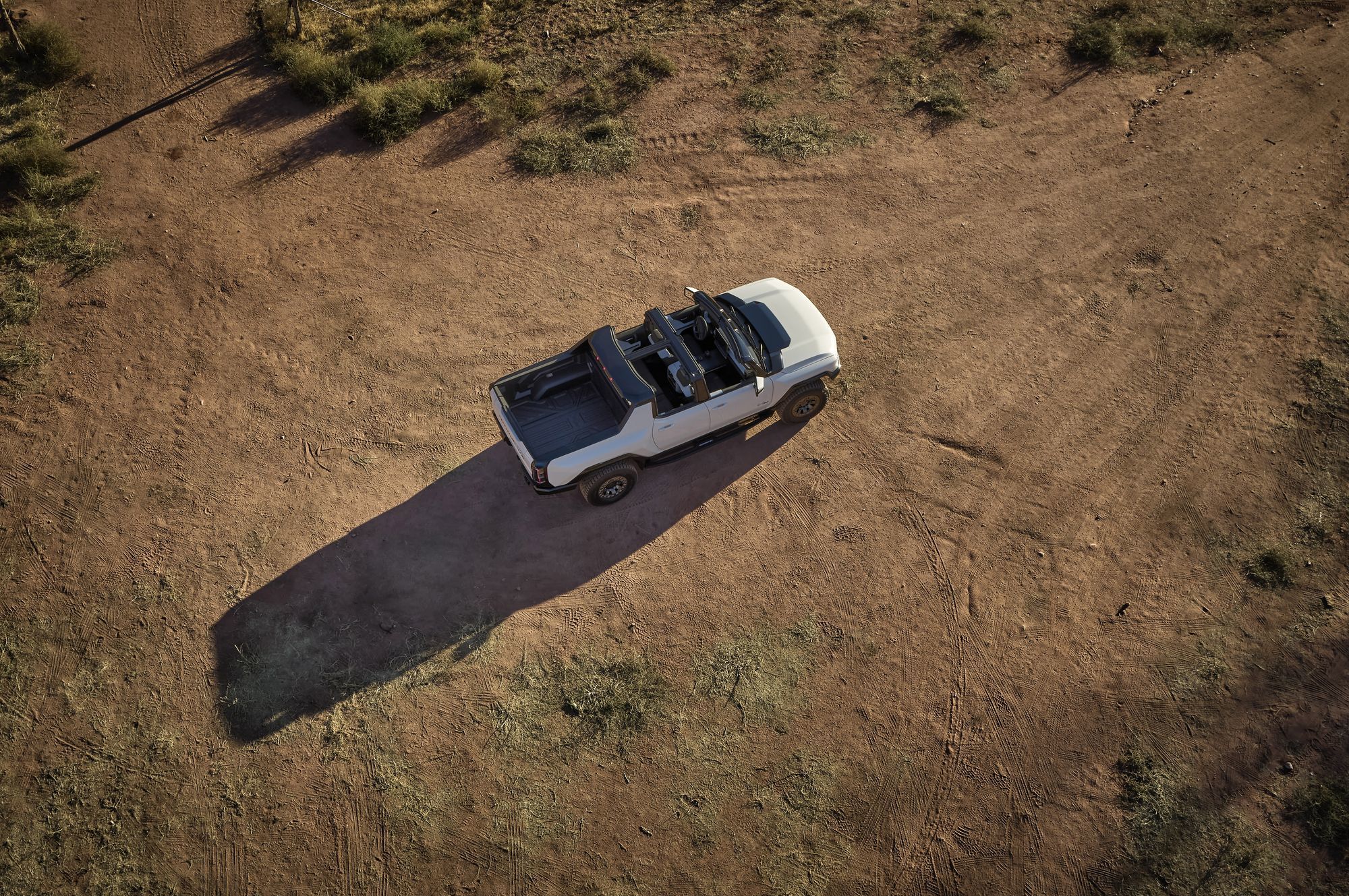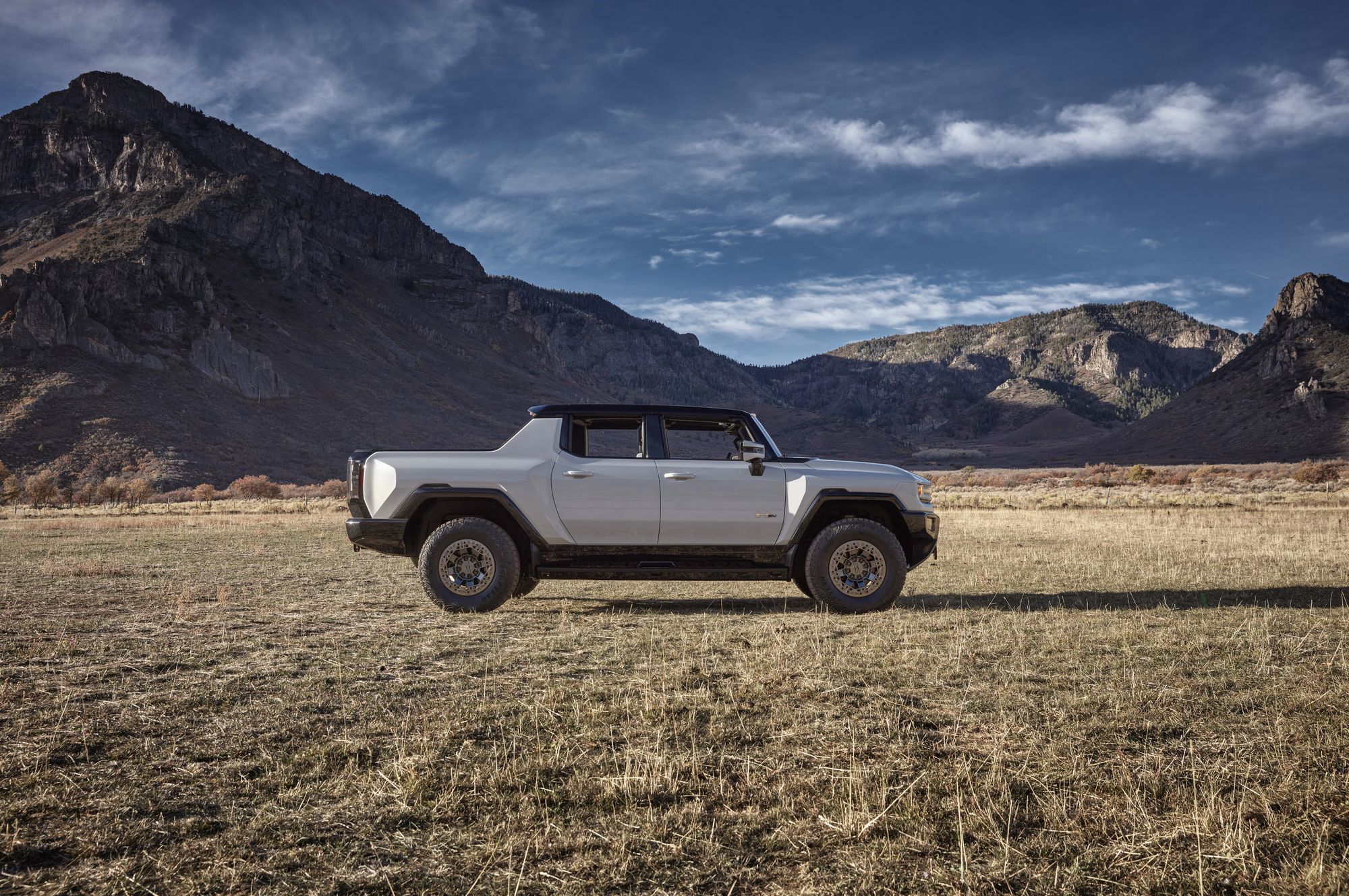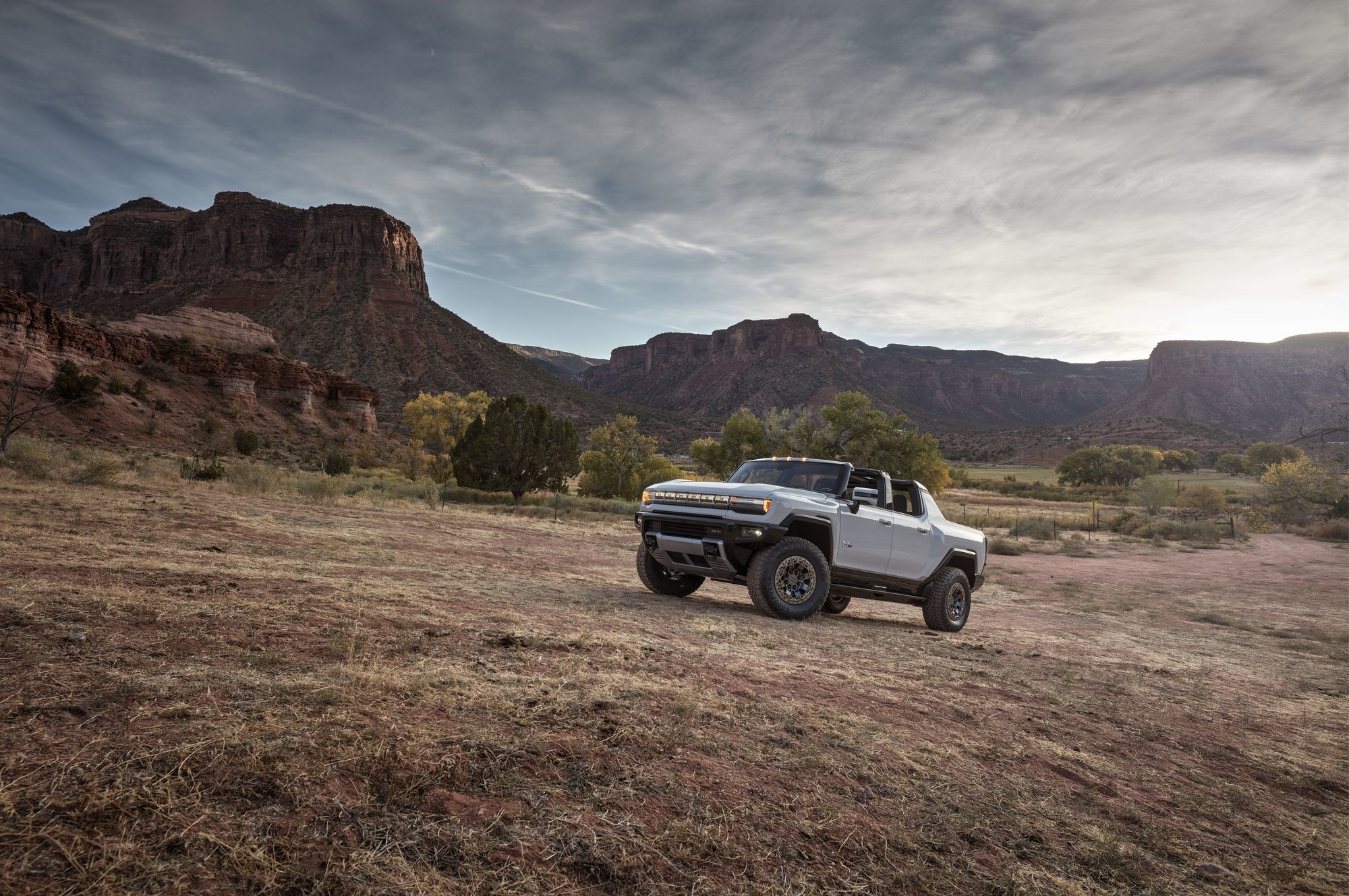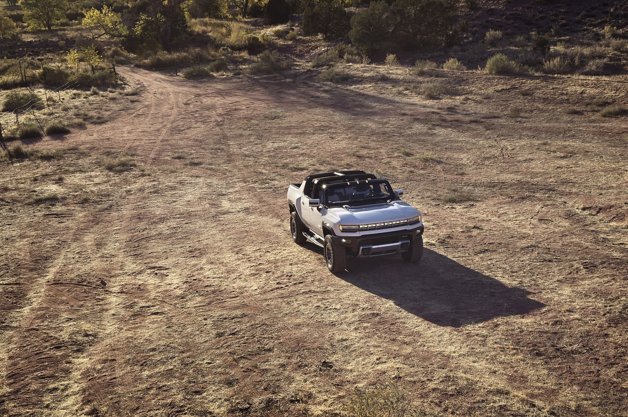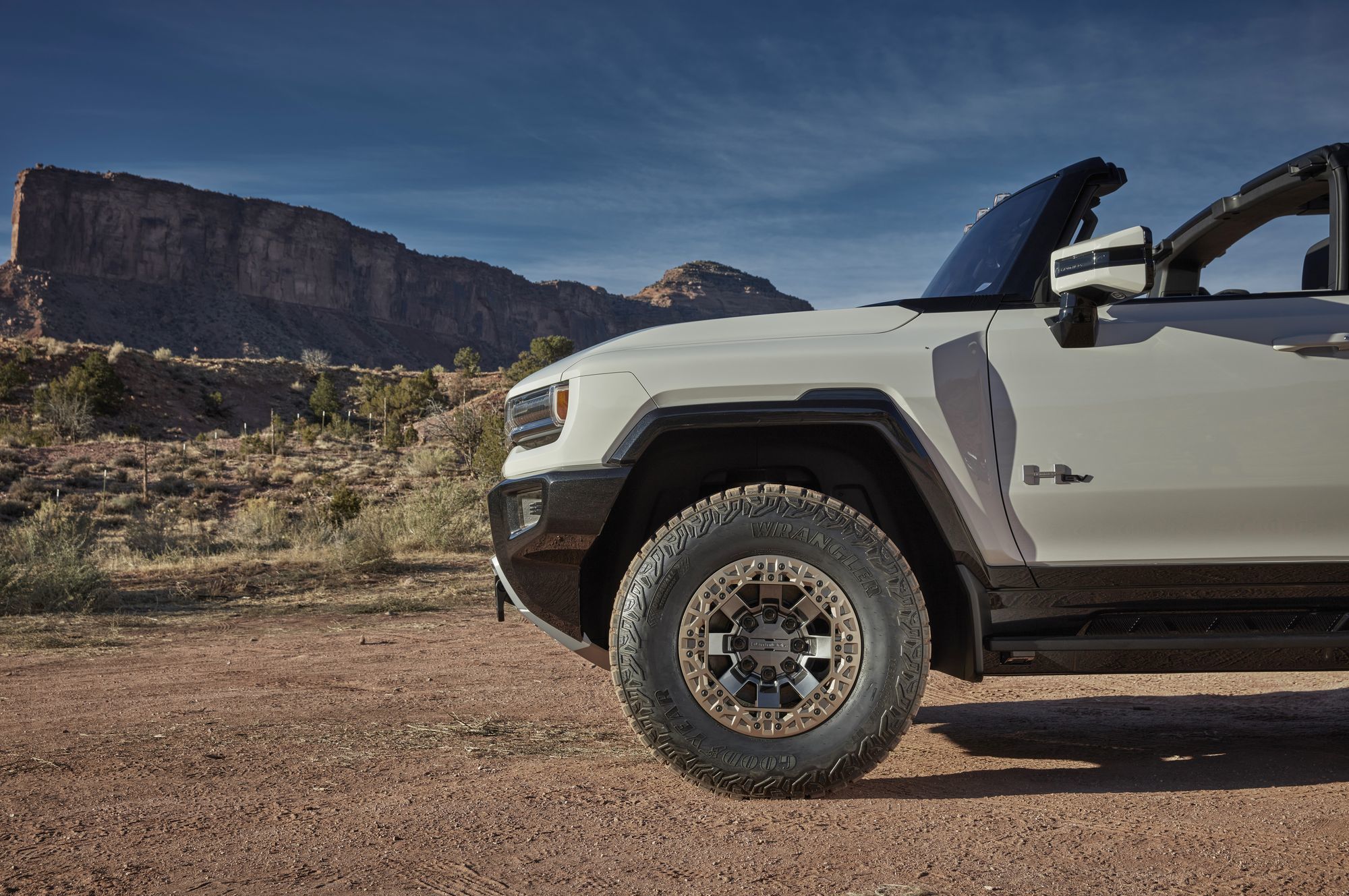 В отличие от большинства современных полноразмерных пикапов, GMC Hummer EV лишён рамной конструкции, а вся структура завязана на блок литий-ионных батарей, к которому крепятся подрамники. Подвеска у модели спереди и сзади независимая, а её ходы достигают 330 мм. Благодаря пневмоподвеске, дорожный просвет и показатели геометрической проходимости меняются в широком диапазоне. В базовом положении клиренс составляет 257 мм, а углы въезда и съезда и рампы — 41,5 и 31,6 градуса соответственно. В режиме Terrain Mode те же показатели уже 302 мм, 44,3 и 33,7 градуса. При этом глубина преодолеваемого брода варьируется от 660 до 711 мм.