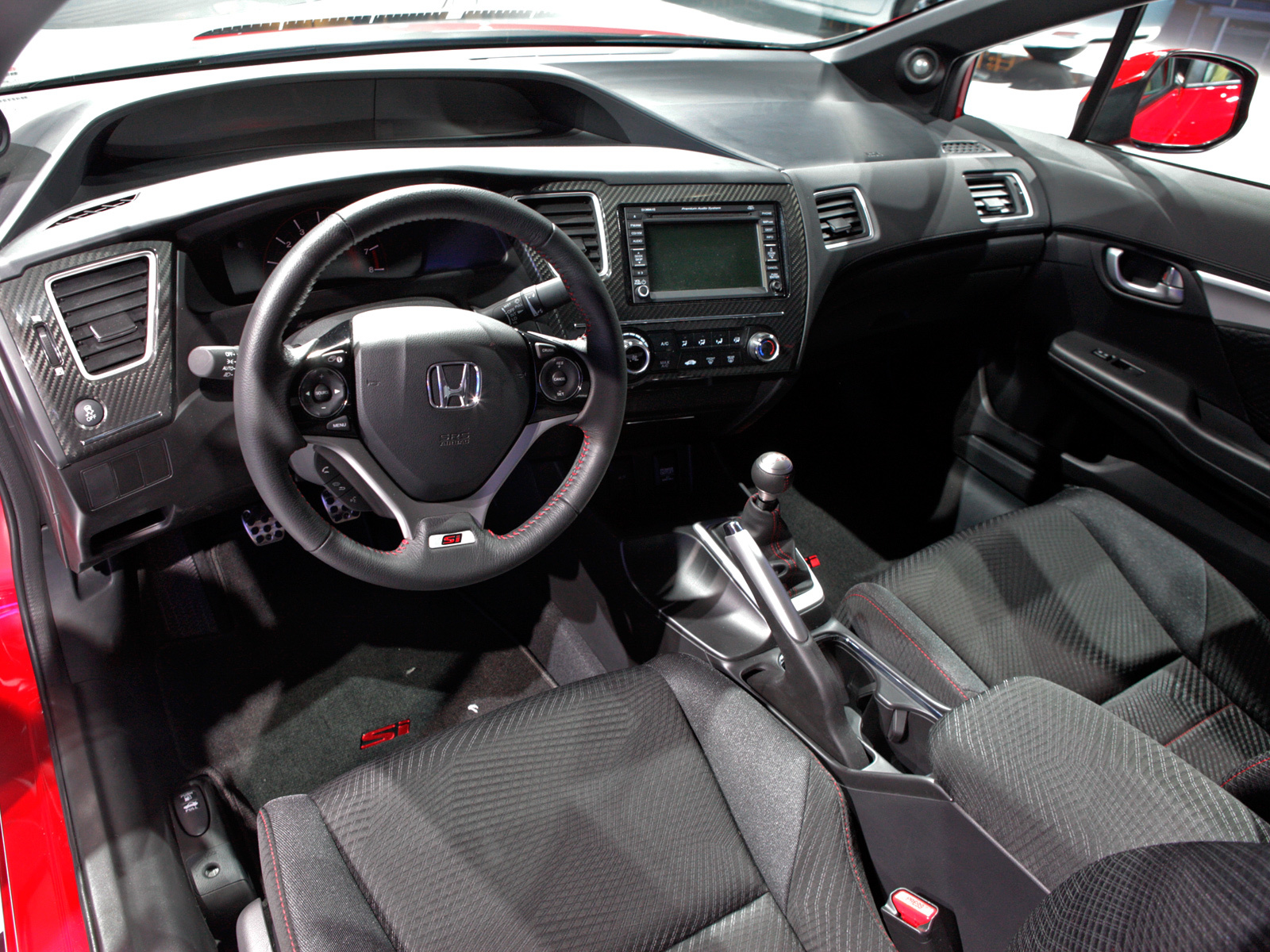 Теперь можно во всех деталях разглядеть не только внешность новинки, но и её салон. Он потемнел и стал выглядеть солиднее, хотя радикальных изменений в форме его частей сделано не было. Но появилось больше мягких материалов в отделке. Кроме того, компания показала спортивное исполнение четырёхдверки — модификацию Civic Si. Версия Si получила эффектный диффузор со вставкой в виде сот, а ещё антикрыло. Заметим, прошлому седану Si (до рестайлинга) был положен всего лишь спойлер на крышке багажника.