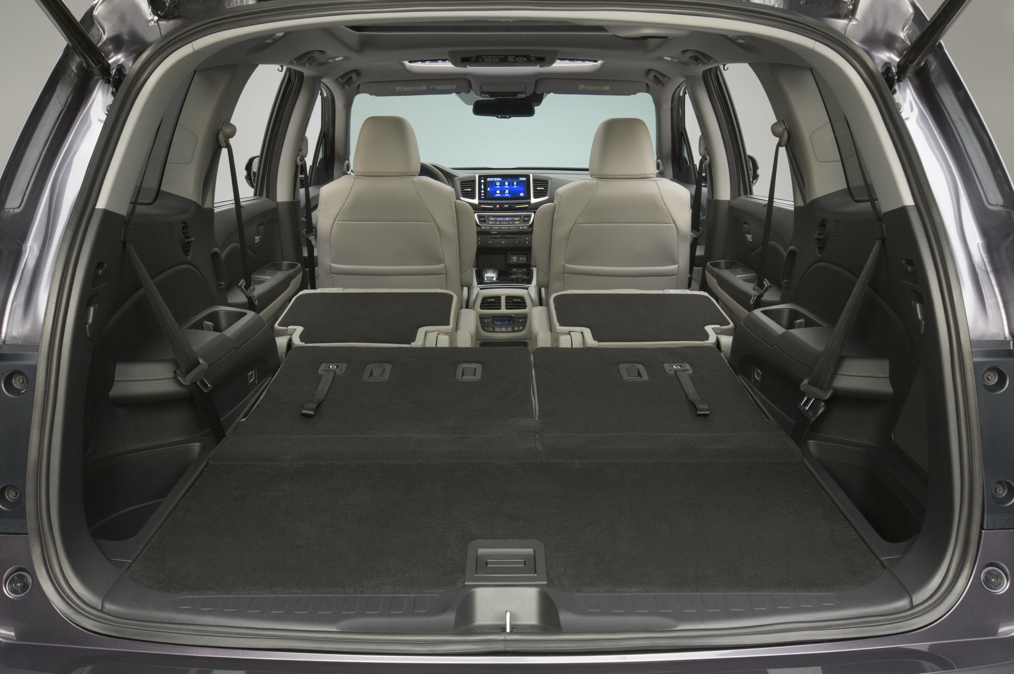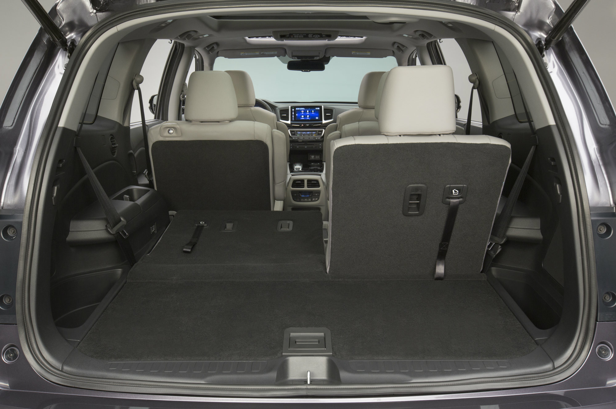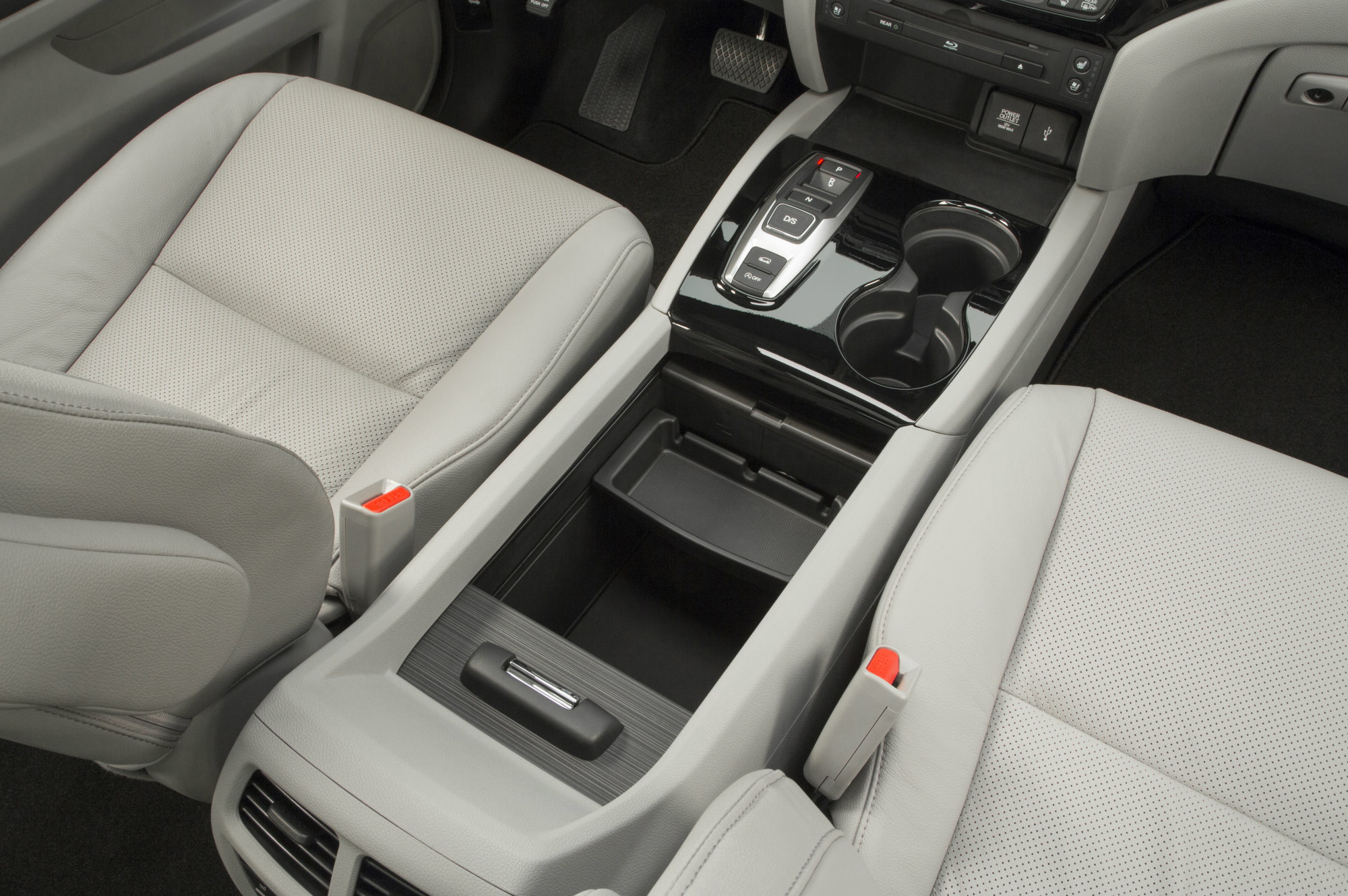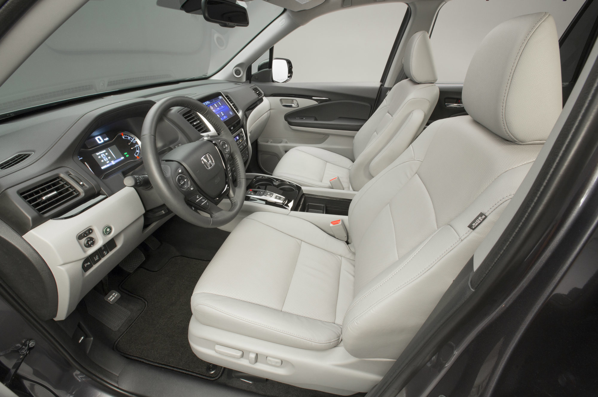 Серьёзная реформа произошла с организацией посадки. Если клиенту не нужны восемь мест, сиденья второго ряда можно заказать в виде двух раздельных кресел. Для проникновения на ставшую просторнее галёрку сидушки сдвигаются одним нажатием кнопки. Кресла двух рядов подогреваются (руль тоже), а передние ещё и вентилируются. Появились всякие отсеки для мелочовки, розетки, гнёзда для наушников и так далее. Японцы уверены, что у Пилота теперь есть всё, что нужно современной семье.