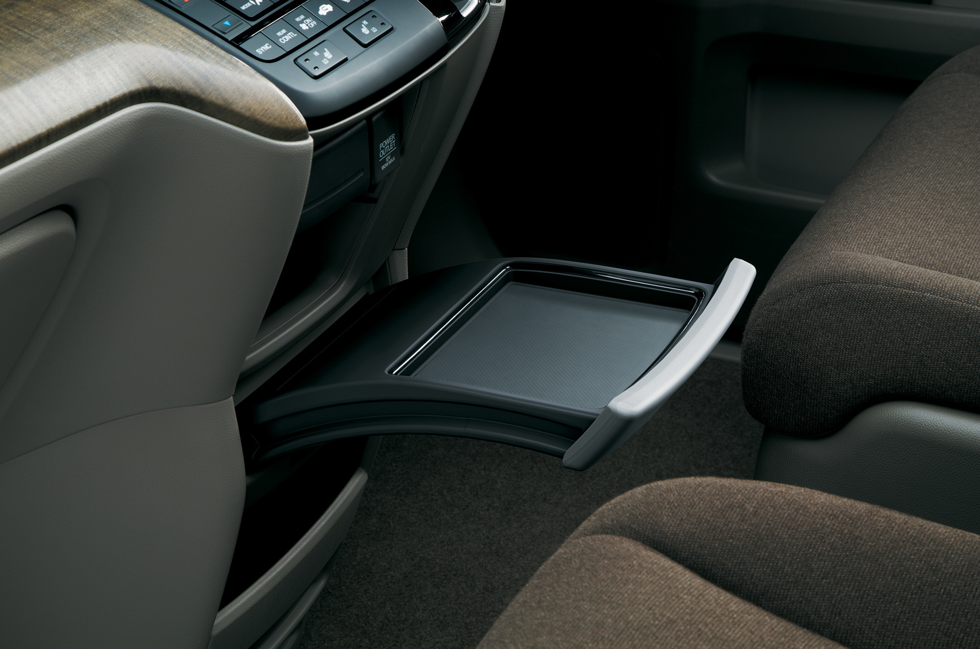 Пятая дверь минивэна может целиком подниматься вверх, а её левая секция открывается ещё и вбок — это удобно для погрузки вещей в ограниченном пространстве. А если учесть, что кресла заднего ряда буквально в одно движение (система Magic Seat) убираются в подполье, образуя ровный пол (третий ряд разделён в пропорции 60:40), и так же быстро поднимаются вверх, то получается, что пара пассажиров может попасть на третий ряд именно сзади, а не через боковую дверь. Кресла легко трансформировать как снаружи, так и изнутри.
